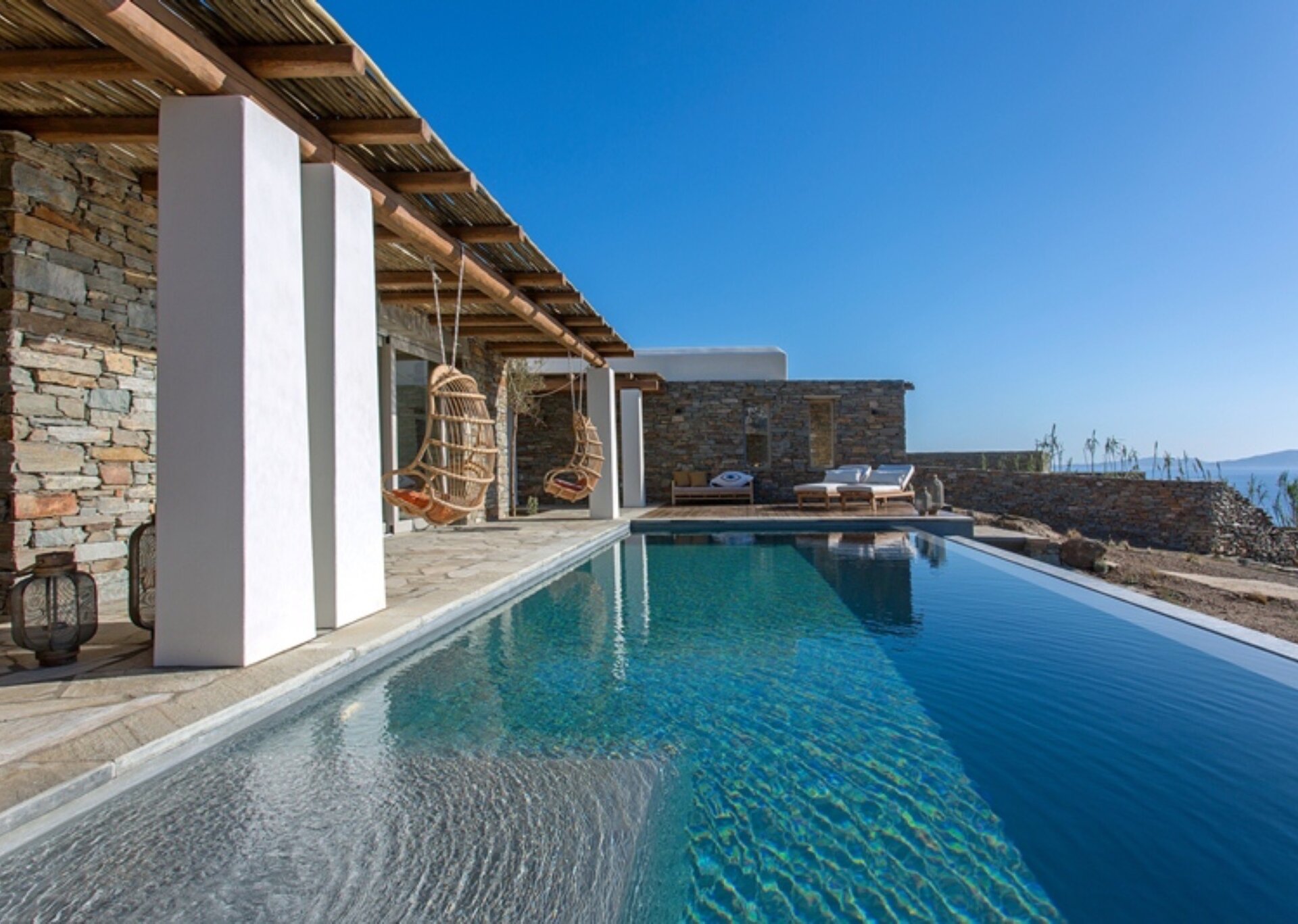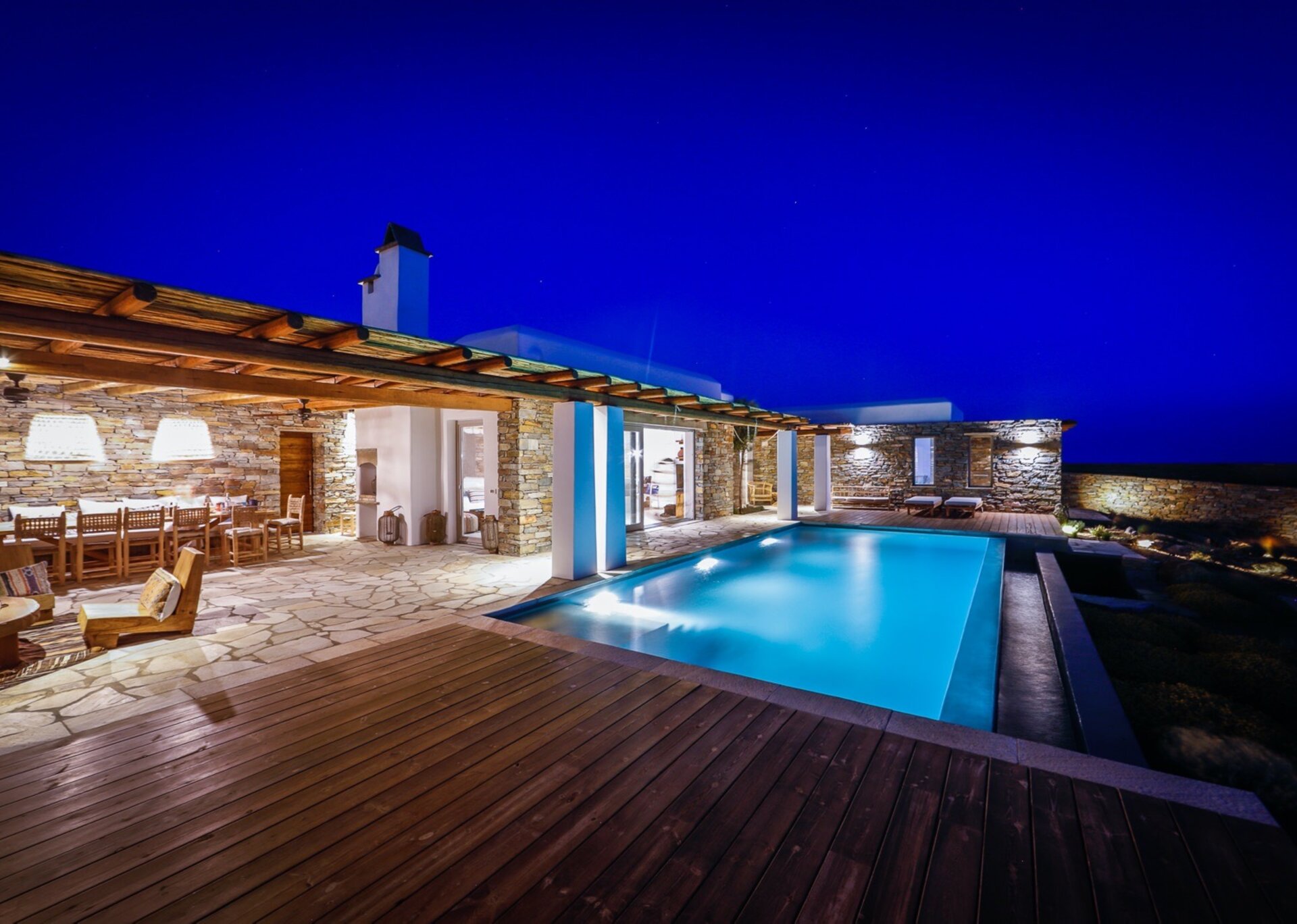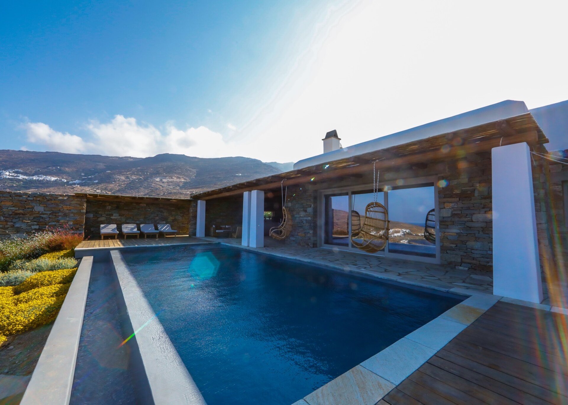 A mesmerising estate ideally situated in Kalyvia area in Tinos, villa Ilianna is a beautiful house that offers a blissful ambience of serenity and privacy. Located in a privilleged location in front of a beach, which is only a few meters away, Ilianna has a dashing outdoor space with natural beauty, that includes a private swimming pool and an outer dining area. The villa offers exciting scenic sea and mountain view angled from the hilltop where it is nestled.