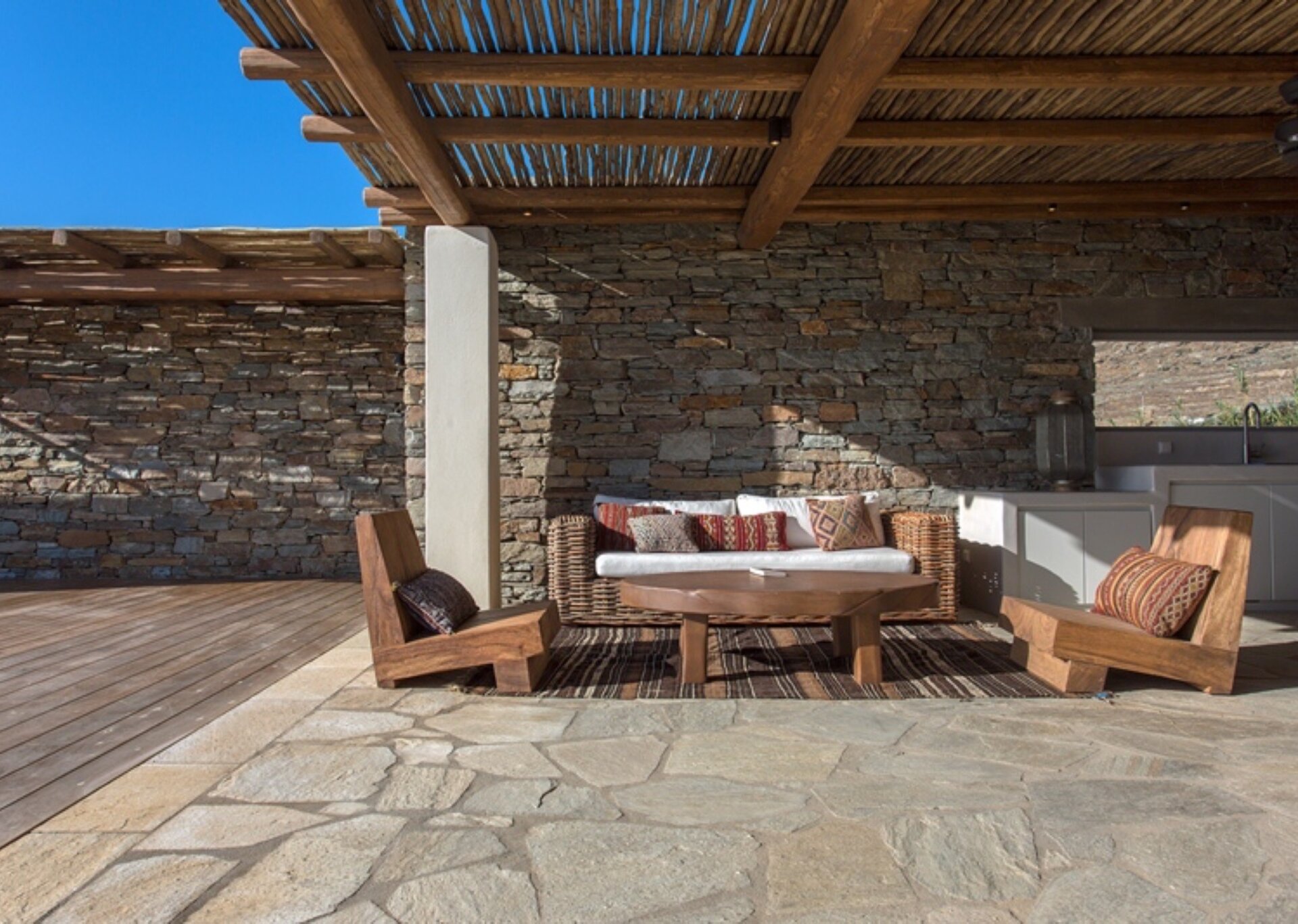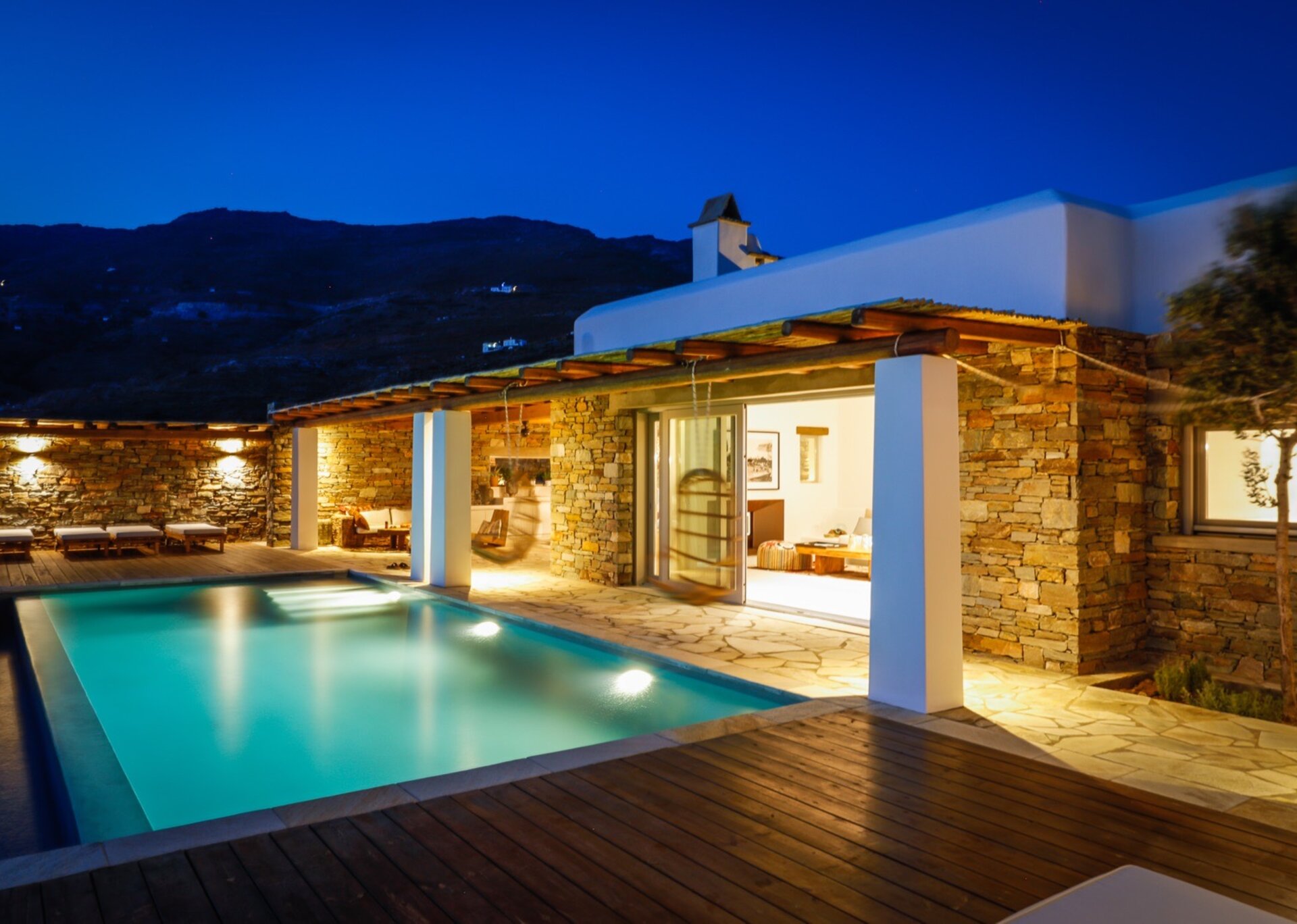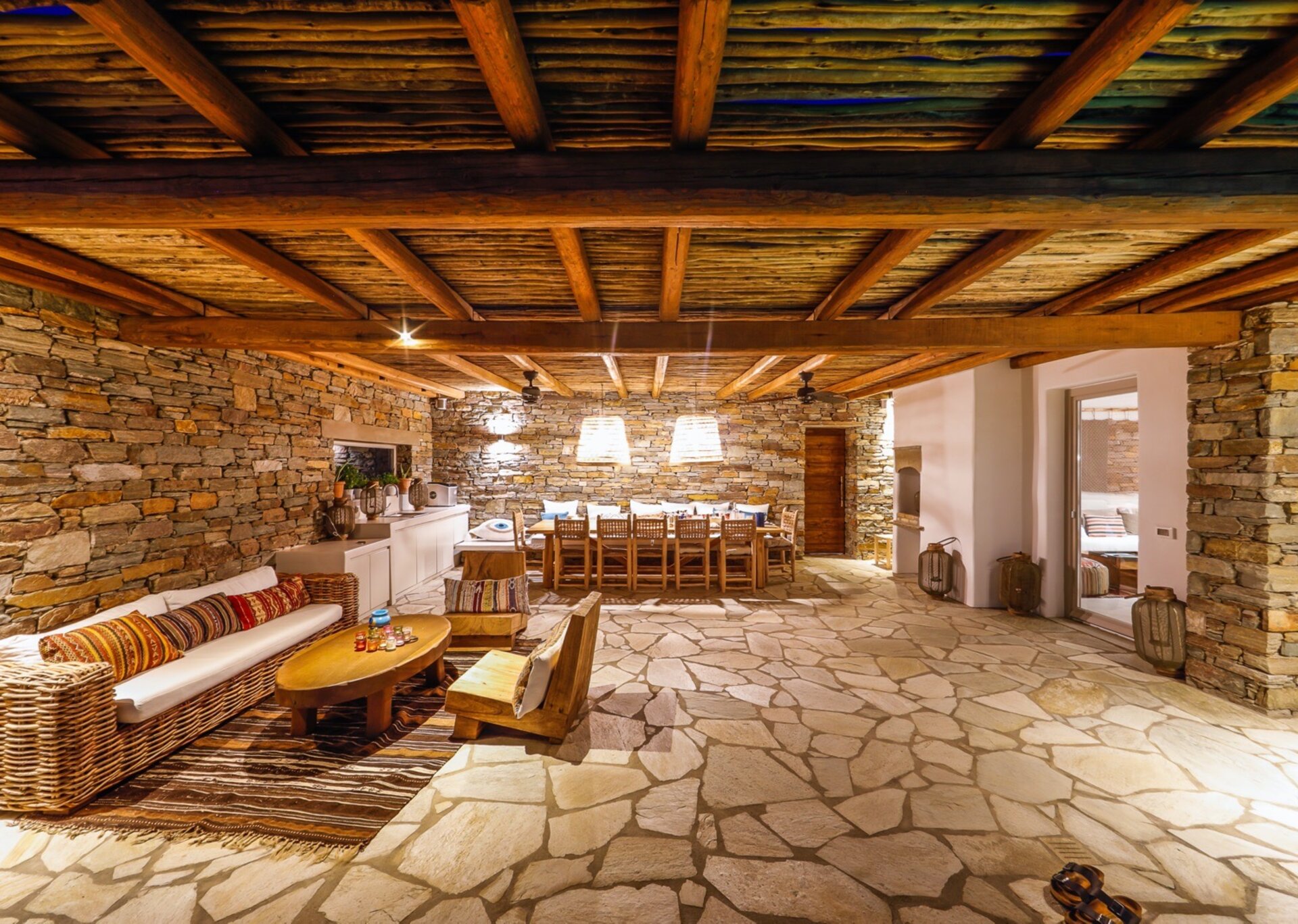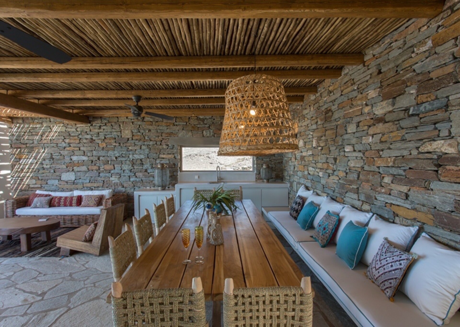 A mesmerising estate ideally situated in Kalyvia area in Tinos, villa Ilianna is a beautiful house that offers a blissful ambience of serenity and privacy. Located in a privilleged location in front of a beach, which is only a few meters away, Ilianna has a dashing outdoor space with natural beauty, that includes a private swimming pool and an outer dining area. The villa offers exciting scenic sea and mountain view angled from the hilltop where it is nestled.