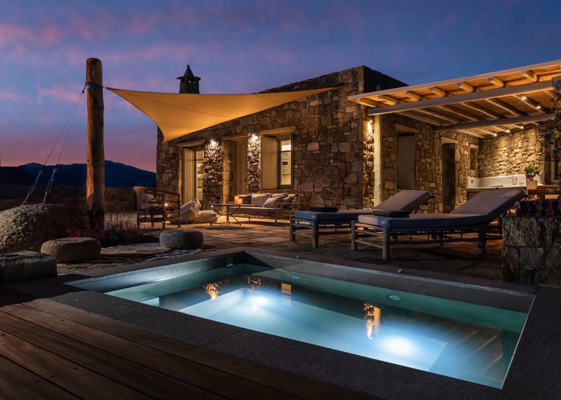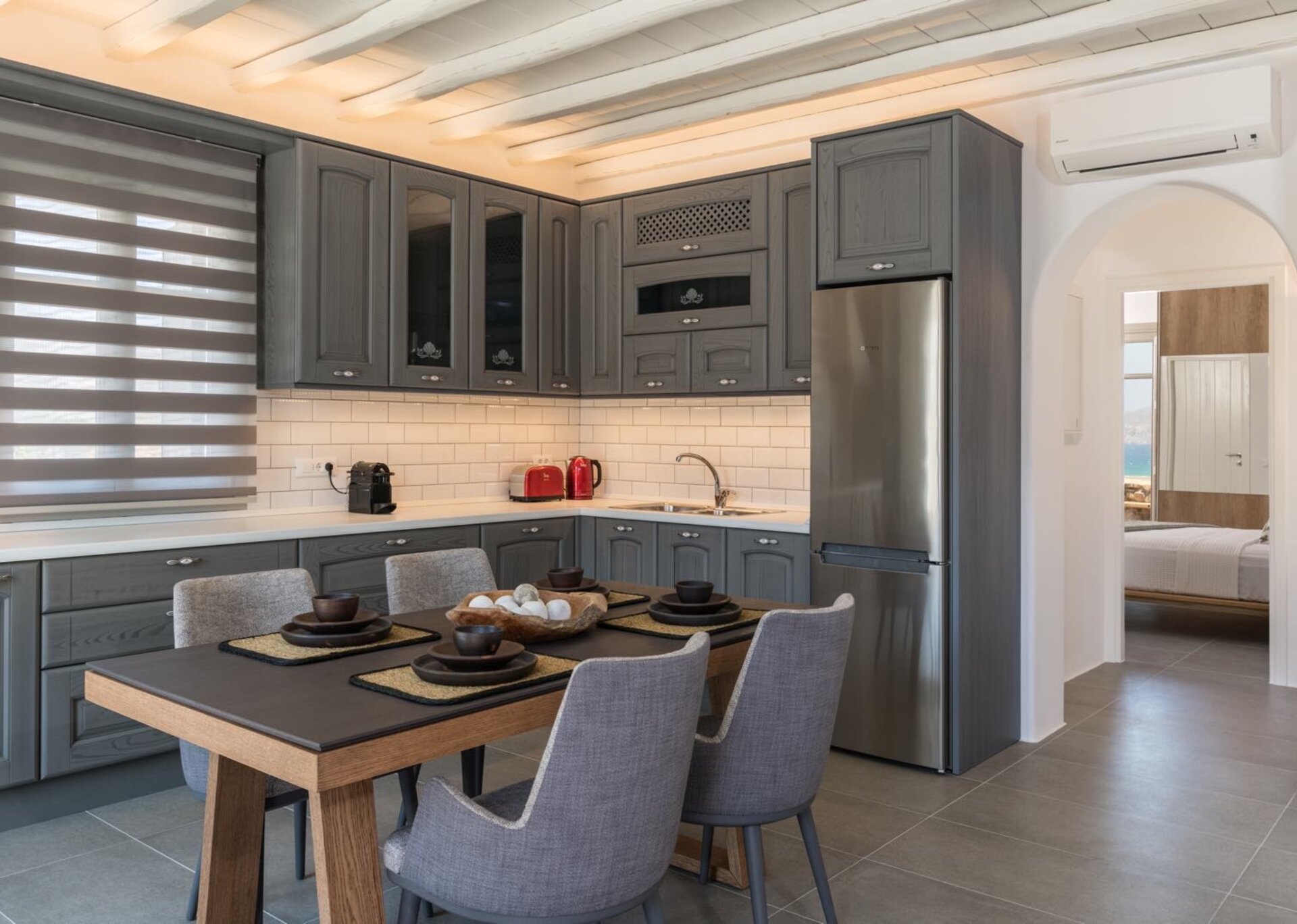 Villa Imelda is a brand new villa , which built in 2019. This seductive house is a luxurious heaven for tranquil repose. The Myconian architecture villa consists of 2 bedrooms, living room , foul equipped kitchen and outdoor space with dining area , lounge and a heated jacuzzi. Villa Kele provides 2 en-suite bedrooms for 4 guests. Outdoor, there is a big jacuzzi 3m*2m, sunbeds , sofas and poufs, a bar with a gas bbq upon request.