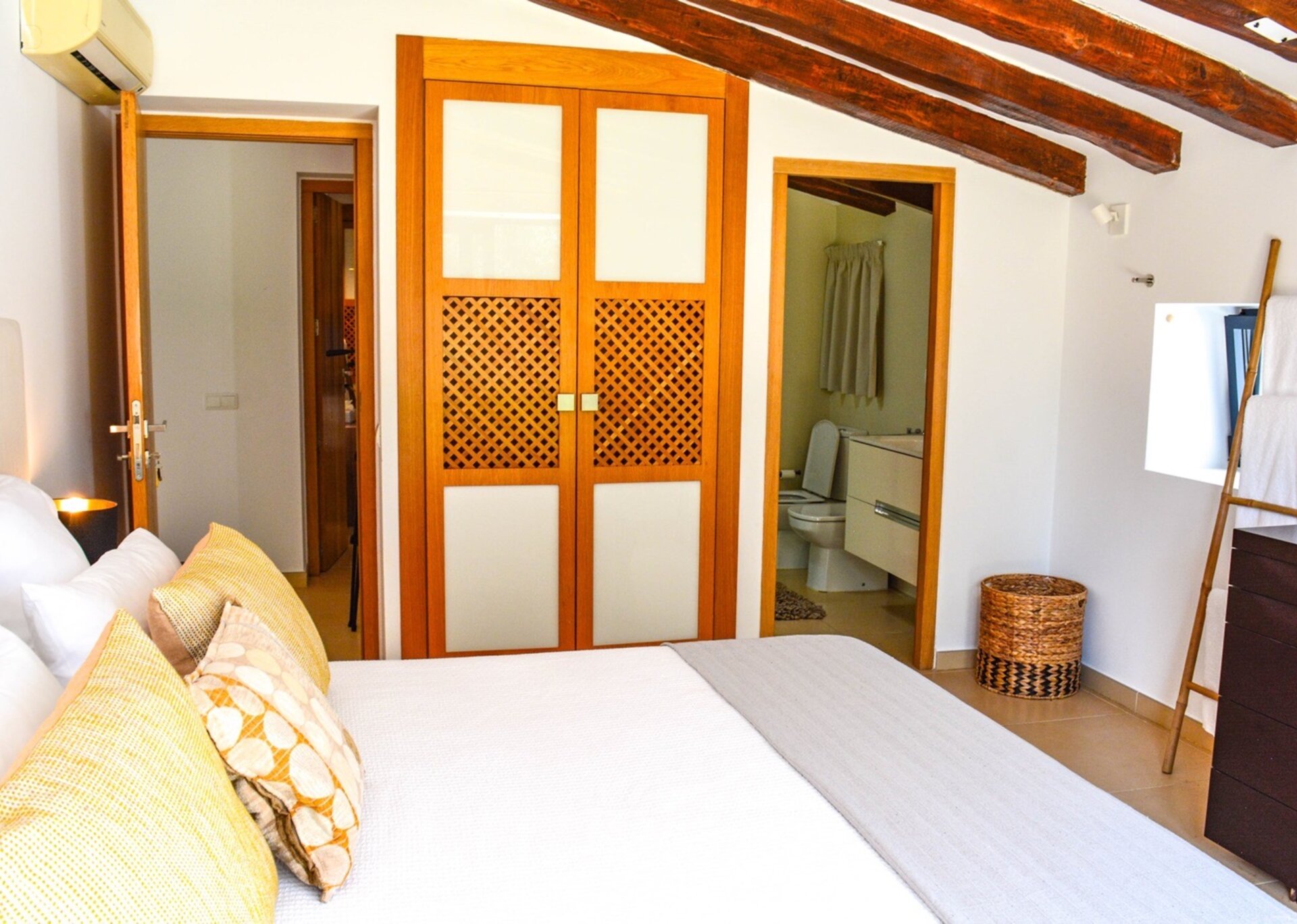 Boasting its original character, this finca beautifully combines history with modern comforts. Discover five spacious double bedrooms with en-suite bathrooms, along with three additional double bedrooms in the adjacent guest house. Each room is thoughtfully equipped with air conditioning, ensuring your utmost comfort.
