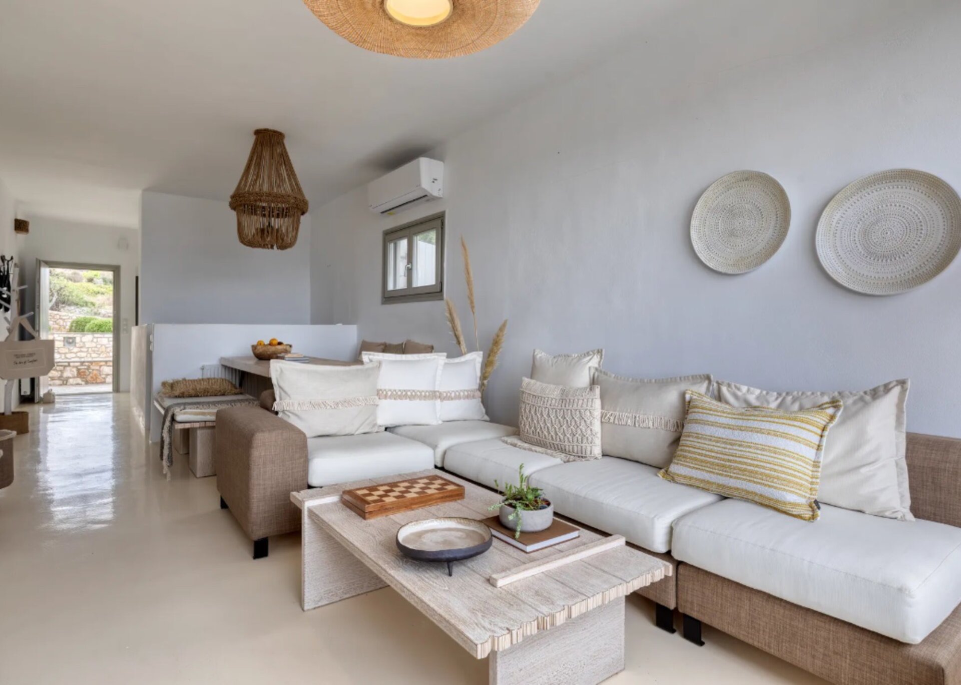 Indulge in the serene ambiance and be entranced by the mesmerizing vistas of the azure Aegean Sea. Embraced by the verdant greenery of the surrounding region, this enchanting villa provides the ultimate sanctuary of relaxation and tranquility.