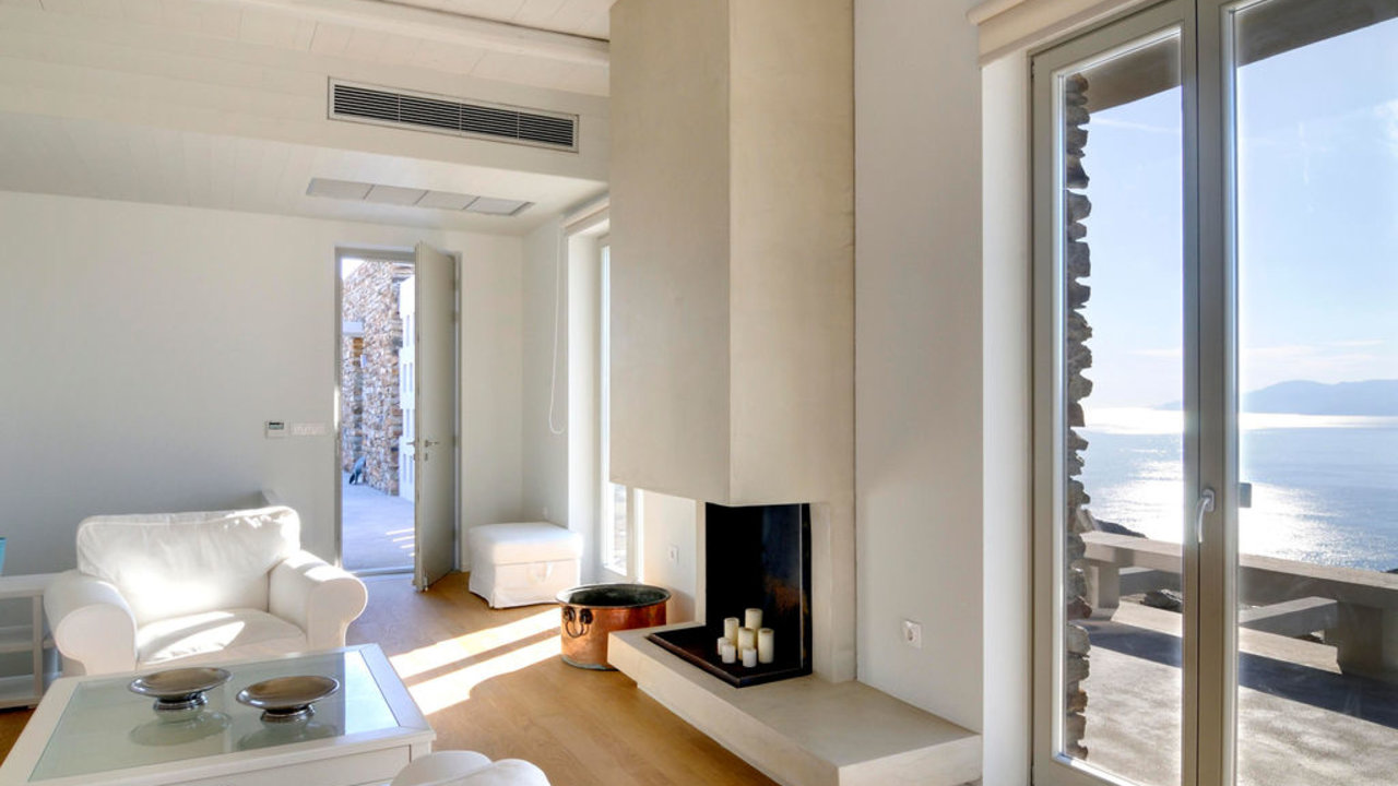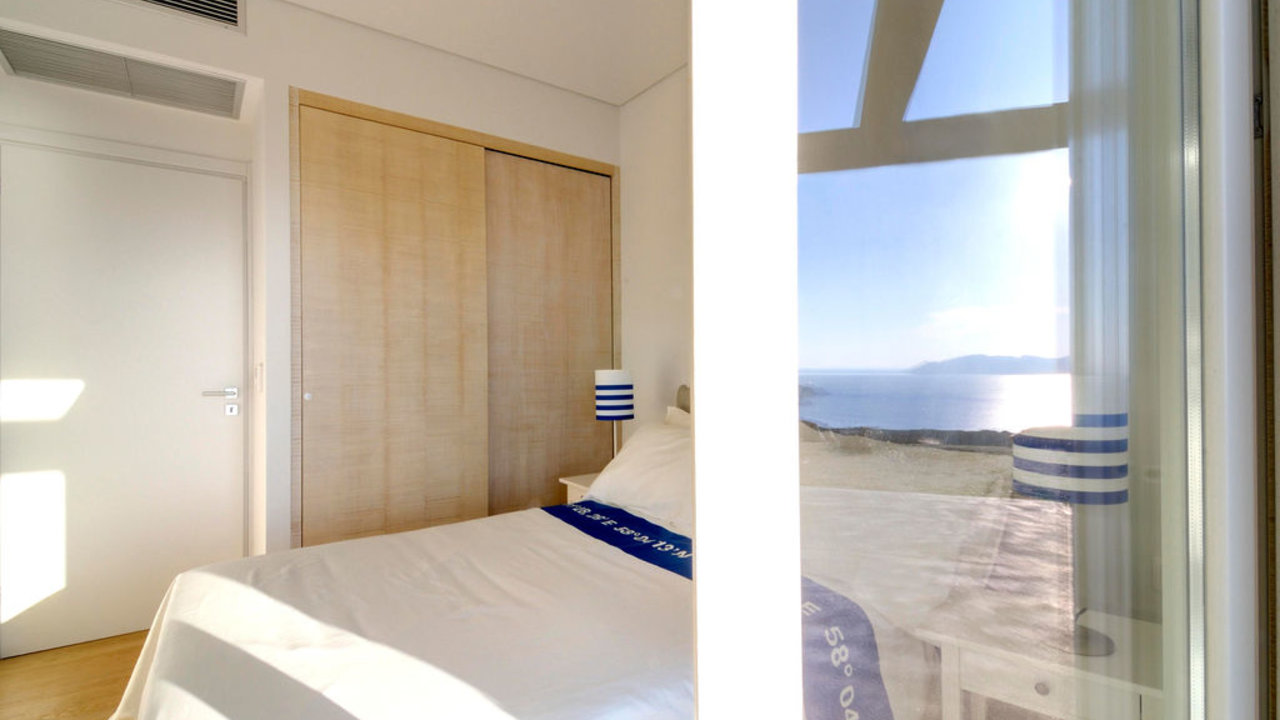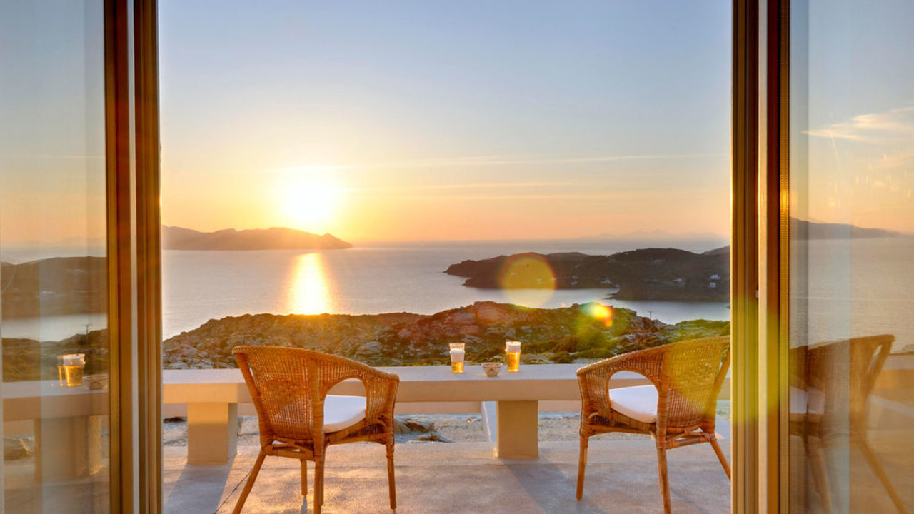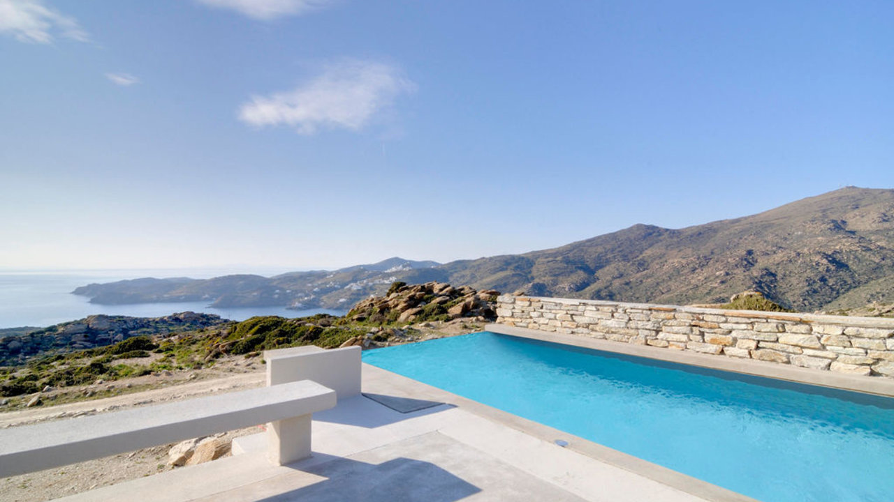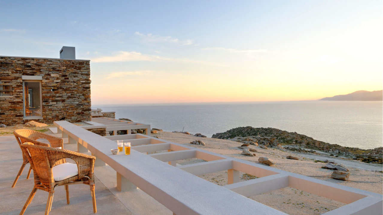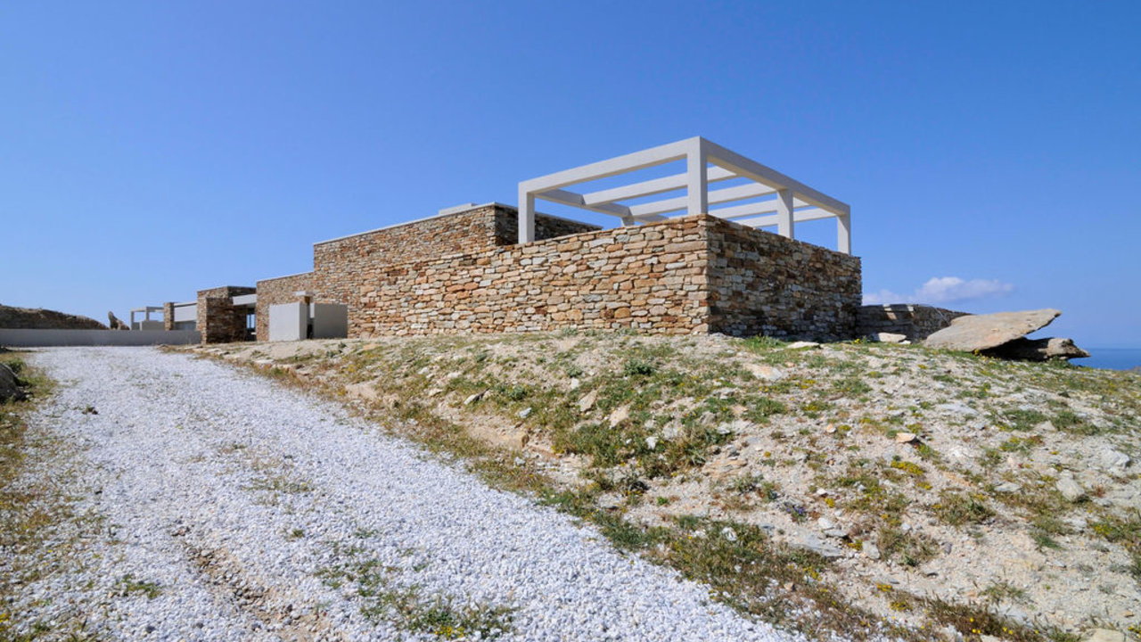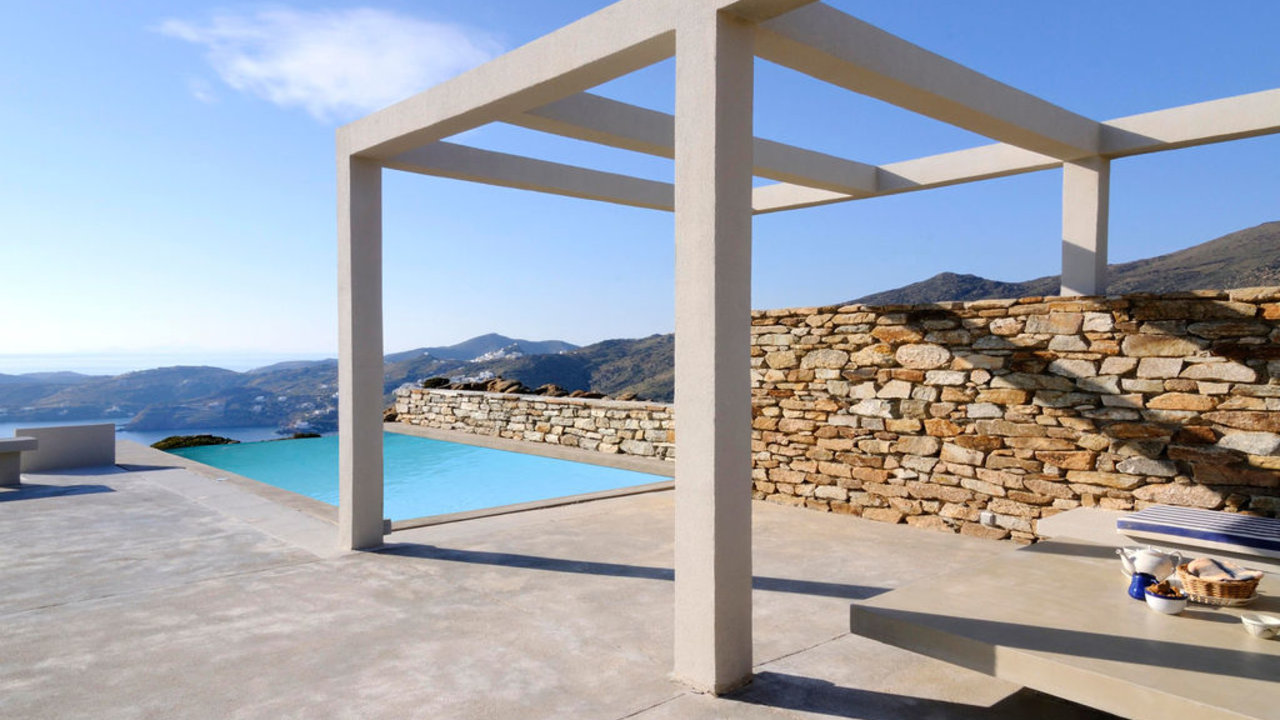 The villas are located in the Cycladic Island of Ios on the hill just on top of the Mylopotas bay, with unobstructed views of the deep blue of the Aegean sea including the beautiful island of Santorini and Sikinos Irene is less than 2km away from Mylopotas bay, 4km from city of Ios and 9km from the main port. Mylopotas Bay is the most popular beach on Ios and one of the most famous beaches in Greece. Mylopotas Beach has been awarded a Blue Flag for its quality service offering and its high environmental standards; it is more than 1km long and very wide, with beautiful golden sands and crystal-clear waters. Mylopotas also offers "beach fun", water sports, restaurants, bars and a lot of other activities. Irene is located in a complex with 4 villas, each villa has been designed with particular attention to detail with the primary objective being to offer high quality of living. The villas are entirely constructed with materials from the island itself including natural wood, stone and glass. Modern in design with open spaces, combined with the simplicity of Greek traditional architecture, the villas create an architectural style that blends entirely with their natural surroundings.