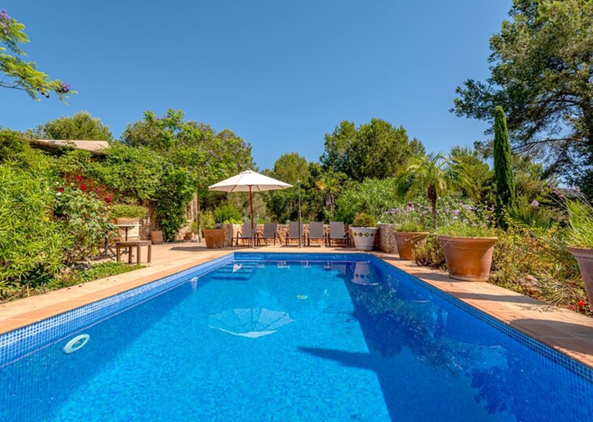 Featuring 4 bedrooms and 4 bathrooms, guests can luxuriate in the comfort of the main finca, which houses 2 bedrooms and 2 bathrooms, or opt for the garden apartment with its additional 2 bedrooms and bathrooms. Ideal for families with children, the expansive gardens provide ample space to play and revel in the great outdoors.