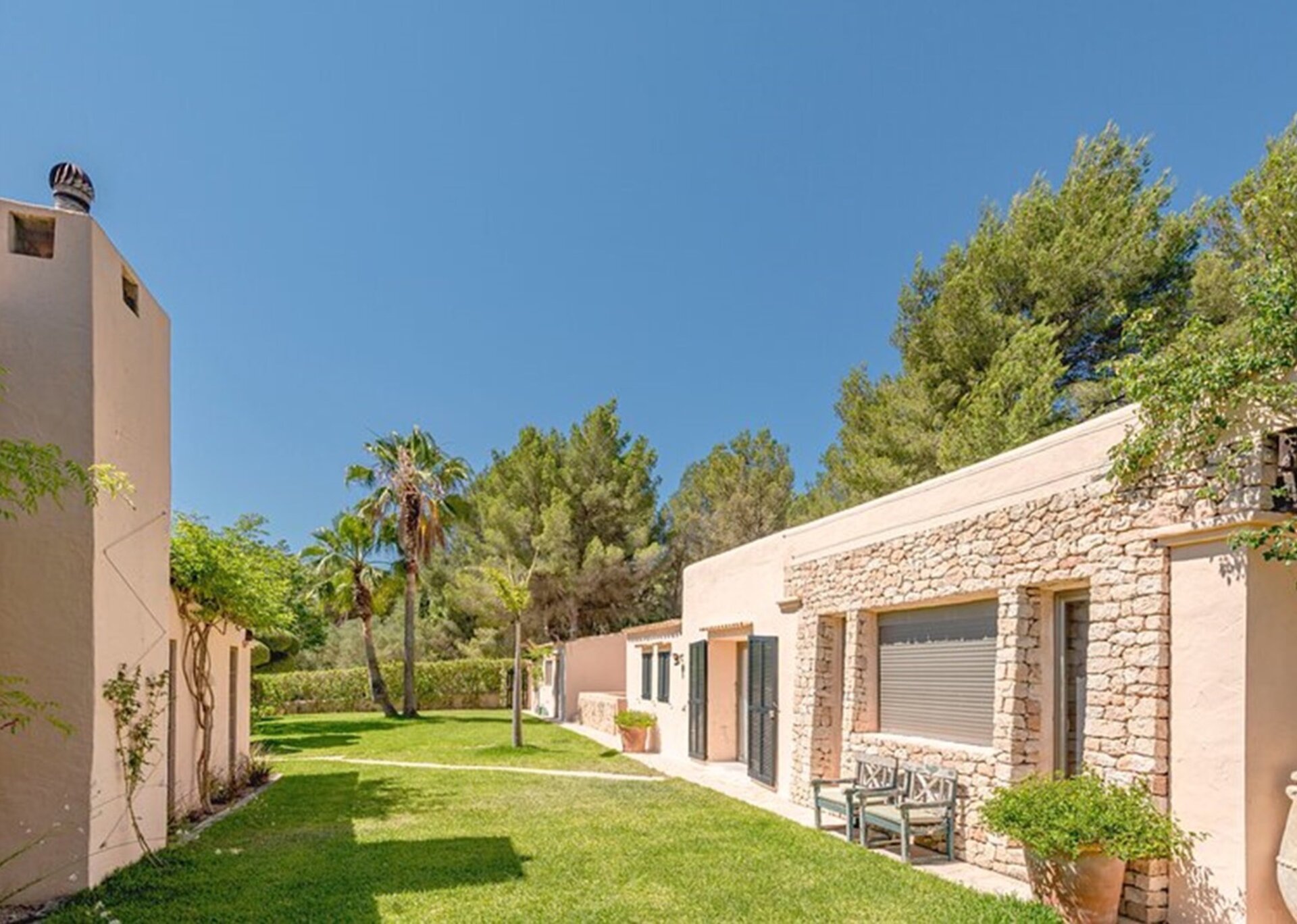 This charming finca exudes romance and is nestled in the scenic area of Cala Llonga, with close proximity to the Ibiza golf course. Secluded yet conveniently located, it's just a short walk to Cala Llonga and a quick 10-minute drive to Ibiza Town and Santa Eulalia.