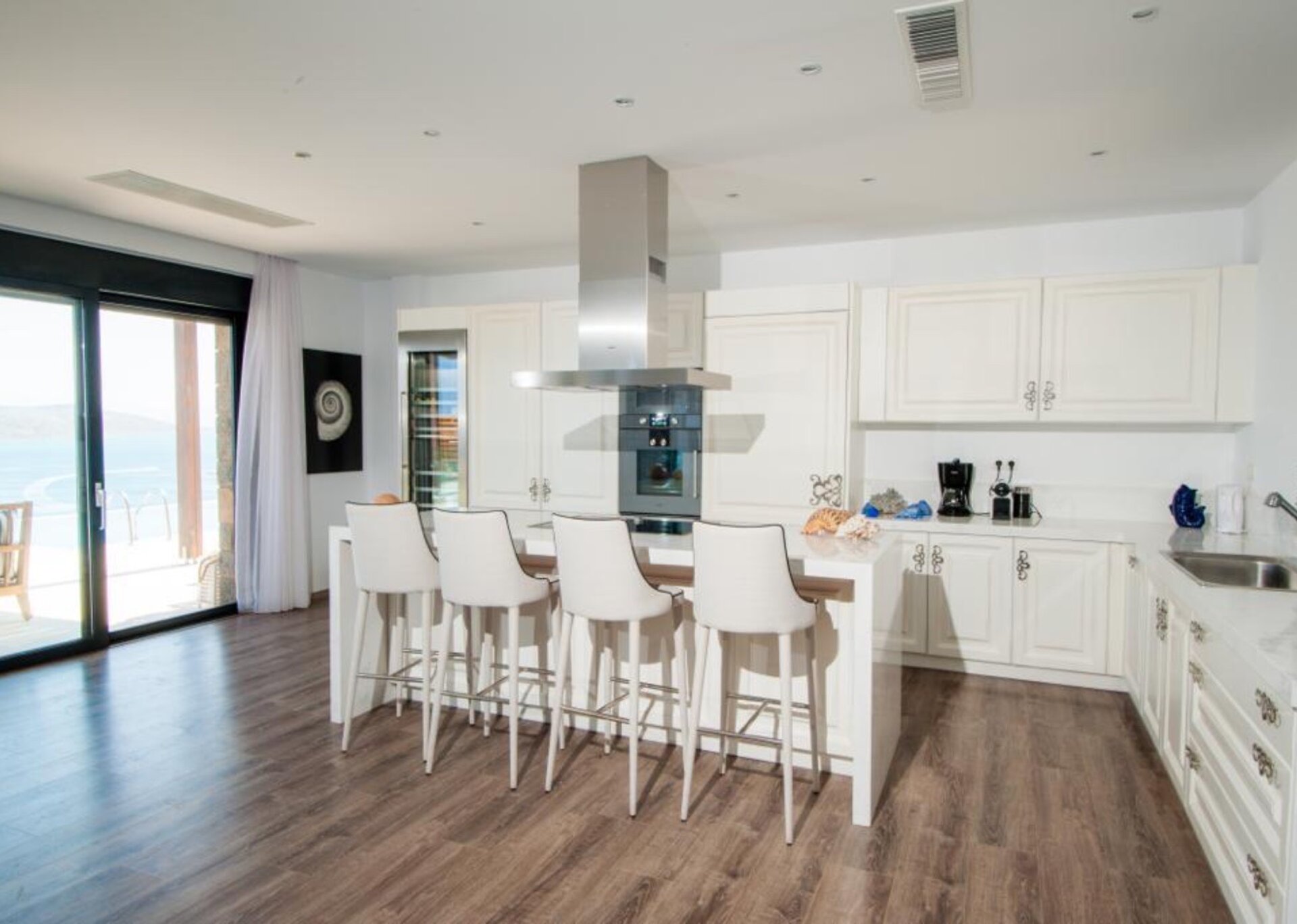 The inner area of villa Isabelle is meticulously designed and each room is modernly decorated, while the furniture are high quality and expensive pieces. There is a lovely indoor dining spot, perfect for family gatherings and spending time with your guests.