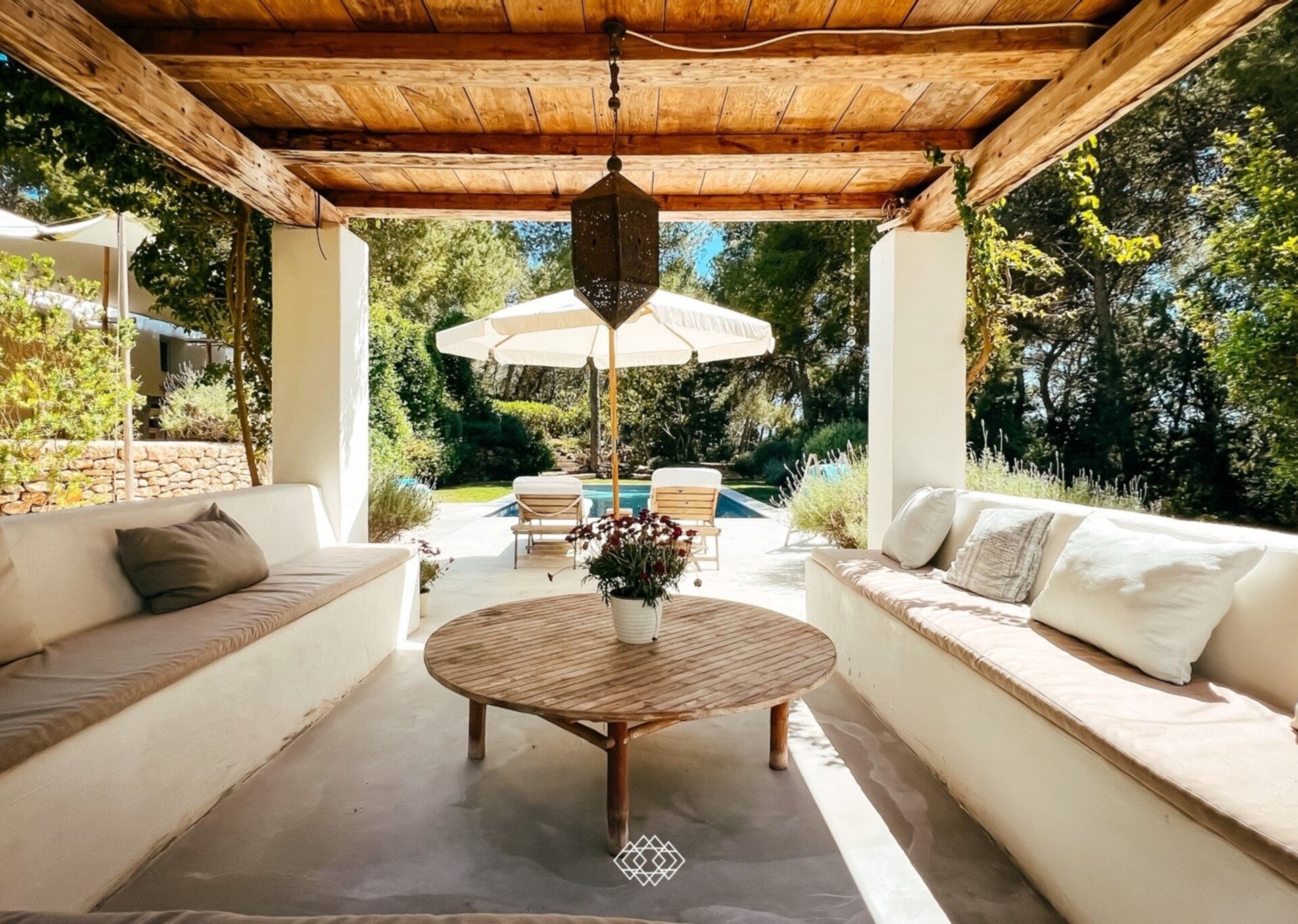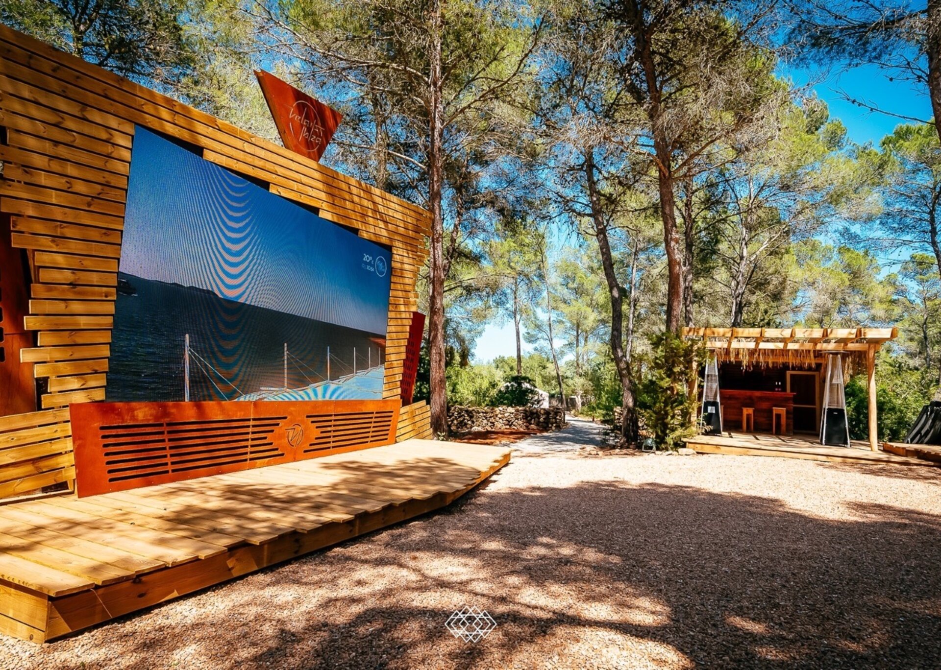 Yet, the splendor doesn't end here. As guests of this extraordinary estate, you have the exclusive privilege of utilizing a beautifully appointed and covered Sala for private dinners, yoga classes, or personal training sessions. Adding even further allure, this estate offers something truly exceptional for Ibiza - an outdoor cinema. Imagine organizing your private movie or sports nights, projected on a remarkable 15 m2 LED screen, creating an unforgettable and exclusive experience of entertainment at its finest.
