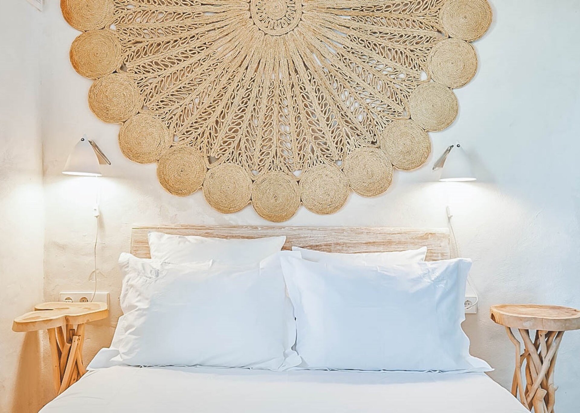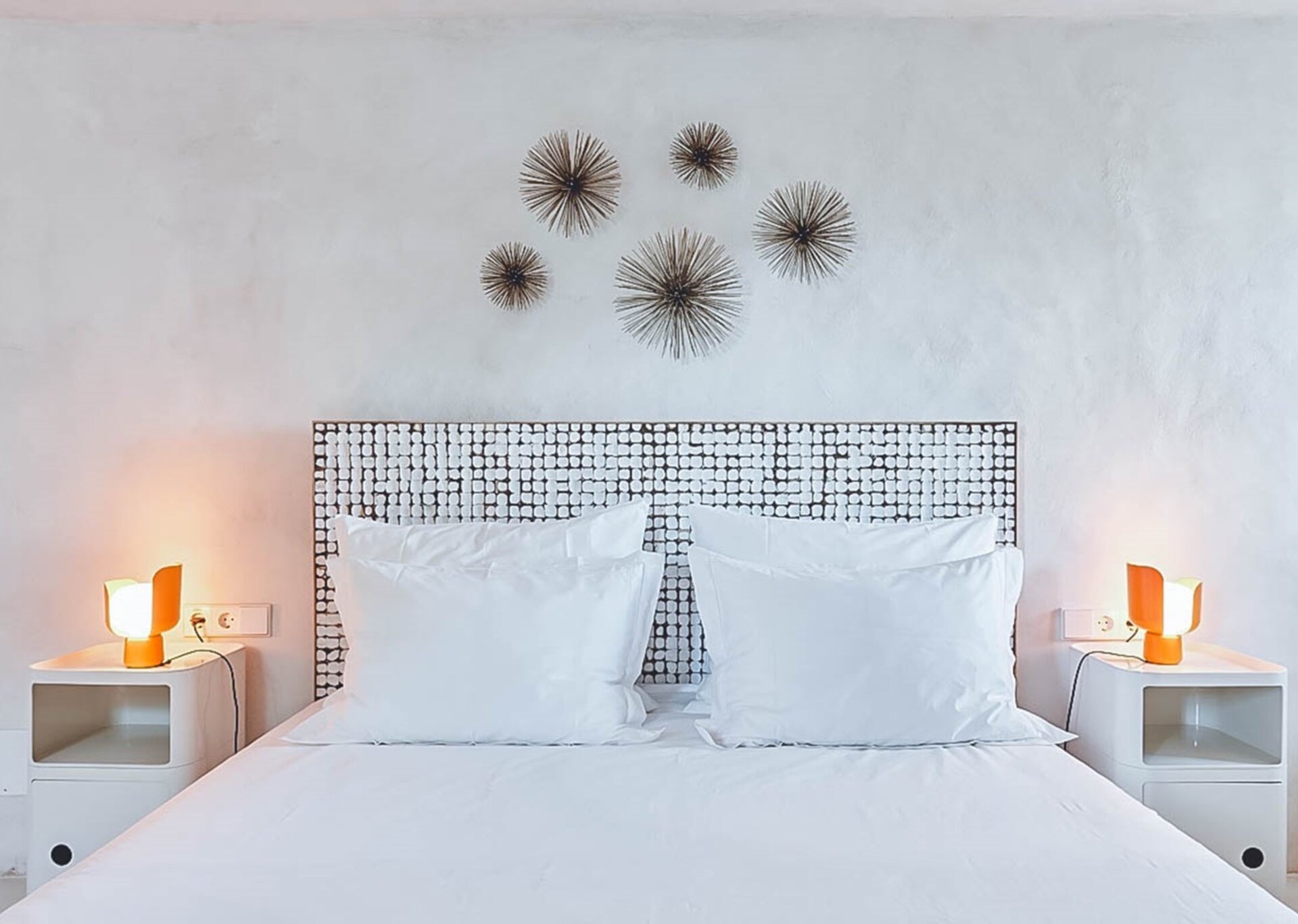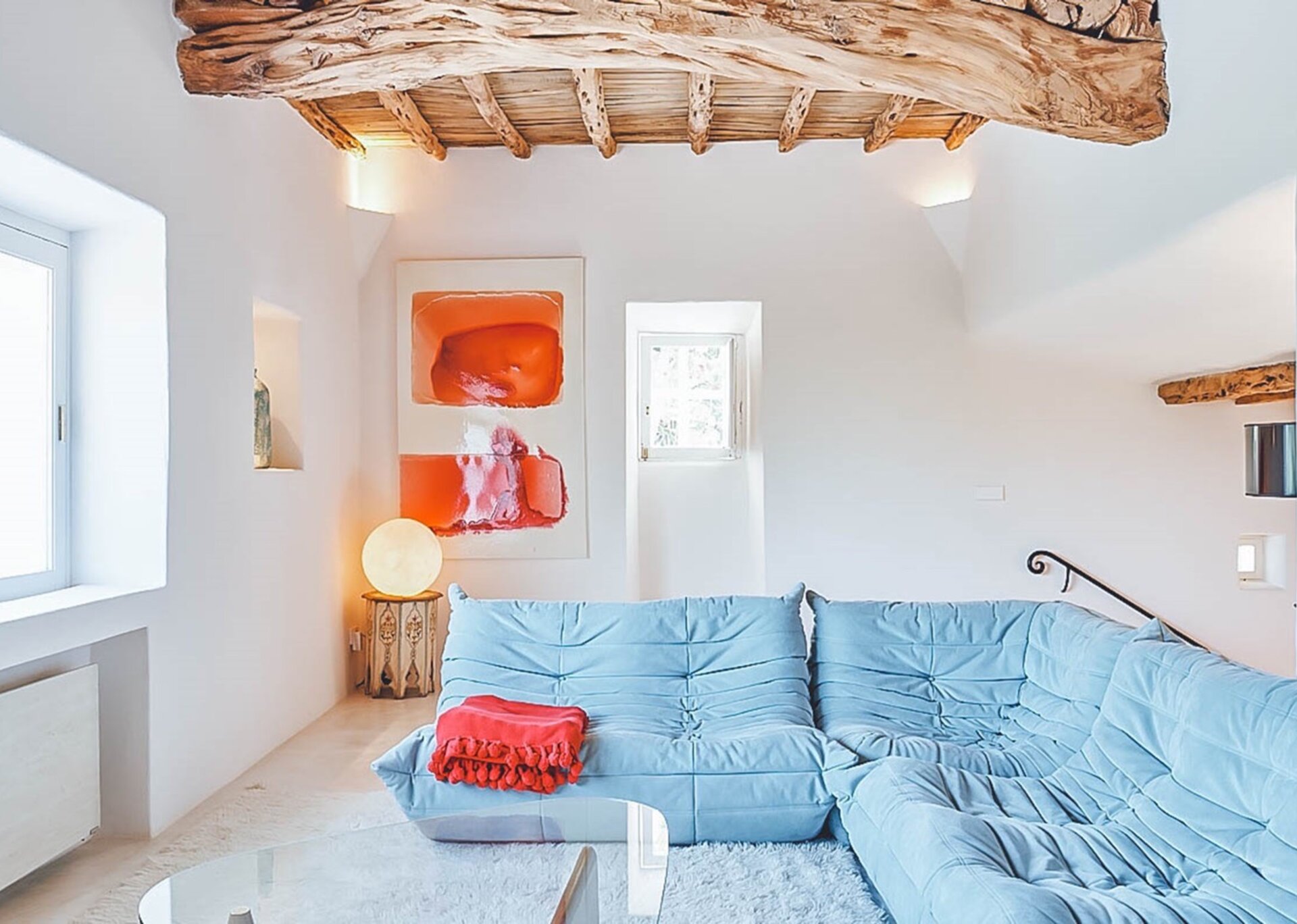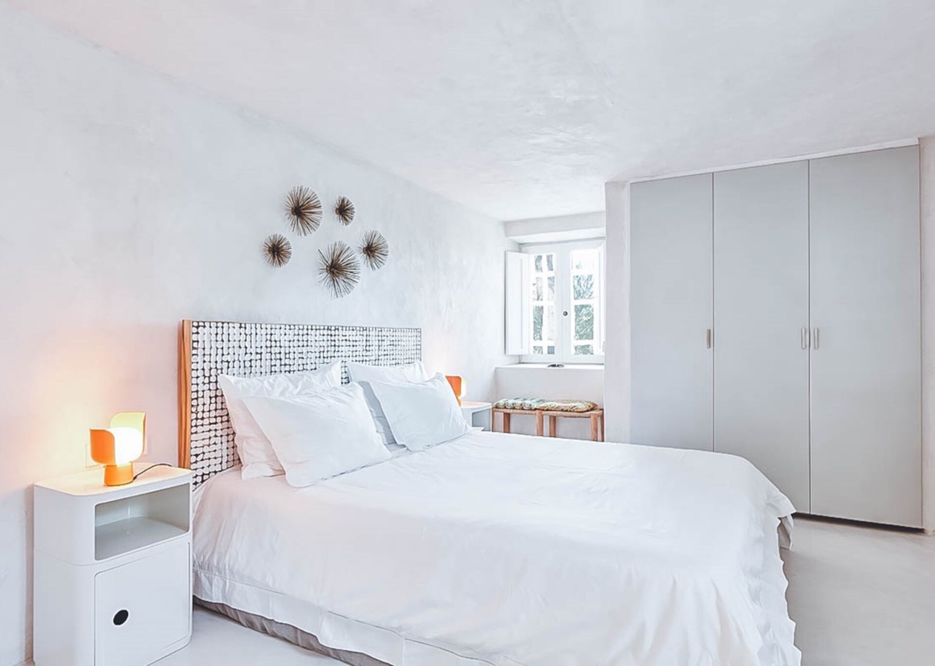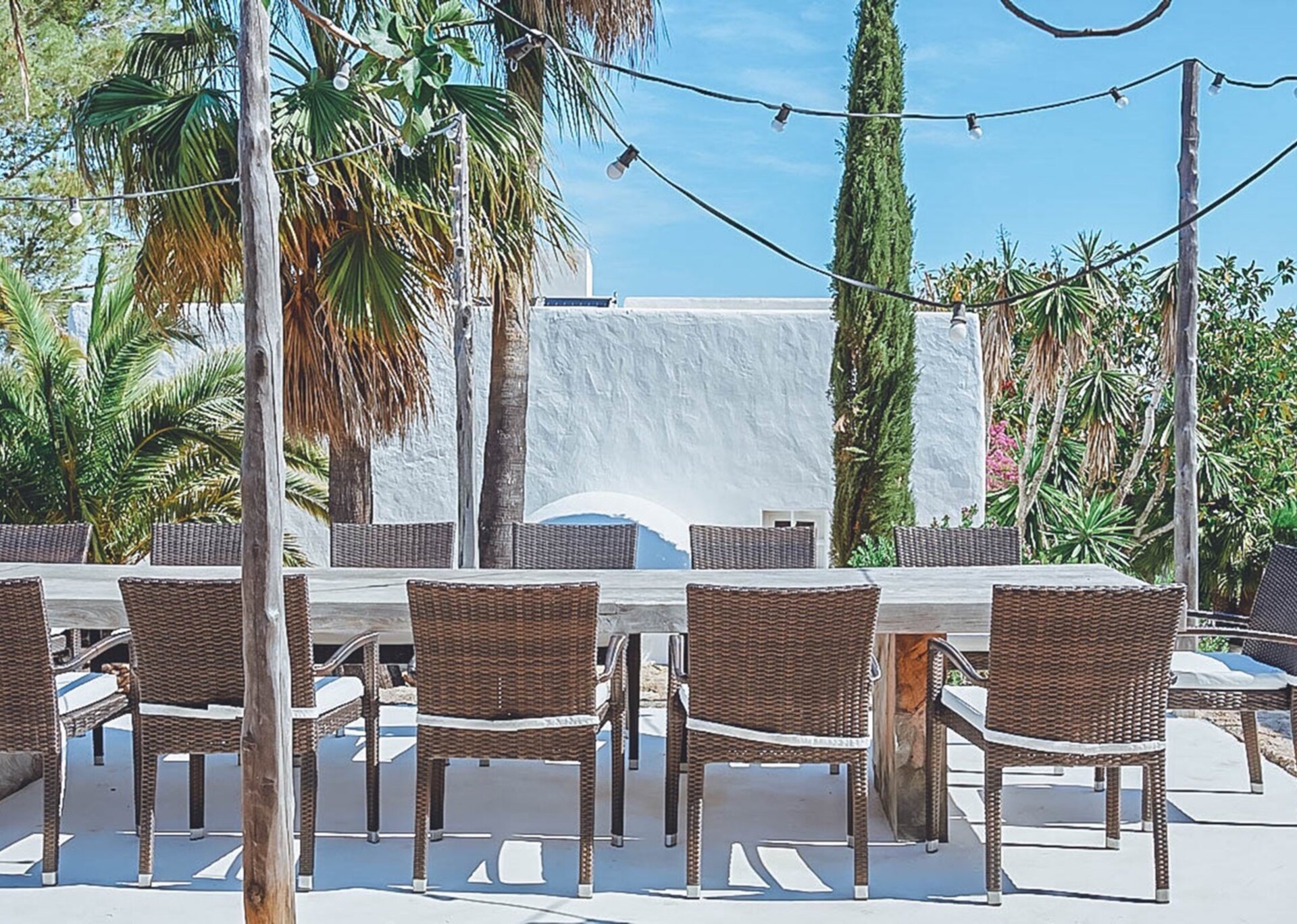 Inside, Jasper exudes the traditional 'Ibicenco' style, showcasing floor-to-ceiling stone masonry walls and wooden beamed ceilings flawlessly blended with contemporary finishes in brilliant white and modern decor. The villa features a cozy lounge area with a spacious and comfortable sofa, various dining spaces, and a sleek, fully equipped modern kitchen complete with a breakfast bar and all the state-of-the-art appliances you would expect from a property of this caliber. Stylish contemporary lighting, artwork, and furniture effortlessly harmonize the traditional design with modern sophistication.