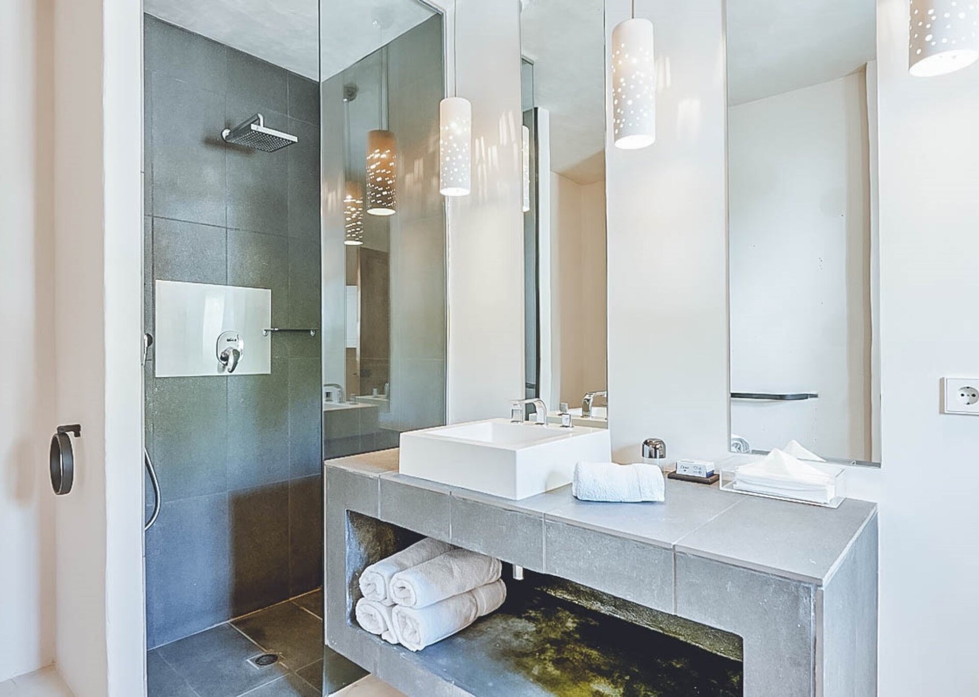 The bedrooms in Jasper are generously sized and elegantly designed, reflecting the overall theme of the main house with a seamless contemporary look and feel. Each bedroom is accompanied by its own en-suite bathroom. The master bedroom, situated on the upper grounds, offers a private entrance and a large terrace. Bedroom 2 also boasts its own entrance and features a double bed with an en-suite bathroom. Bedrooms 3, 4, and 5 are located in the main finca and offer comfortable sleeping quarters with en-suite facilities.