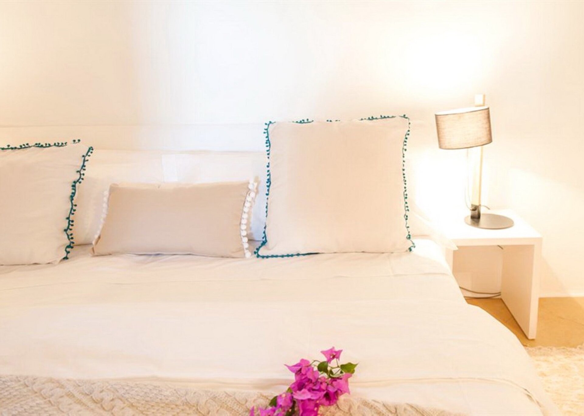 Exteriorly, this stunning home features a delightful blend of white walls and traditional Ibicencan stone, creating a harmonious fusion of minimalistic style and classic touches. Step inside this contemporary dwelling and unwind in the spacious open-plan lounge, complete with plush seating. The beach-inspired kitchen is fully equipped with modern appliances, ensuring convenience and culinary delights. Four beautifully furnished double bedrooms, each boasting an en-suite bathroom and ample wardrobe space, provide comfort and privacy for up to 8 guests.