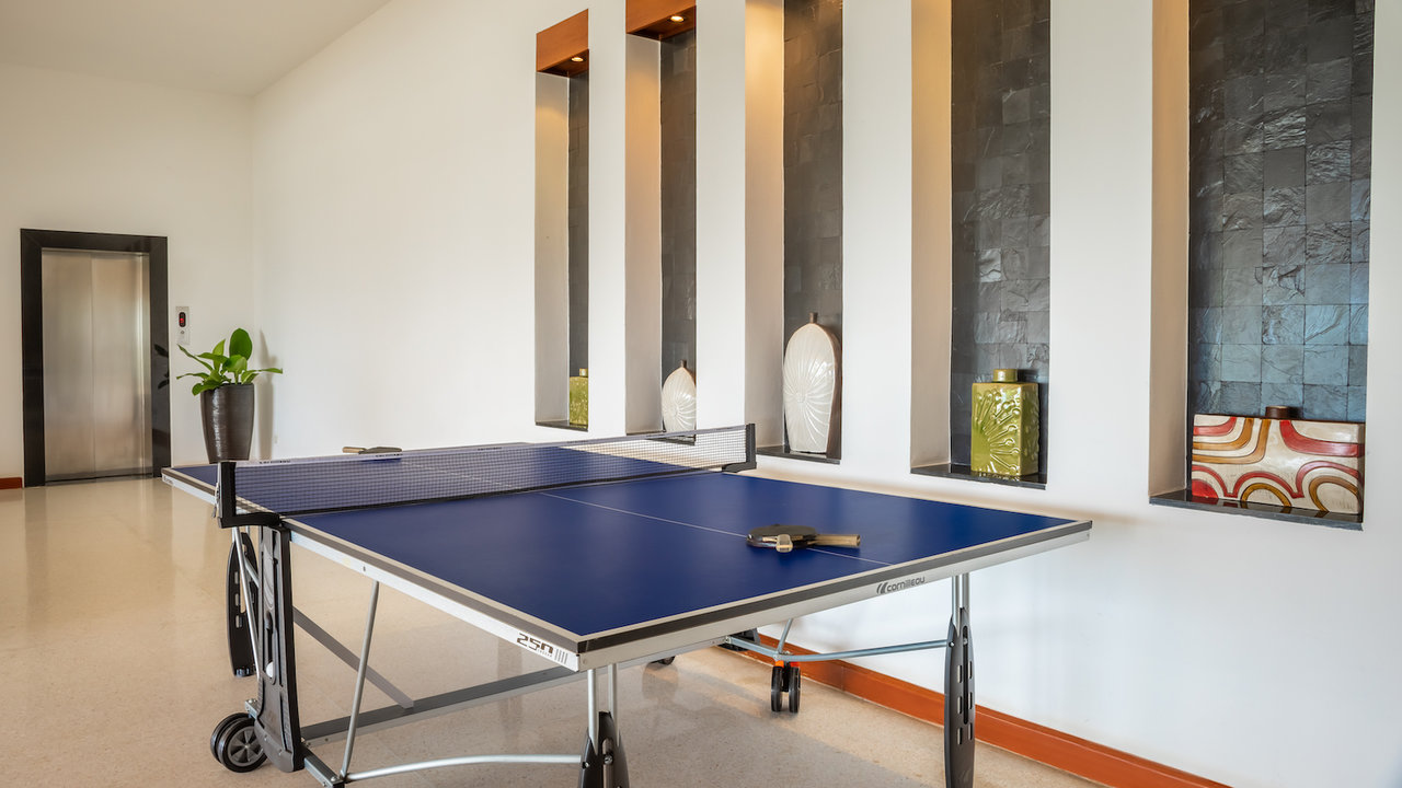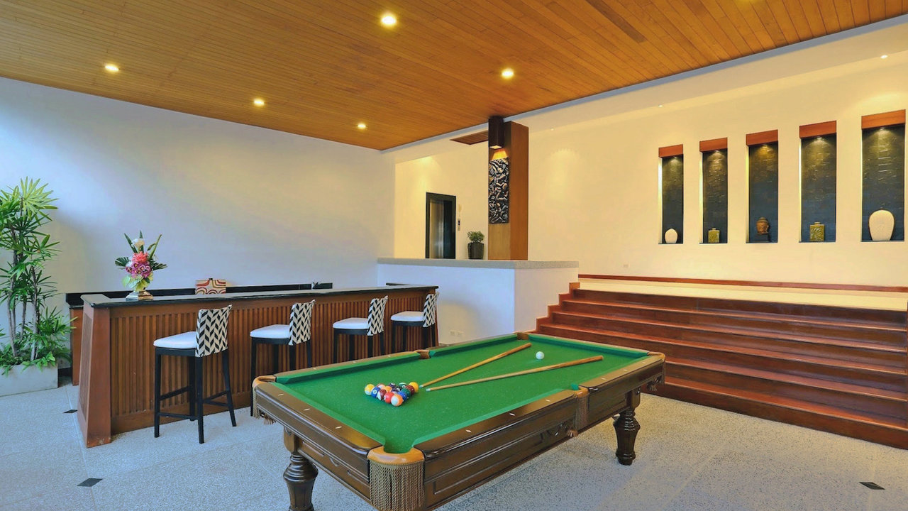 - Entertainment area with bar, pool table, and ping pong table