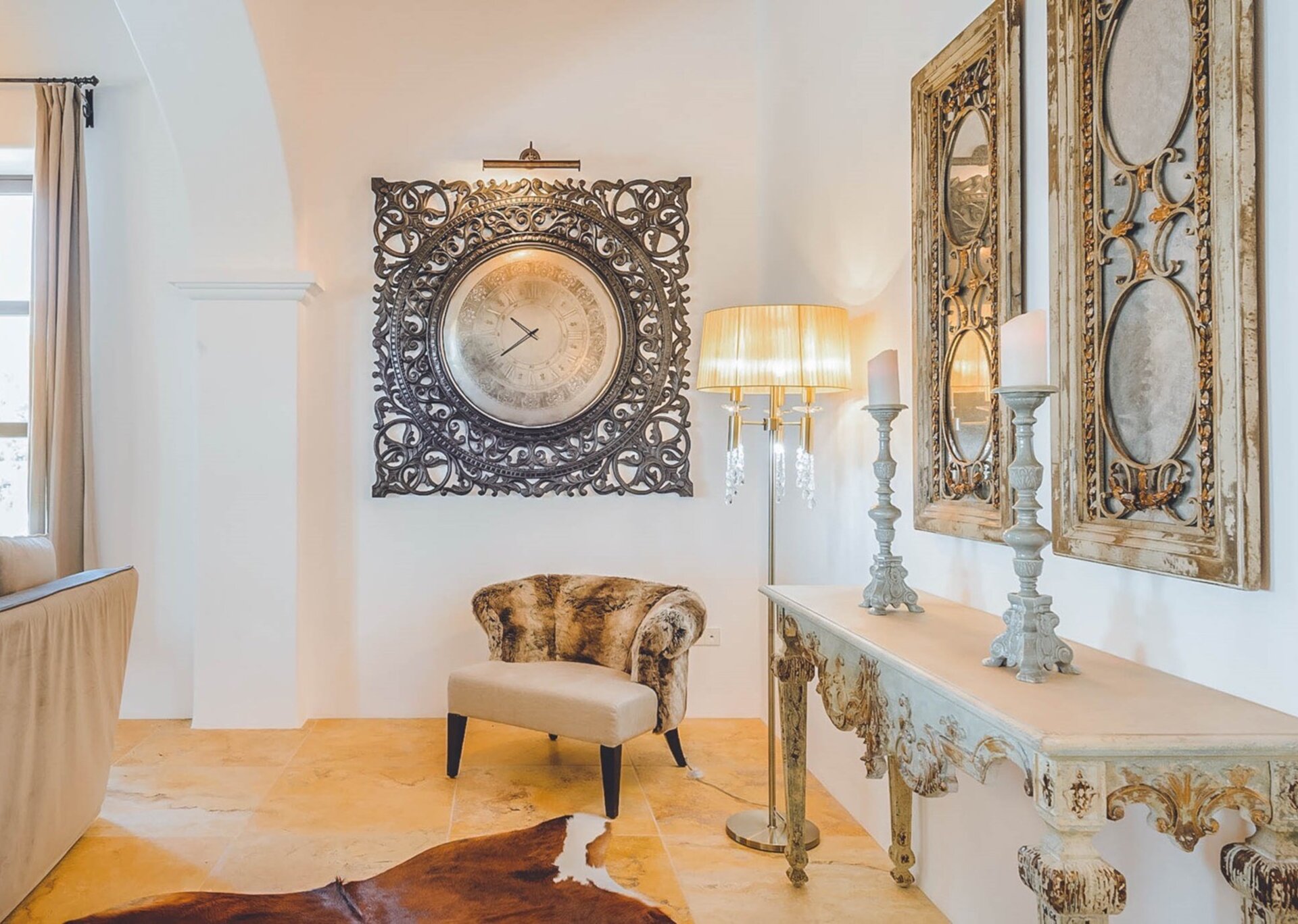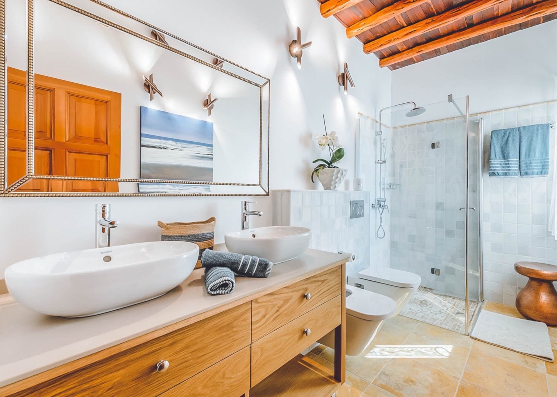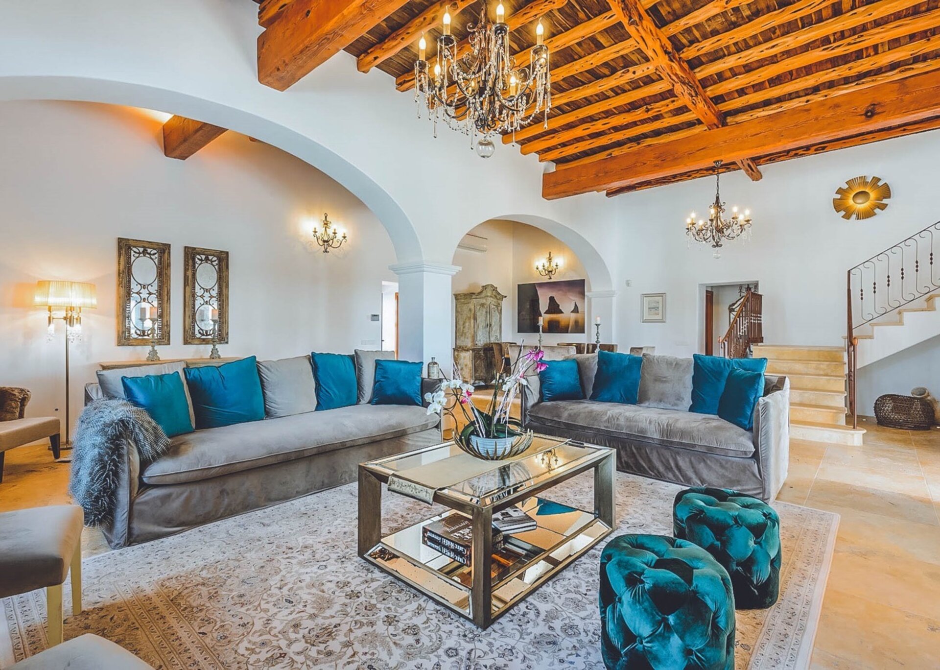 This immaculately designed property boasts a clean and elegant aesthetic, featuring a stylish living room adorned with high-end furnishings. The fully equipped modern kitchen offers top-quality appliances, complemented by minimalist decor and authentic wooden beamed ceilings, lending a touch of traditional charm. Each of the six bedrooms boasts a king-sized bed and en-suite bath and shower, showcasing exceptional standards of decoration with their unique styles and charm. A separate annex serves as the sixth bedroom, offering added privacy with its mini fridge and private access.