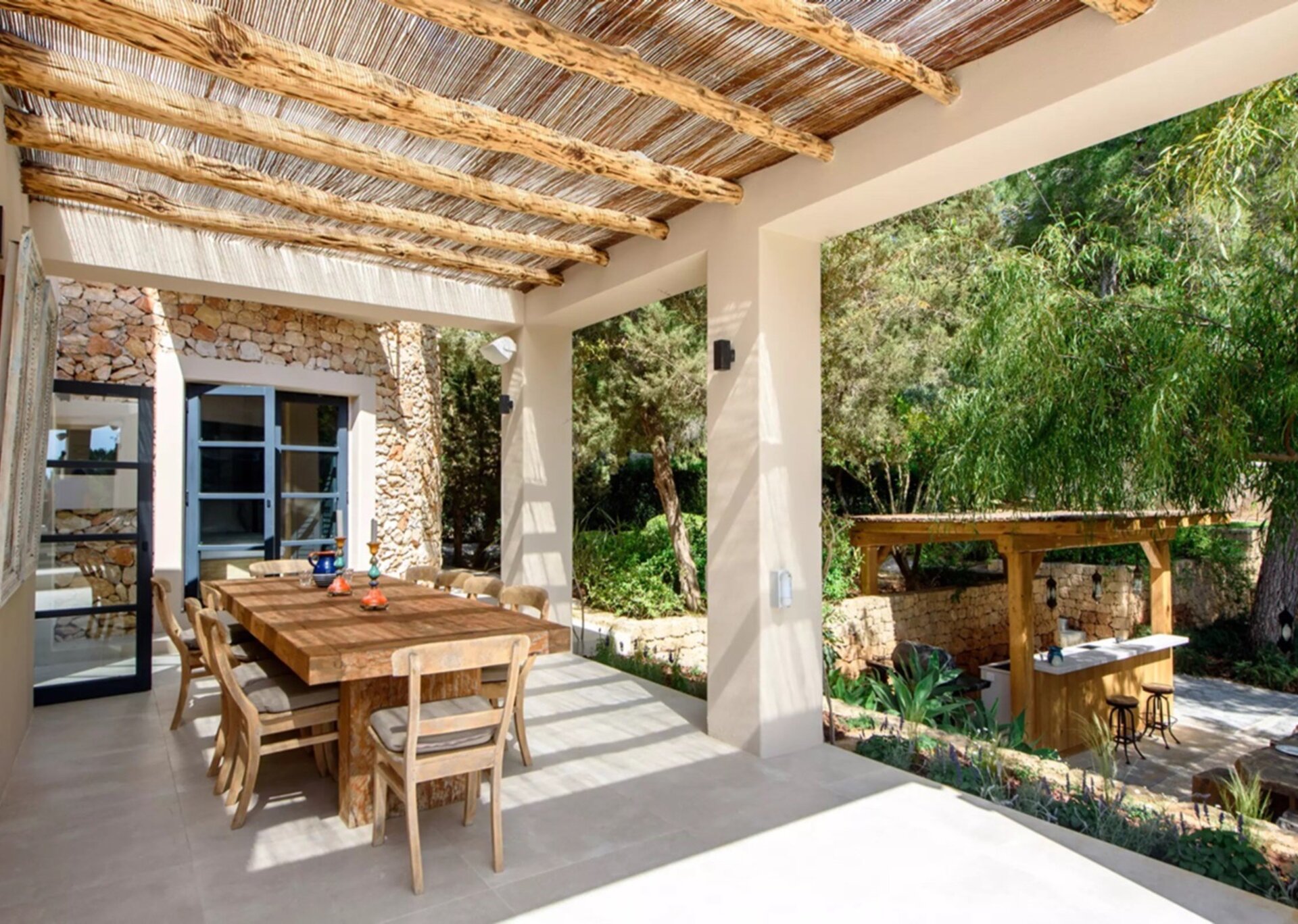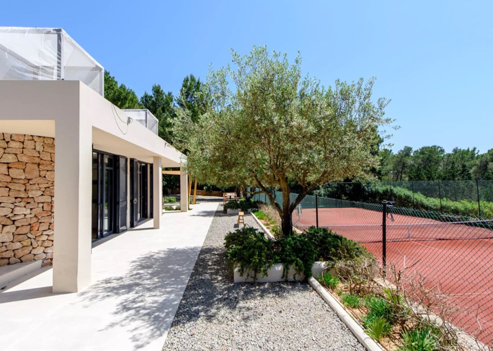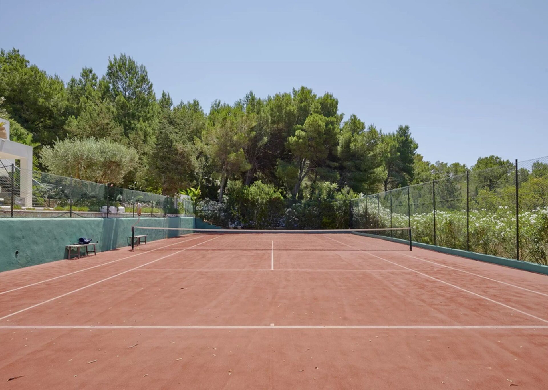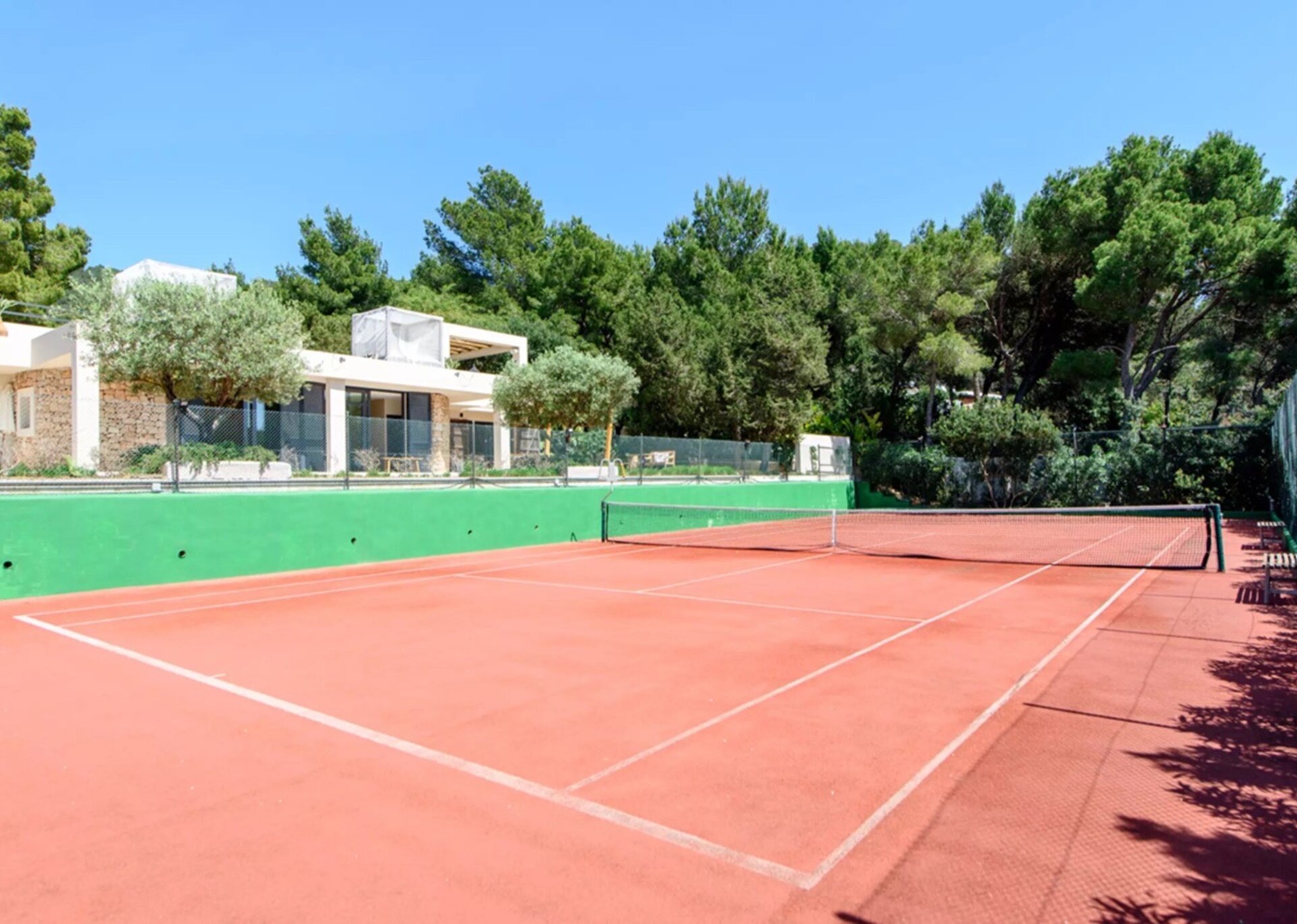 The villa is nestled amidst beautifully maintained and lush gardens, boasting a child-friendly swimming pool, a spacious terrace with comfortable sun loungers, and even a fully lit tennis court for those looking to stay active while vacationing on the enchanting island of Ibiza. An outdoor dining area and BBQ space provide the perfect setting for entertaining, from leisurely breakfasts to captivating starlit dinners, all while soaking in the unforgettable views of the sea.
