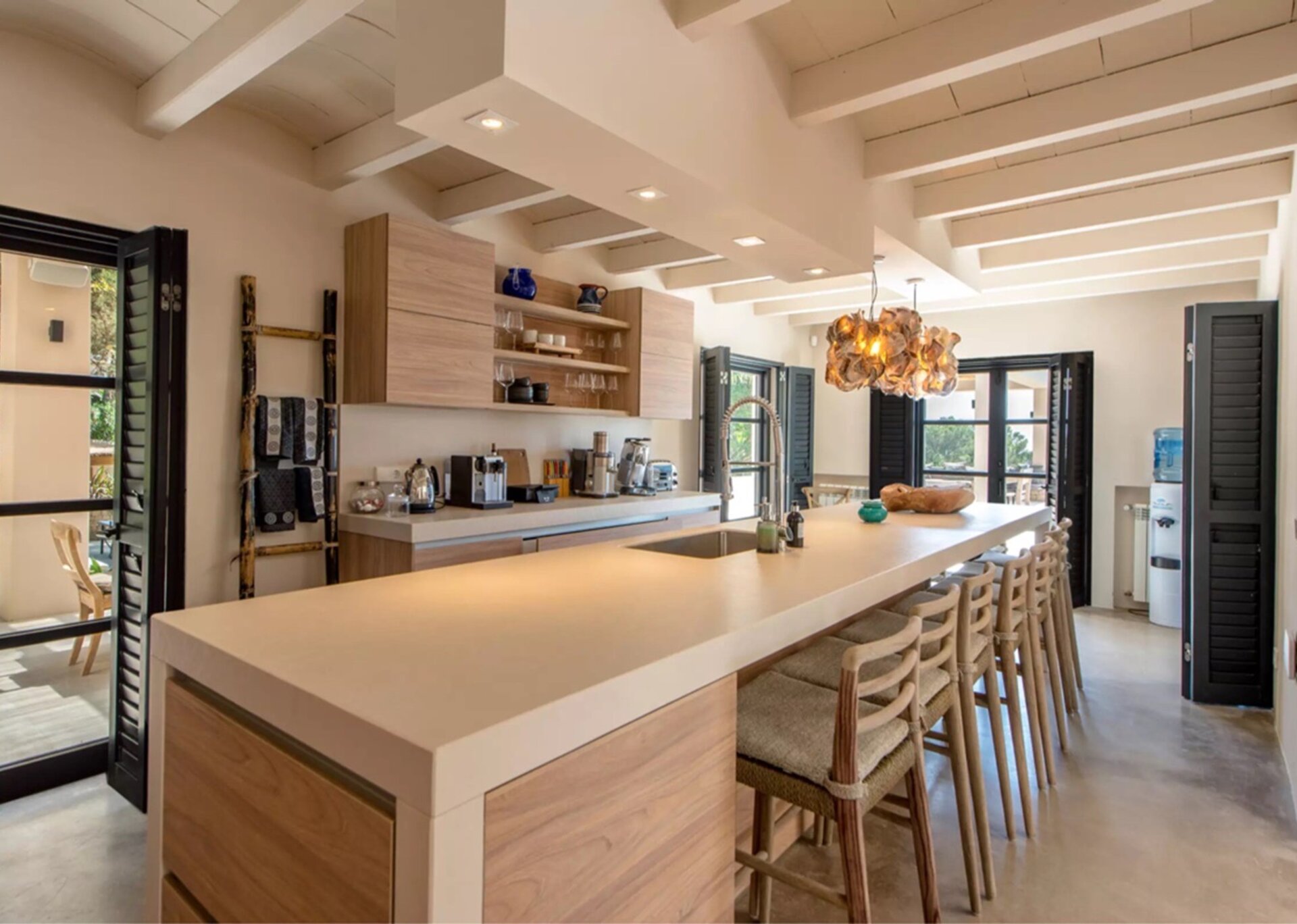 Inside, the villa boasts an exquisite blend of ethnic boho-chic style, featuring spacious and inviting open plan living spaces that seamlessly connect to an outdoor terrace. Enjoy the awe-inspiring sea views while surrounded by a fusion of authentic stone masonry and Balinese wall hangings, creating a unique and eclectic ambiance. This stylish property effortlessly combines the charm of the Mediterranean with hints of the Far East, making it a truly inspiring holiday retreat. Every detail has been carefully curated to ensure supreme style, with opulent decorations and artworks that perfectly complement the villa's theme.