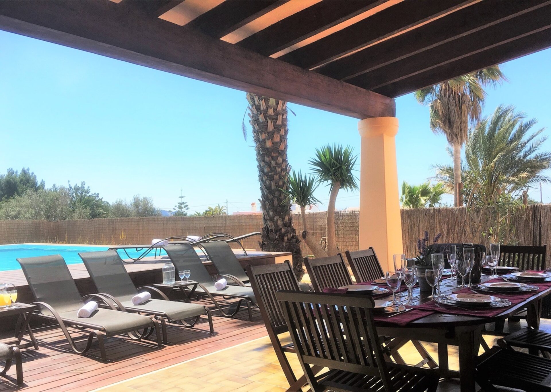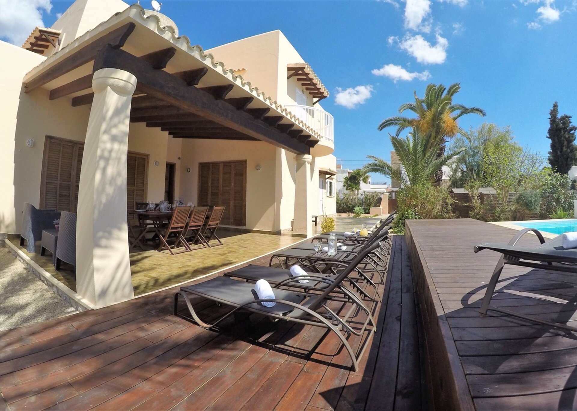 Villa Jordi is nestled in a serene residential area in Sant Jordi de Ses Salines, just 3 km away from vibrant Ibiza town. With its convenient location, it's only a short distance of 3.5 km from the famous Platja d'En Bossa, where you can find iconic venues like Hi, Ushuaia, and Hard Rock. It's also conveniently positioned 3.5 km away from Ibiza Airport, KM5, 6 km from the lively Marina Botafoch that houses renowned spots like Pacha, Heart, and Cipriani. For those seeking natural beauty, the stunning beaches of Cala Jondal (Blue Marlin and Yemanja) are only 8 km away.
