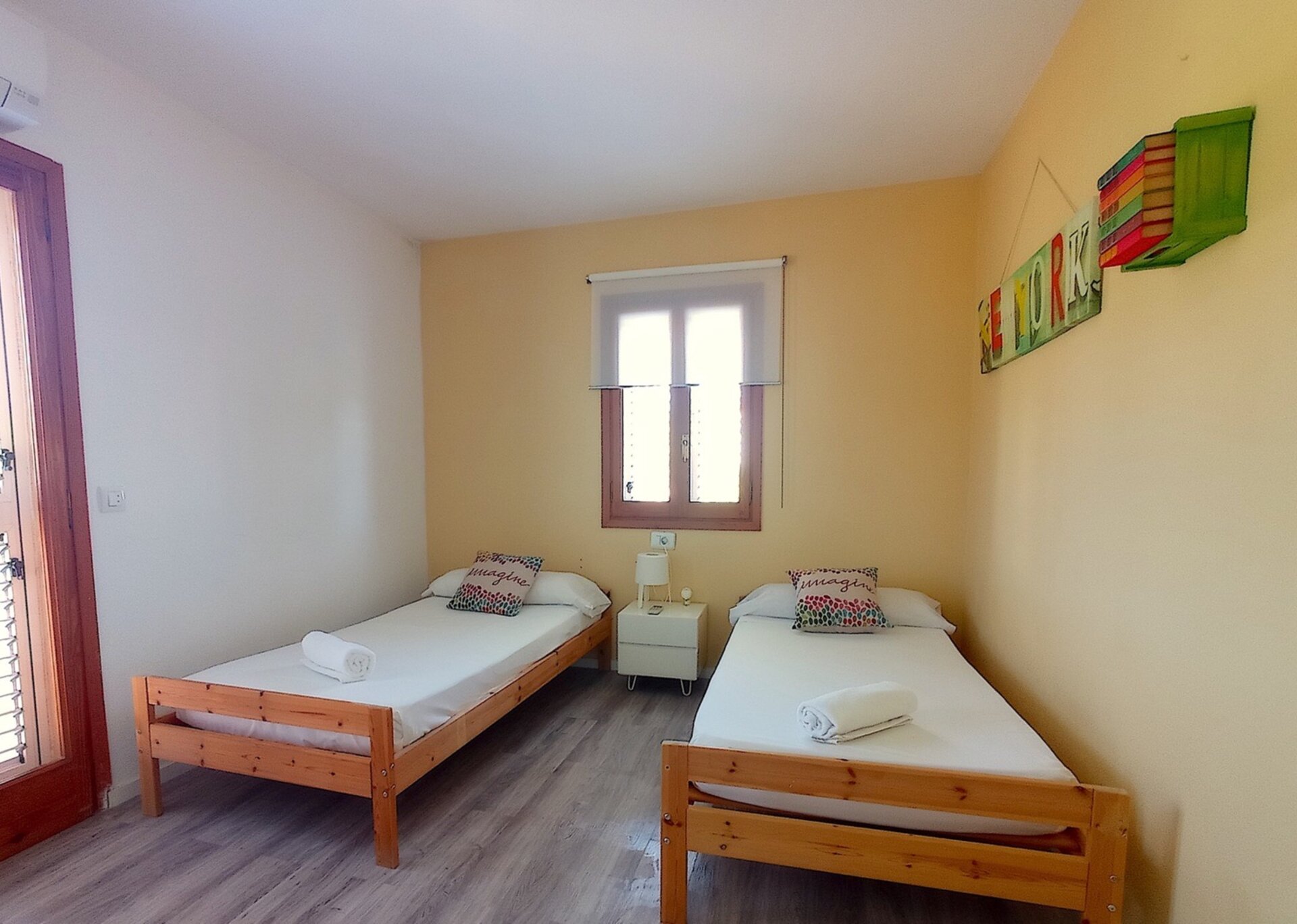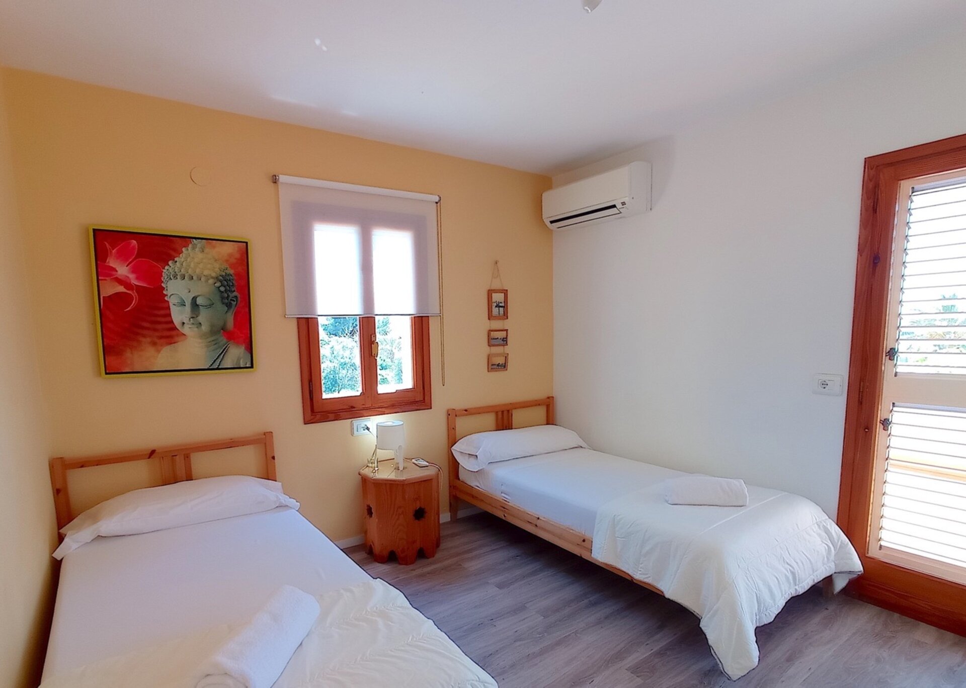 Villa Jordi boasts a delightful interior, featuring five double bedrooms with charming terraces, three bathrooms, a fully equipped kitchen, and a cozy living room. The outdoor area is equally inviting, offering a spacious pool with comfortable sun beds, a barbecue area, and a generous porch for relaxation.