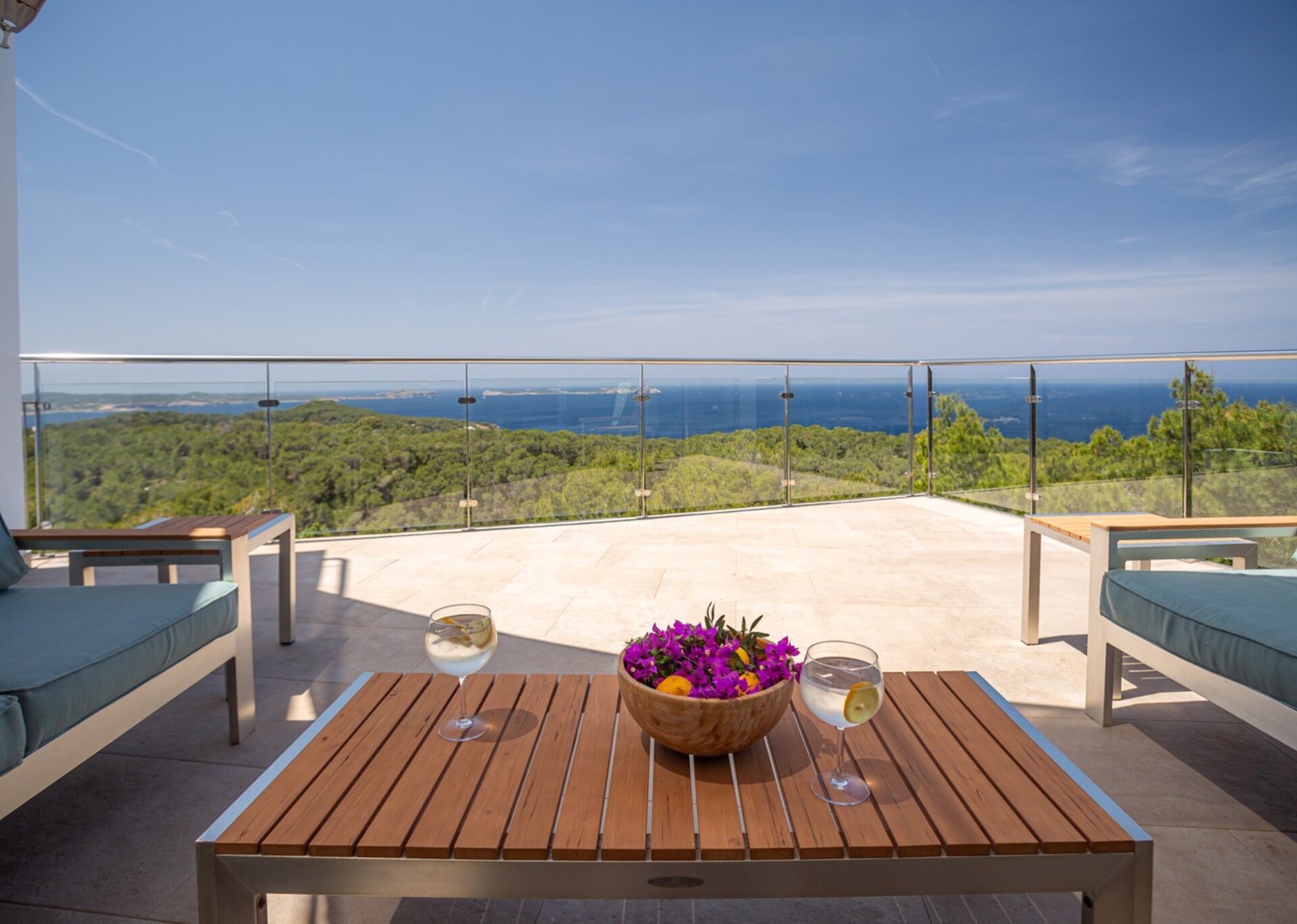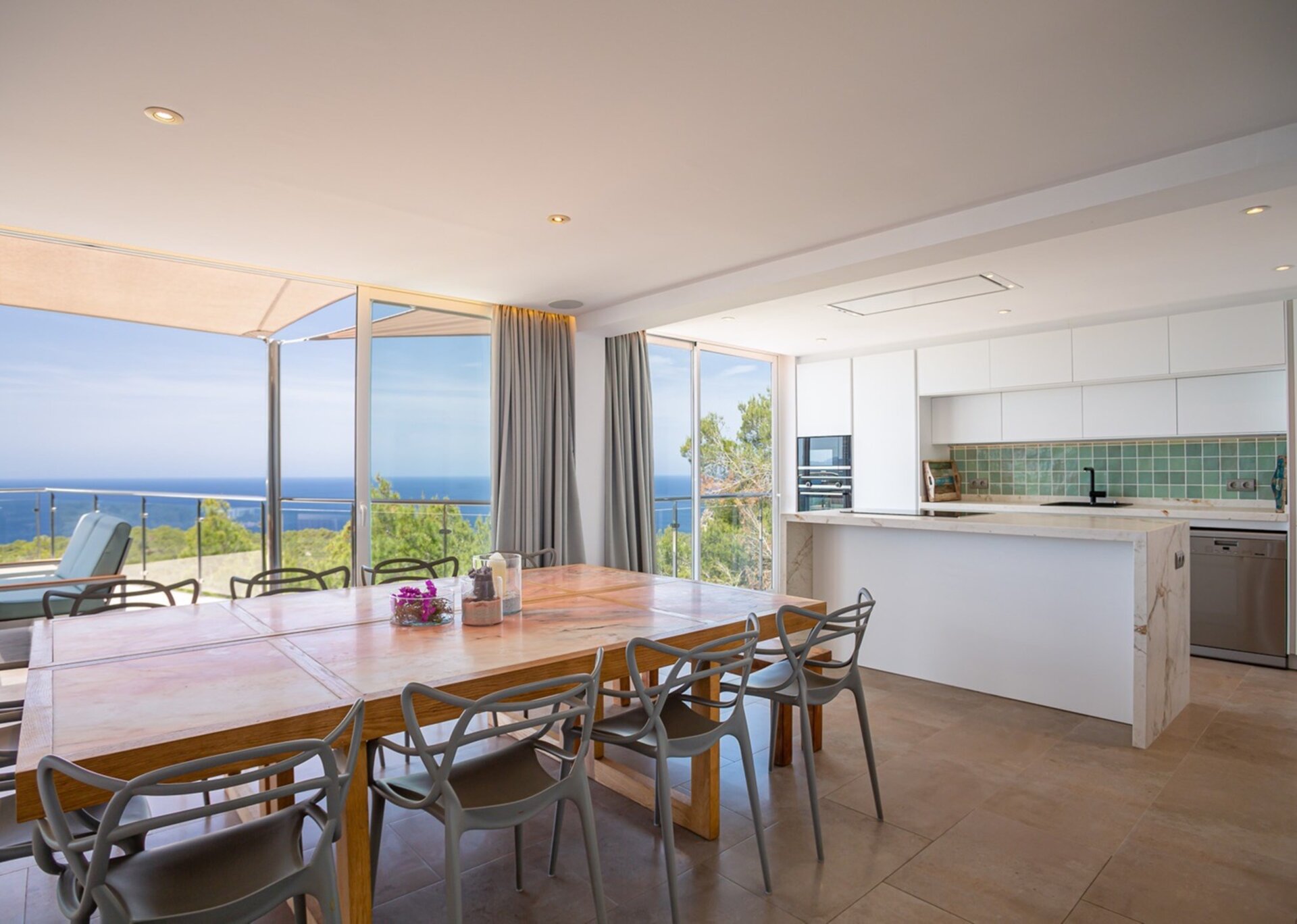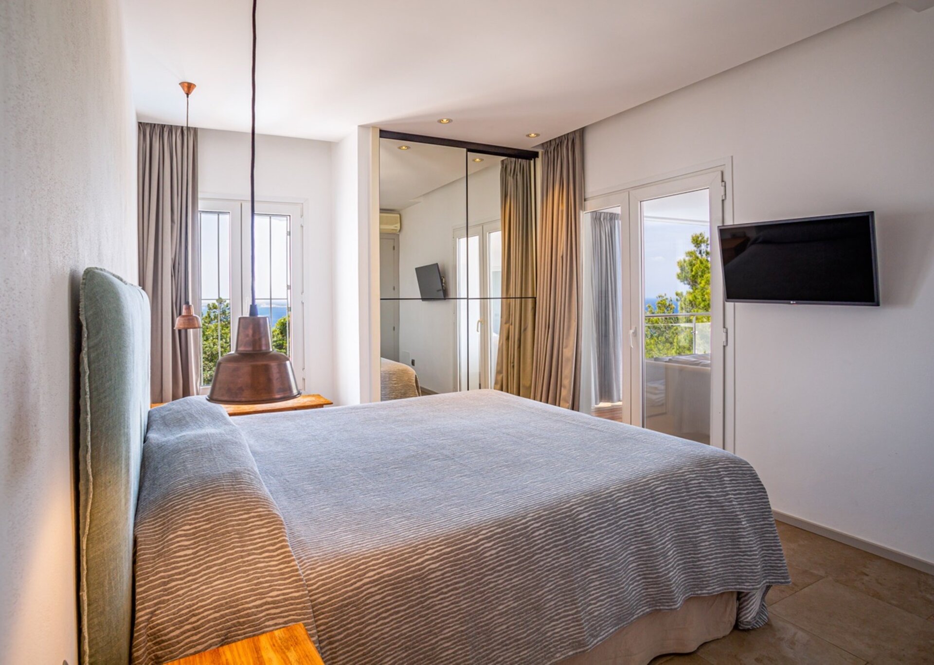 Step outside onto the terraces of Judith and immerse yourself in the true beauty of panoramic views overlooking the shimmering Mediterranean sea. Whether you choose to bask in the sun on one of the many terraces or unwind in the dedicated chill-out areas, you'll be captivated by the stunning vistas of the turquoise waters and verdant pine tree forest that blankets the hills surrounding the bay. The inviting pool is complemented by sleek decking and an alfresco dining area, providing the perfect setting for indulging in leisurely lunches or enjoying intimate dinners beneath the stars.