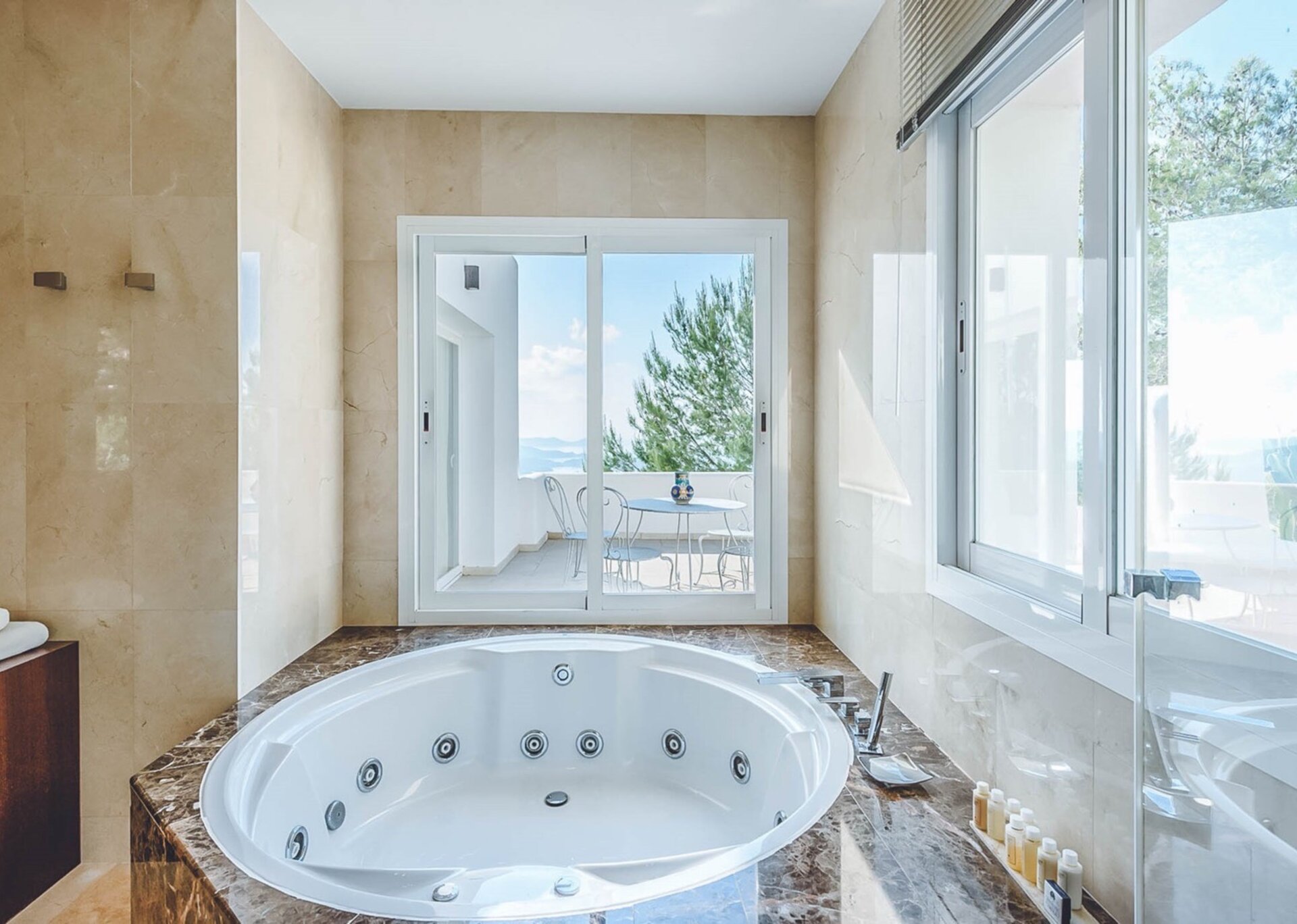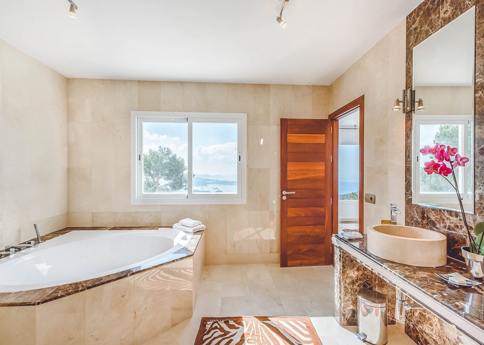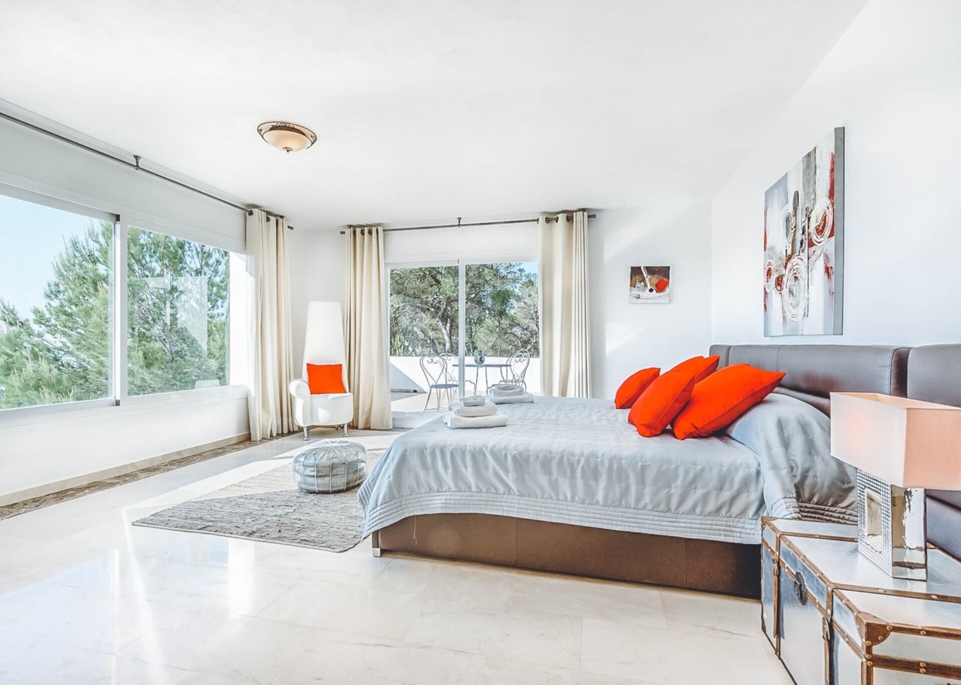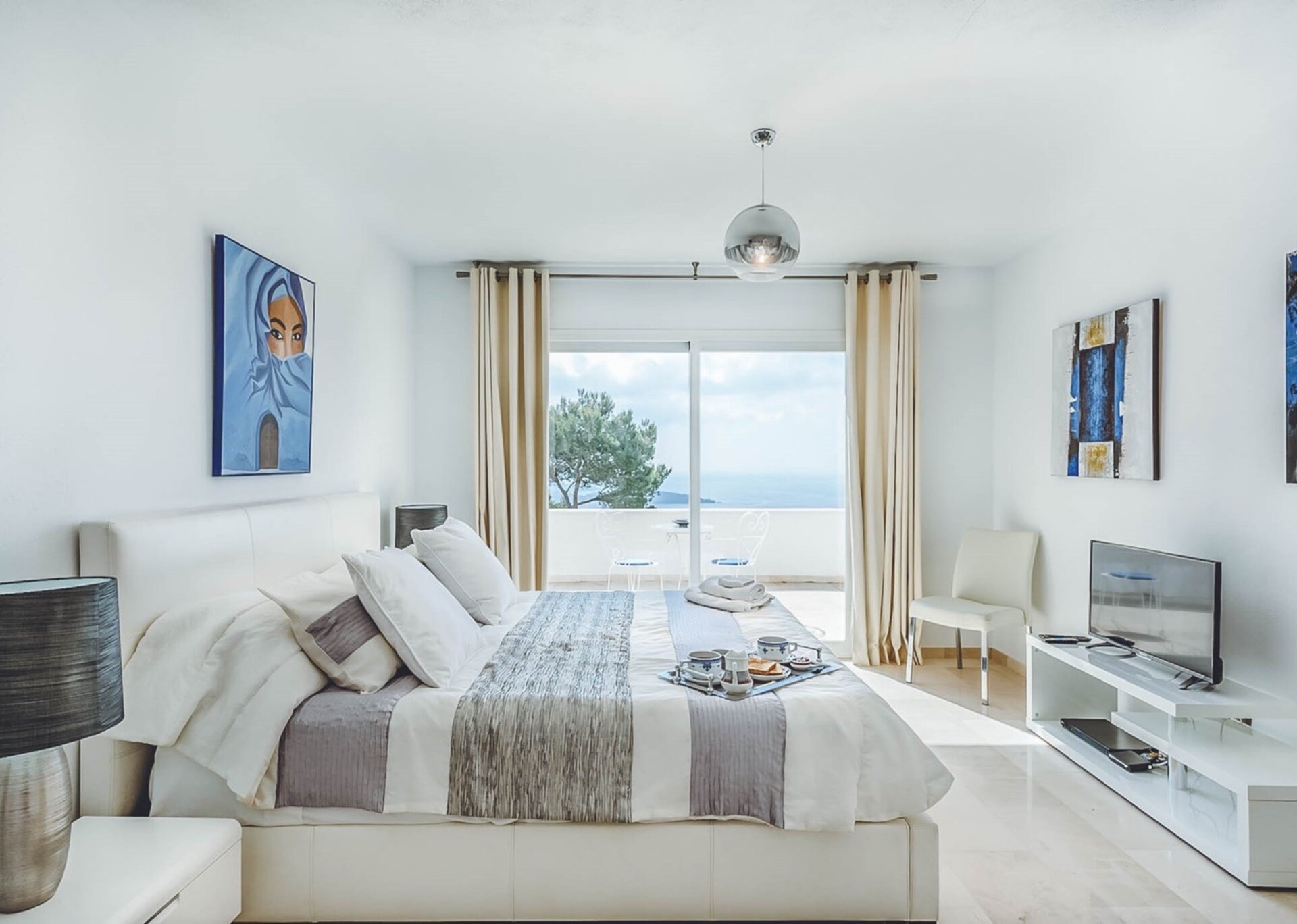 Villa Kellish is a stunning 6-bedroom property in the prestigious area of Es Cubells, offering breathtaking views of the Mediterranean sea. This south-facing villa boasts a prime location, with panoramic vistas of the coastline and sparkling turquoise waters. Perched atop the hills, the views alone provide an immediate sense of gratification.