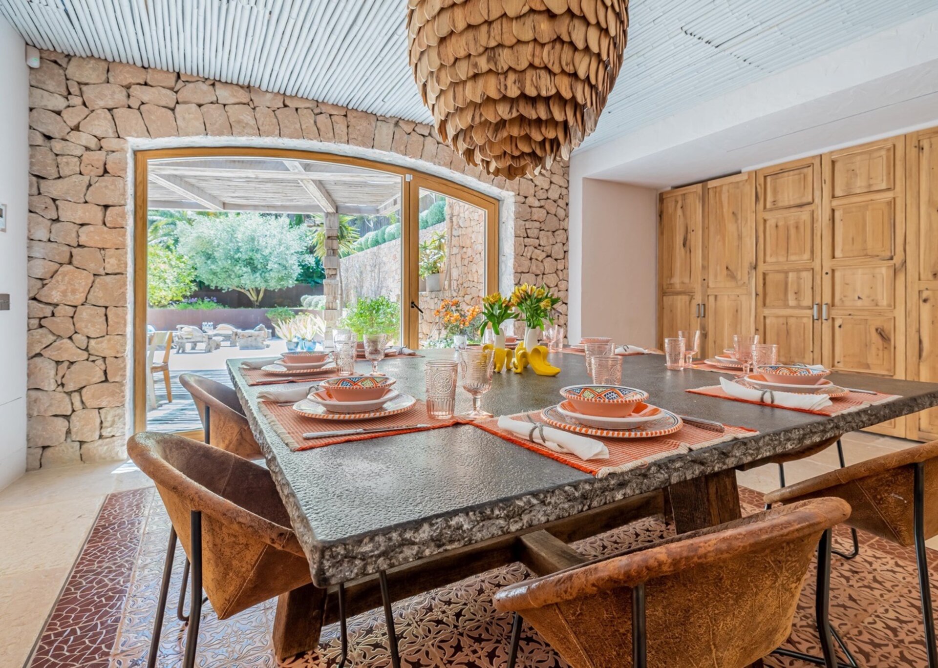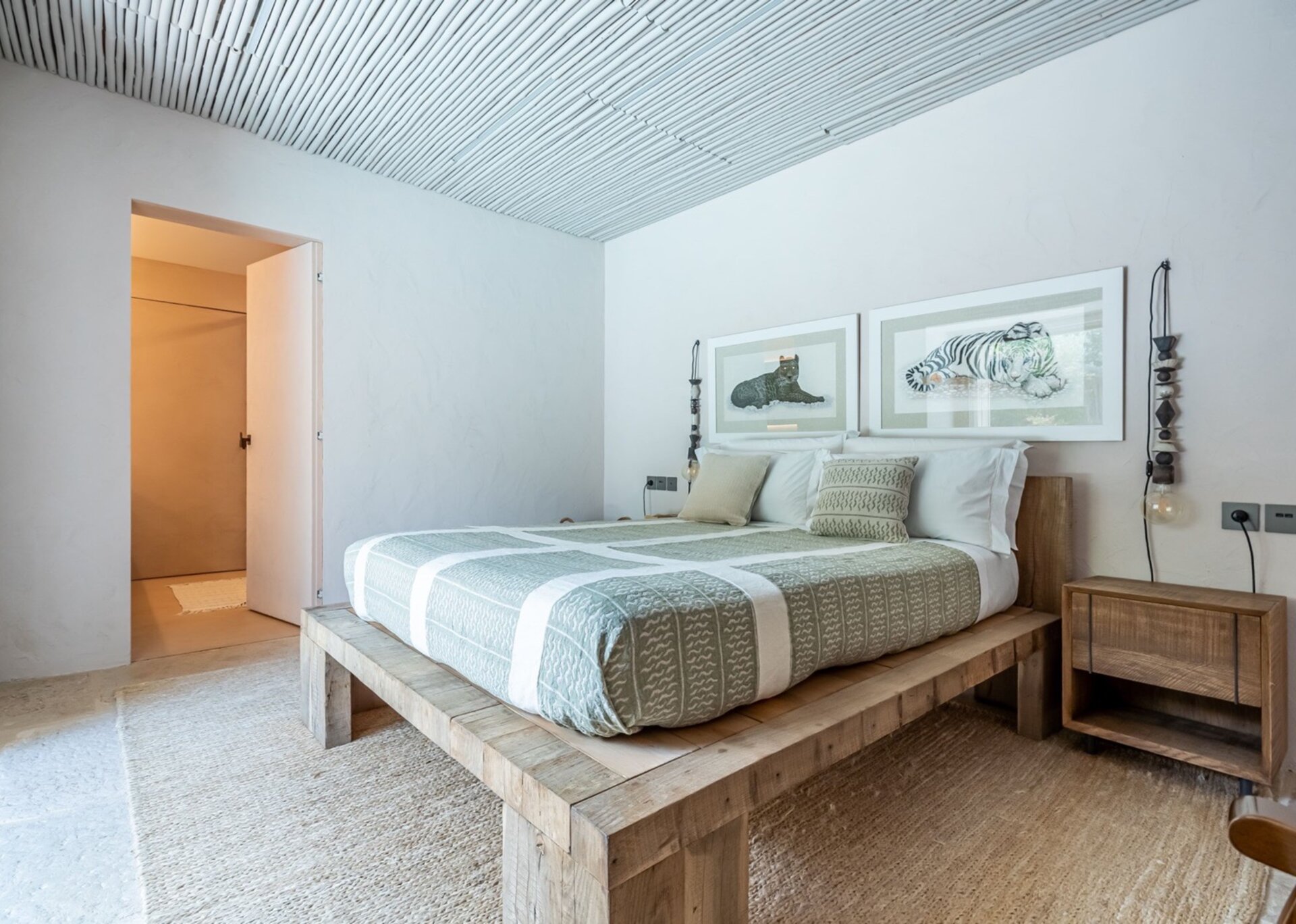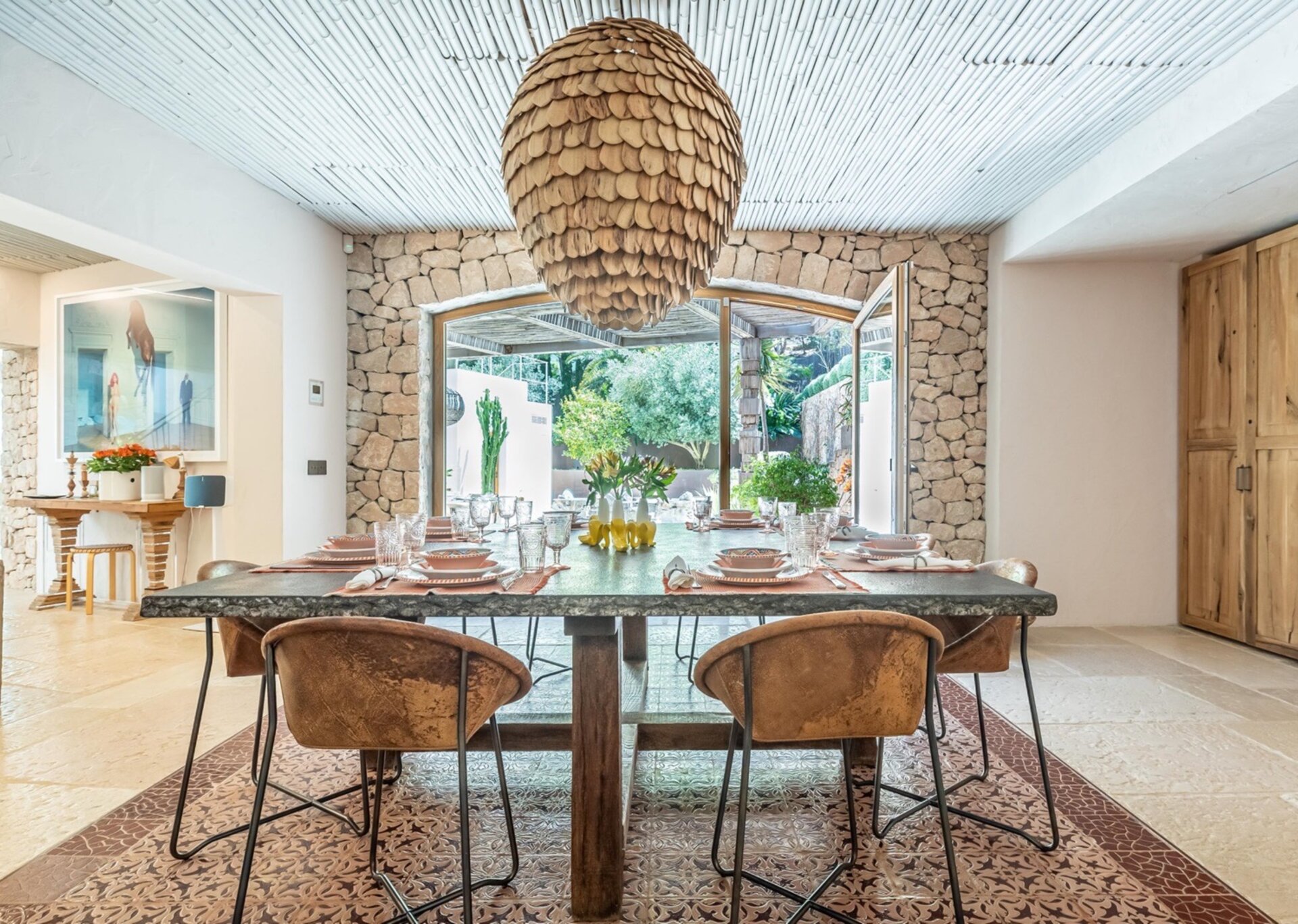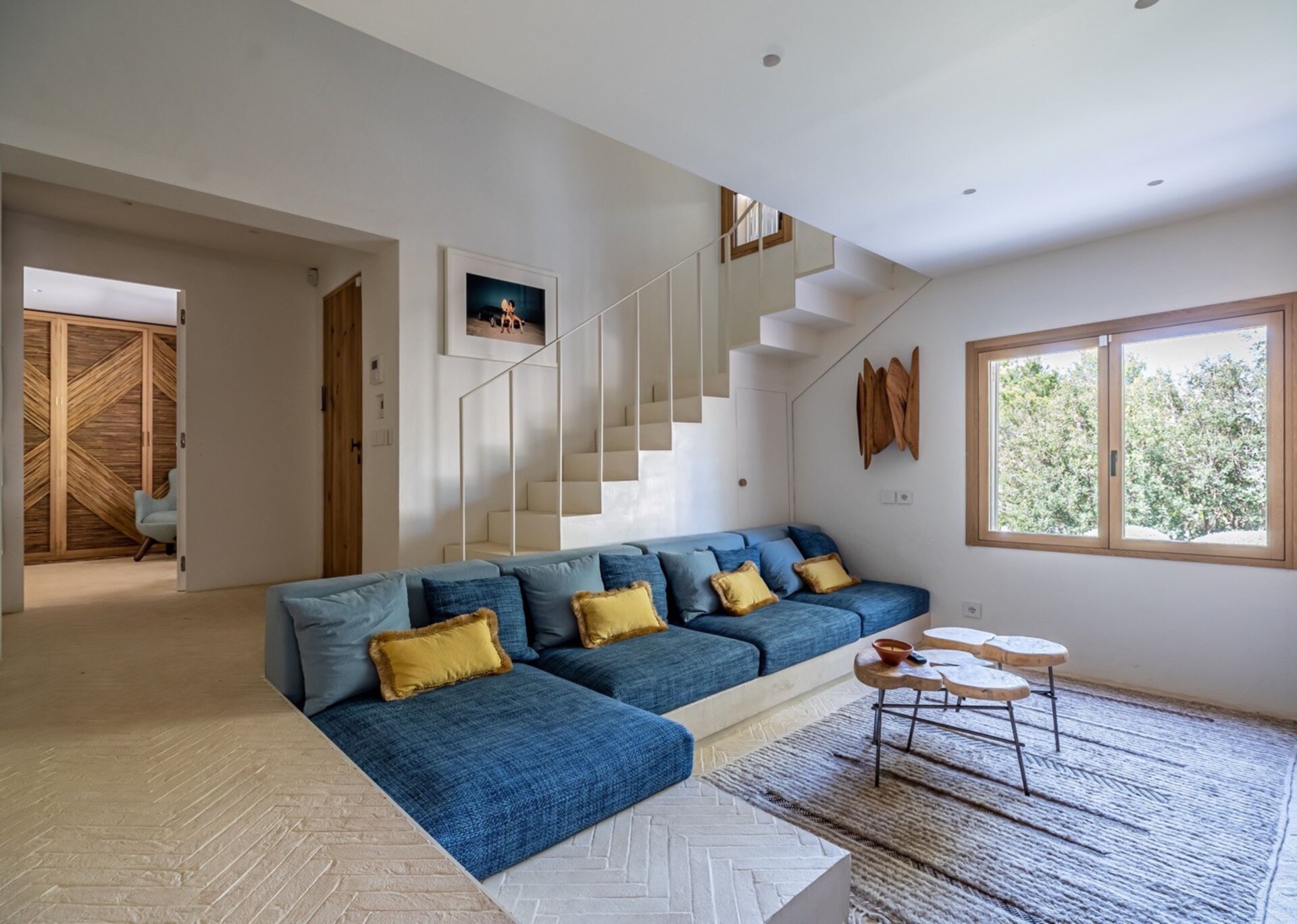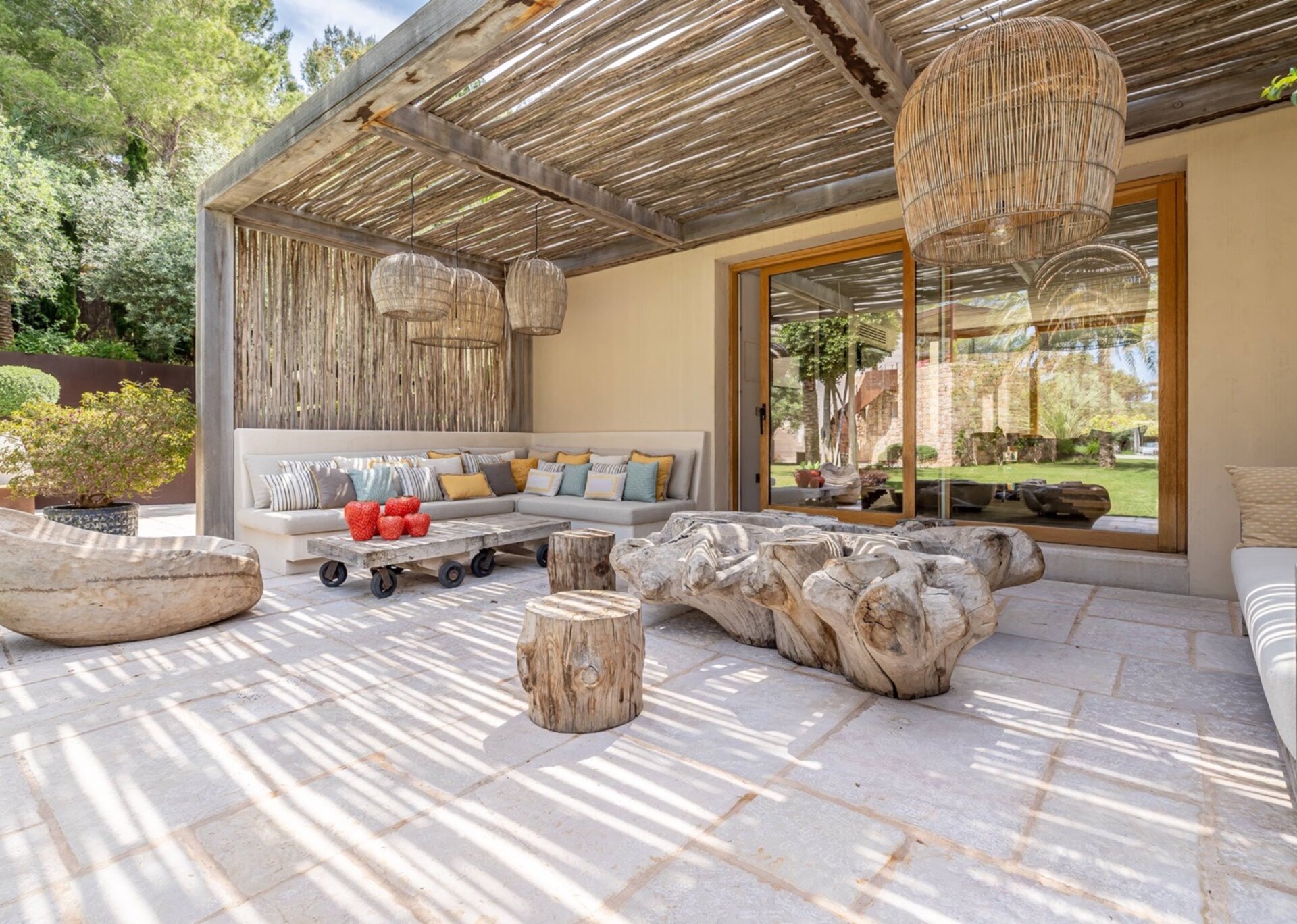 Villa Kylie, spread across a 4100m2 plot, comprises two houses encompassing a total of 600m2. The main house features five bedrooms, while a separate guest house offers four bedrooms. An additional bedroom is also available for staff. Recently renovated to the highest standards, the house exudes a tranquil elegance, with meticulous attention to natural materials and design.
