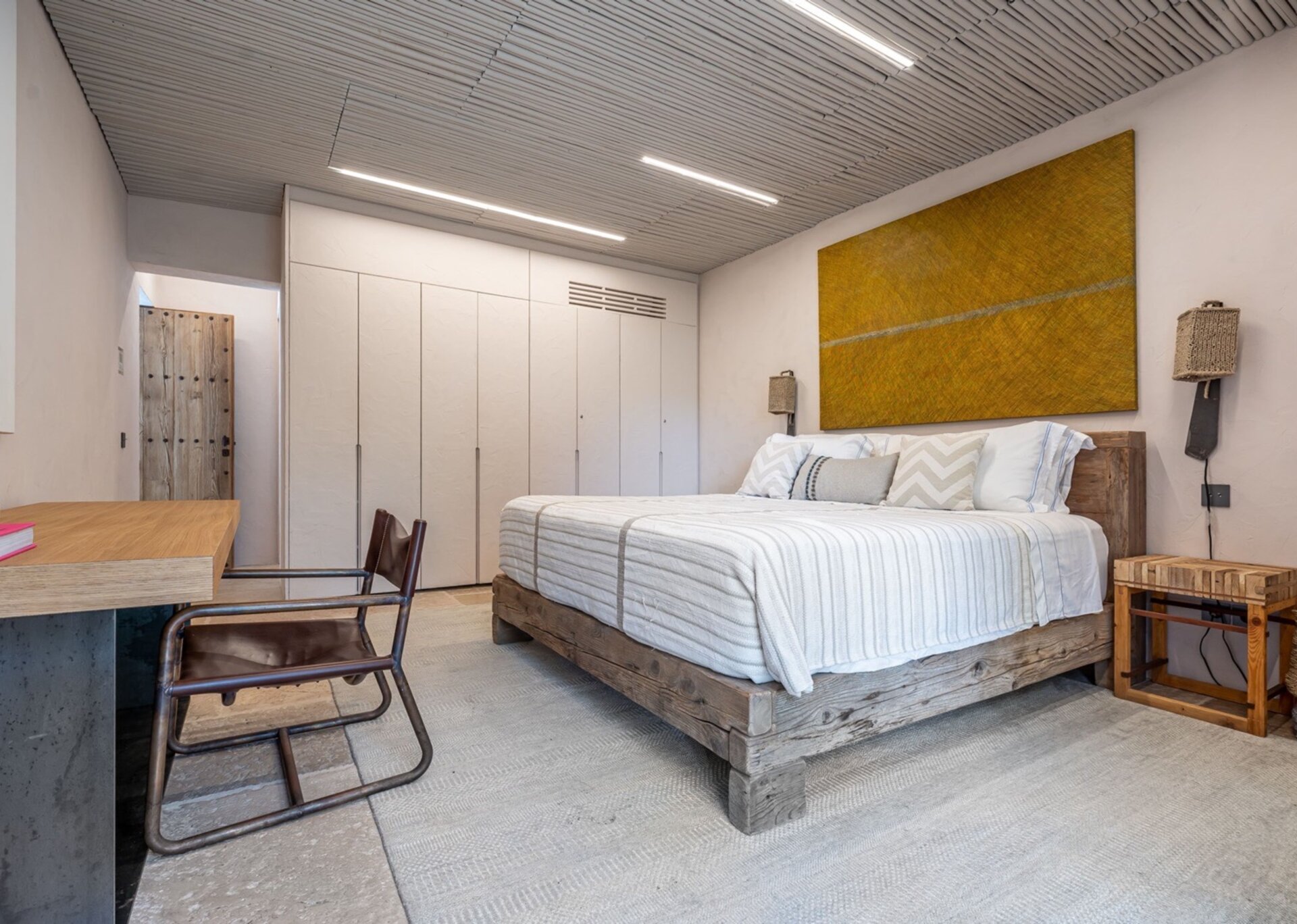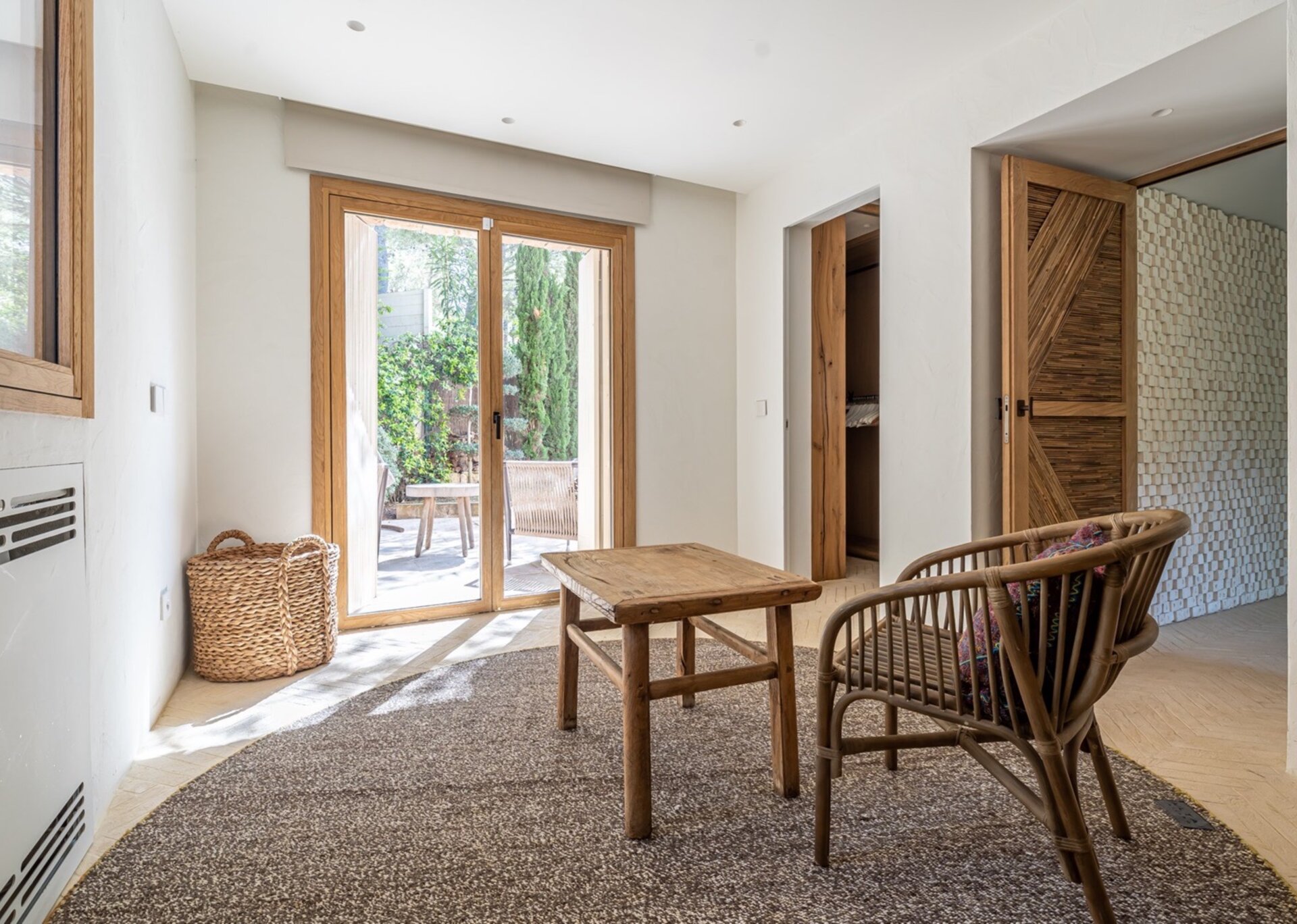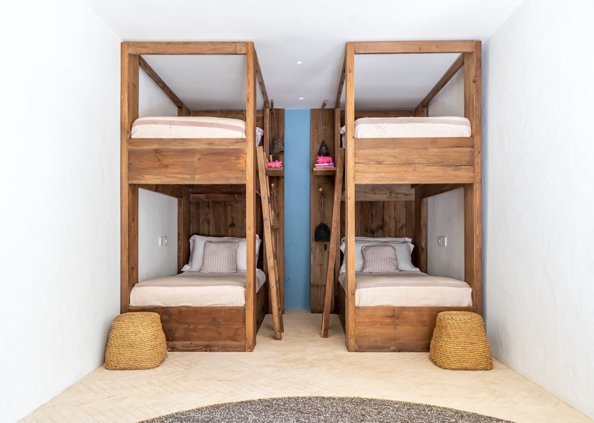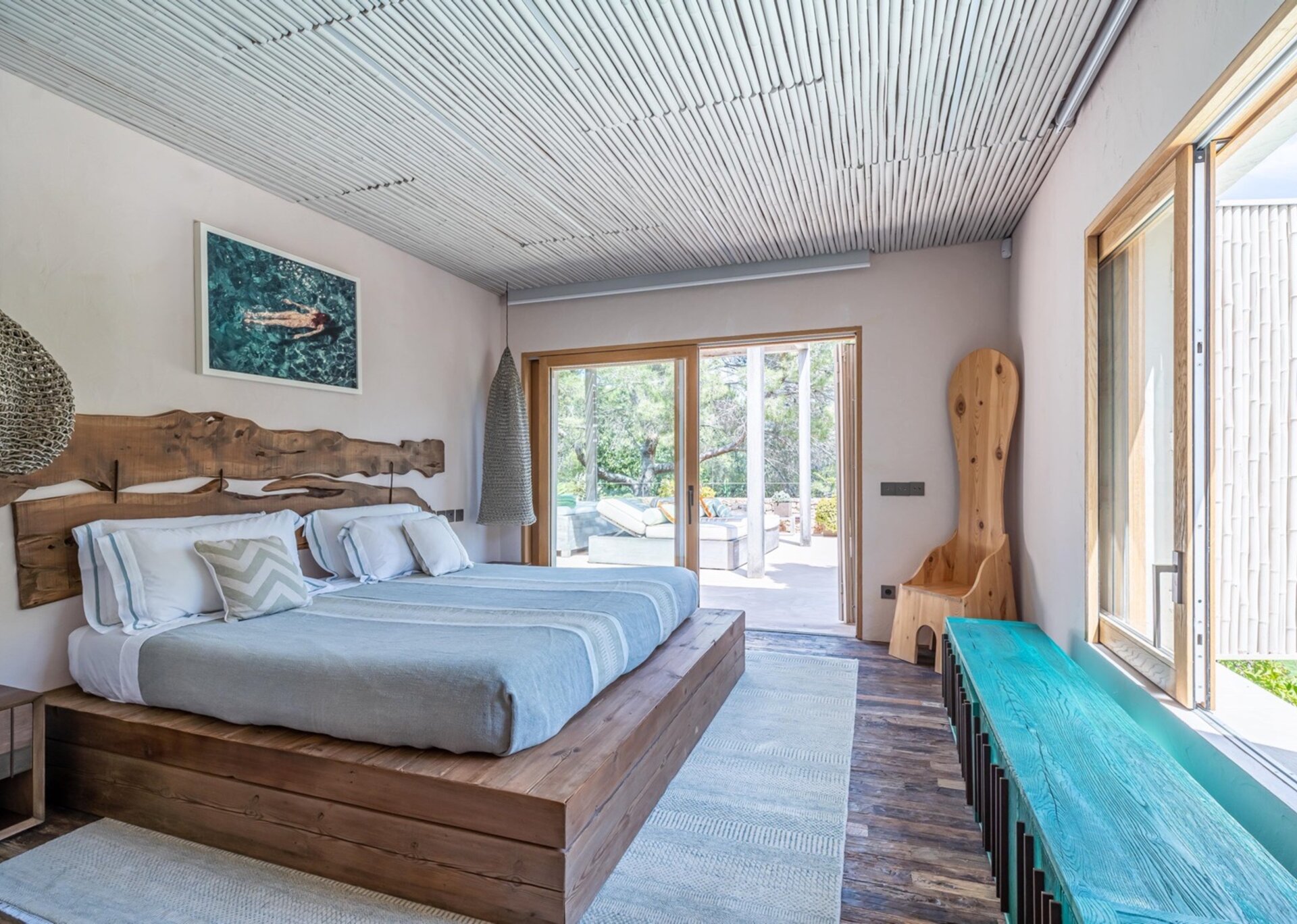 Villa Kylie, spread across a 4100m2 plot, comprises two houses encompassing a total of 600m2. The main house features five bedrooms, while a separate guest house offers four bedrooms. An additional bedroom is also available for staff. Recently renovated to the highest standards, the house exudes a tranquil elegance, with meticulous attention to natural materials and design.