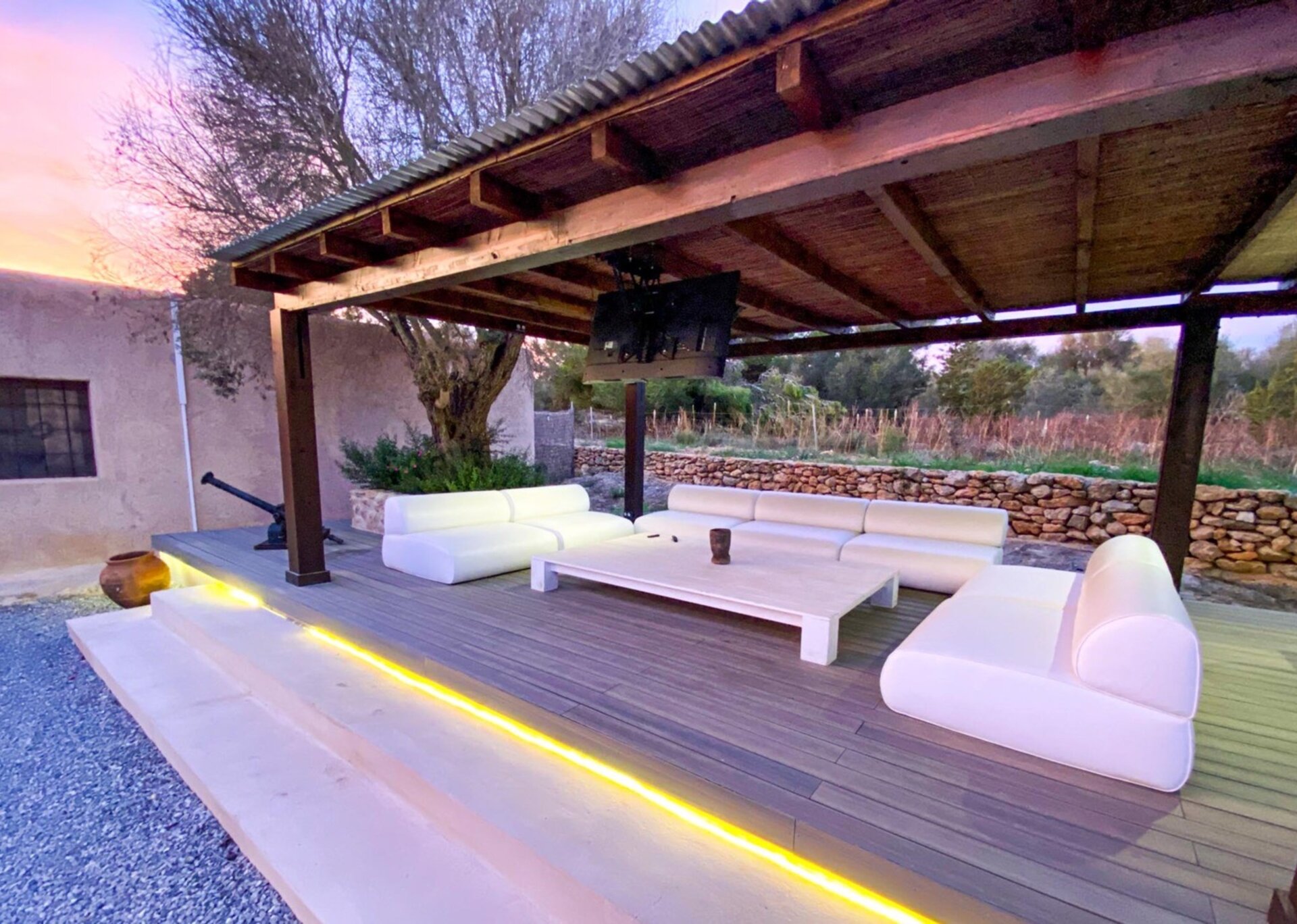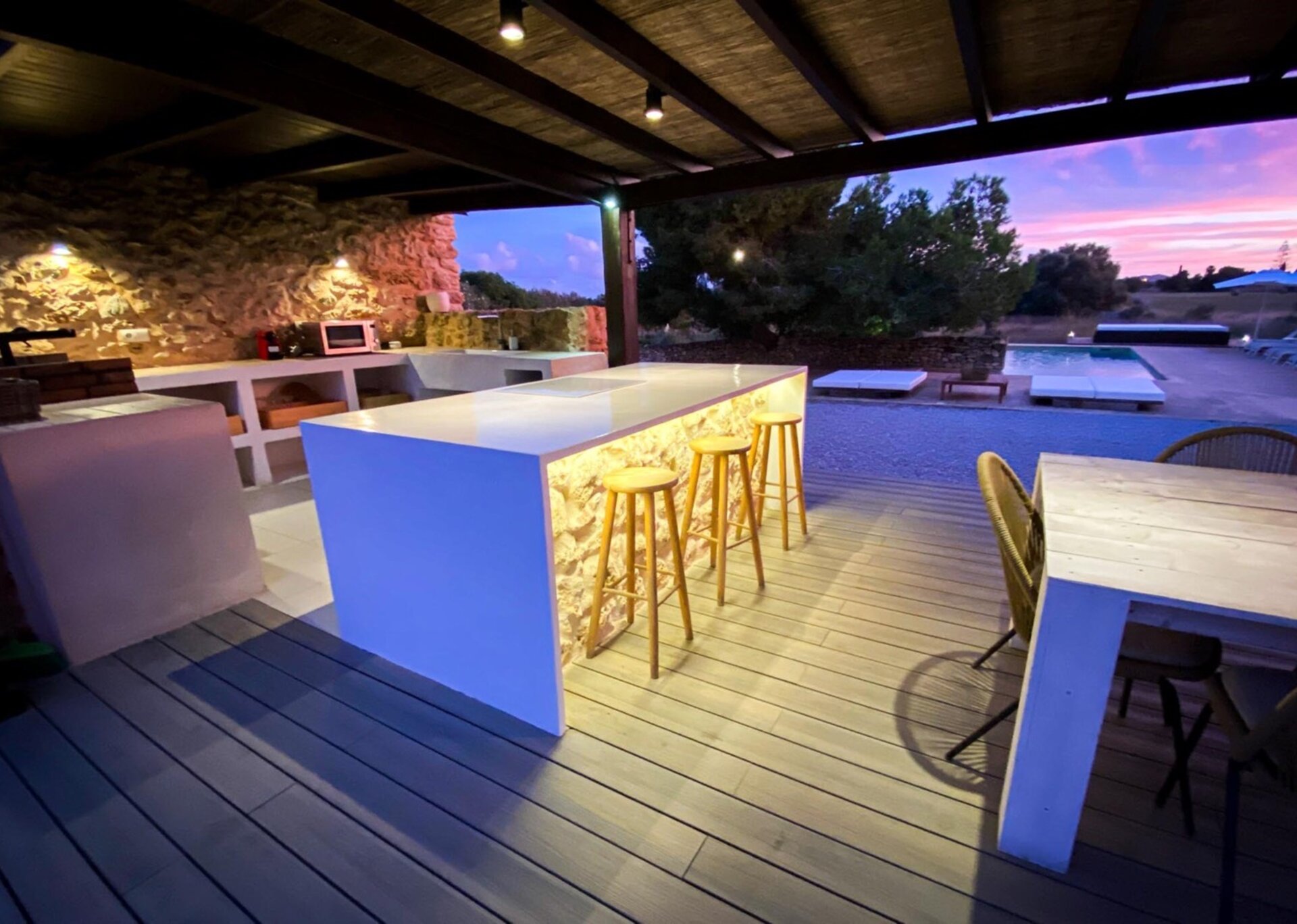 Villa Lance provides an abundance of outdoor entertainment areas, including a gazebo with a barbecue, shaded pergolas, and multiple dining zones. Not to mention the exquisite swimming pool that completes the ensemble. Perfect for accommodating large families or groups of friends, this villa exudes warmth and charm. Surrounded by vast expanses of agricultural land, it offers uninterrupted views of the majestic medieval fortress known as Dalt Villa.
