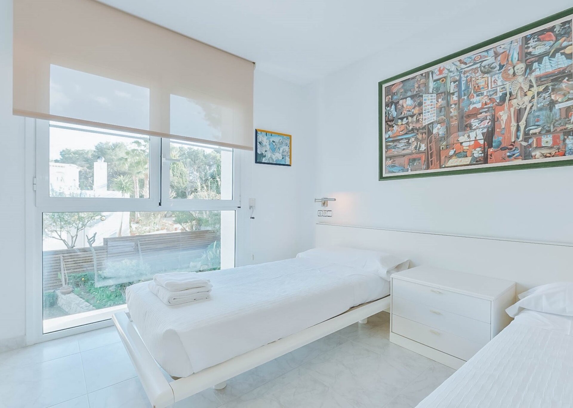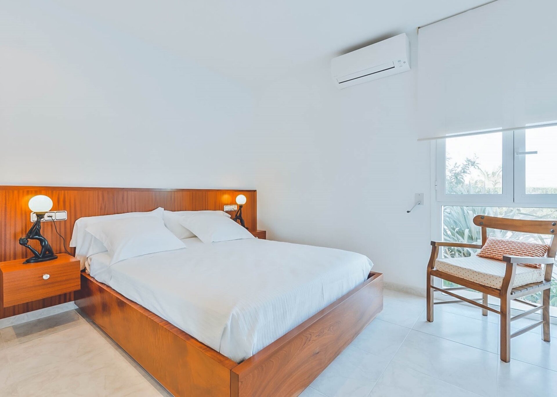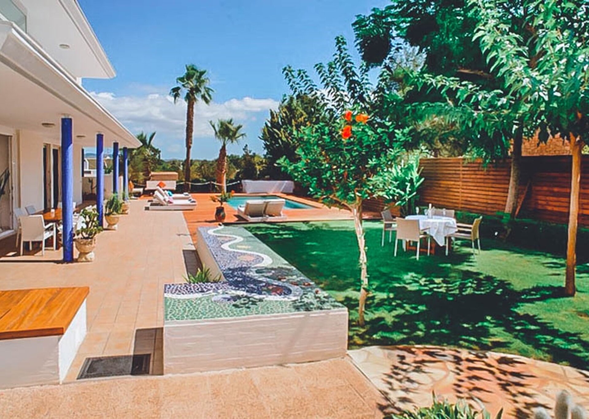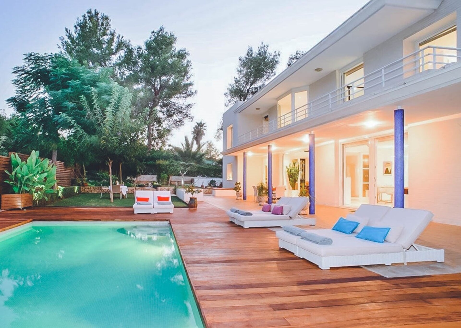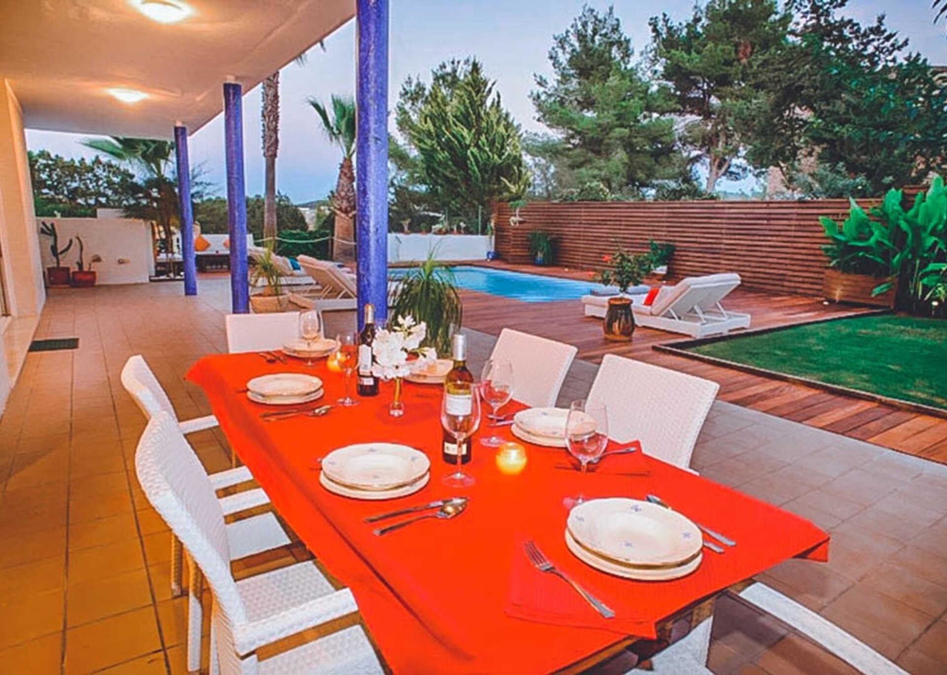 Villa Leonne is an exquisite 5-bedroom open plan villa nestled in Cala de Bou, in the serene bay of San Antonio. This family-friendly area offers convenient access to the island's renowned sunset beaches, including Cala Tarida and Cala Conte, as well as the vibrant amenities of bustling San Antonio.