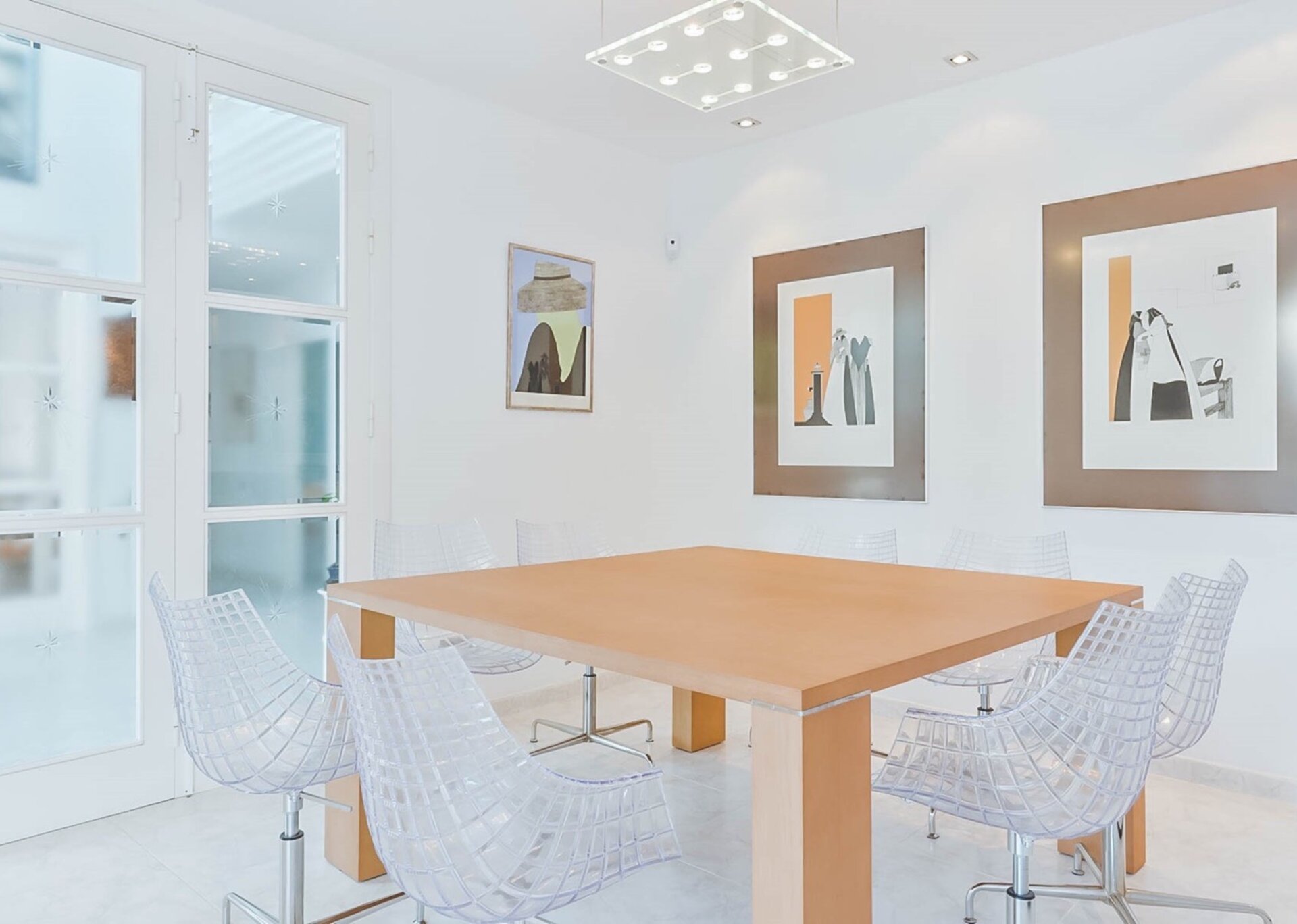 The main living room gracefully opens onto a spacious decked terrace and lush garden area. An expansive dining table awaits al fresco indulgence, while the outdoor pool offers a mesmerizing vista of the surrounding countryside. Bespoke chill-out zones, fully furnished to the highest standards, beckon you to unwind and relax. Villa Leonne truly epitomizes the ideal family haven on Ibiza's sought-after west coast..