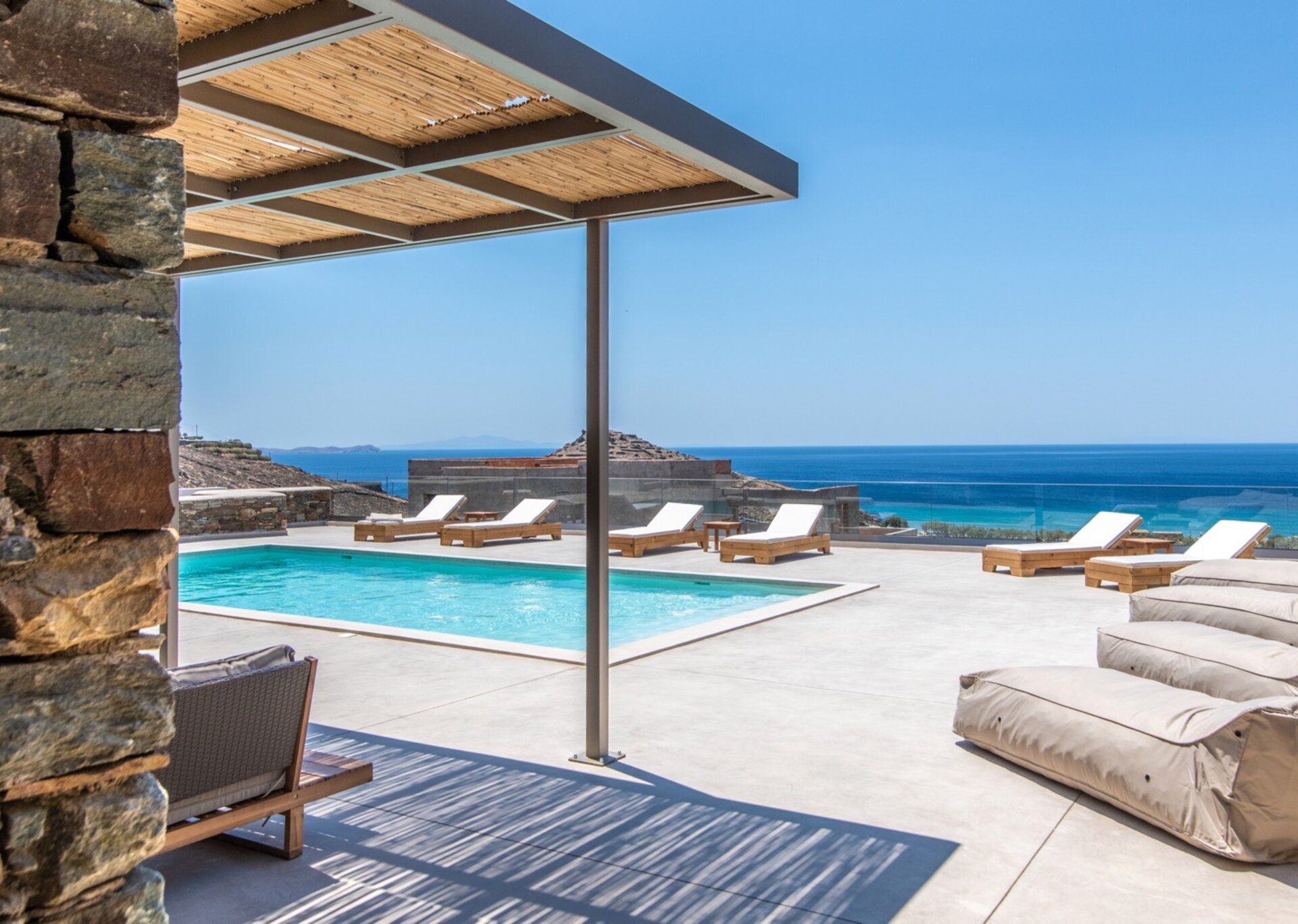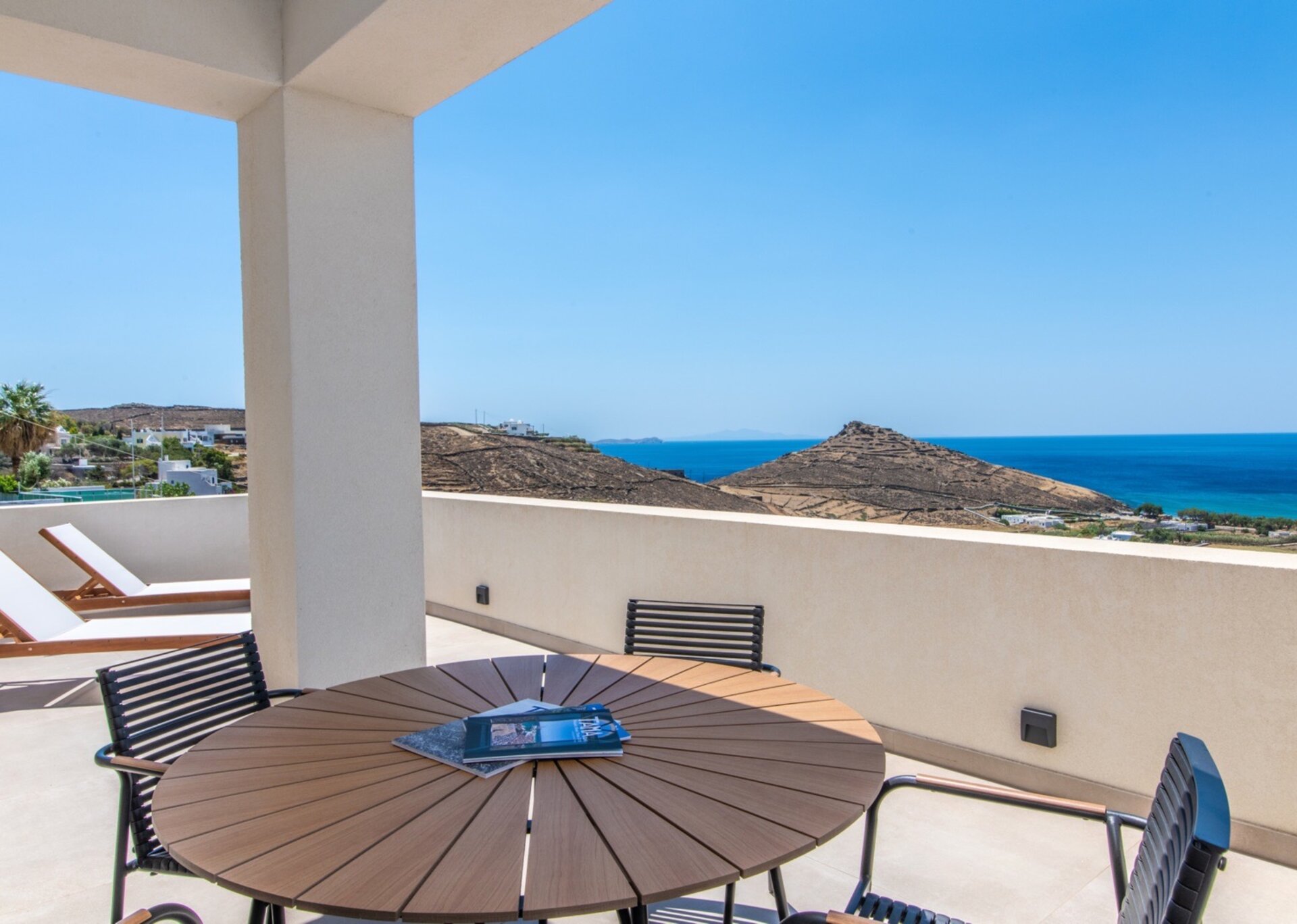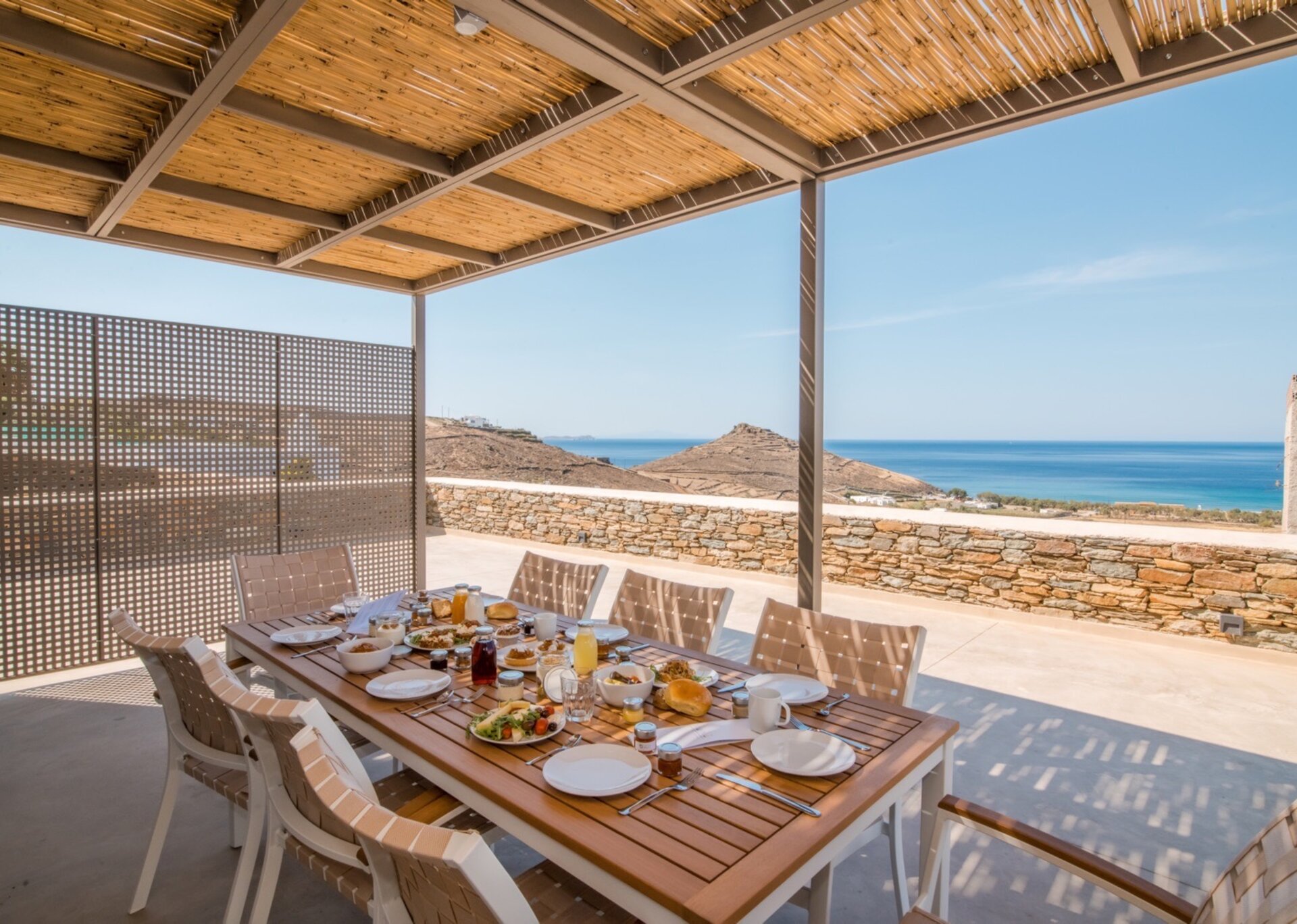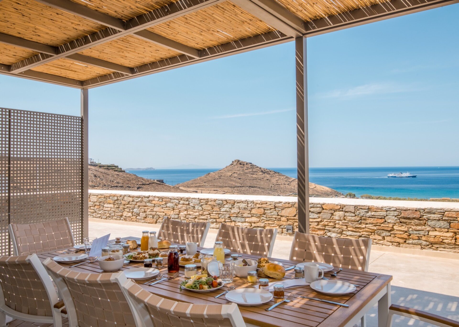 The outdoor spaces are equally captivating, offering panoramic views of the rugged coastline and the shimmering Aegean from every vantage point. Here, luxury meets nature, providing an unparalleled sense of freedom and tranquility.