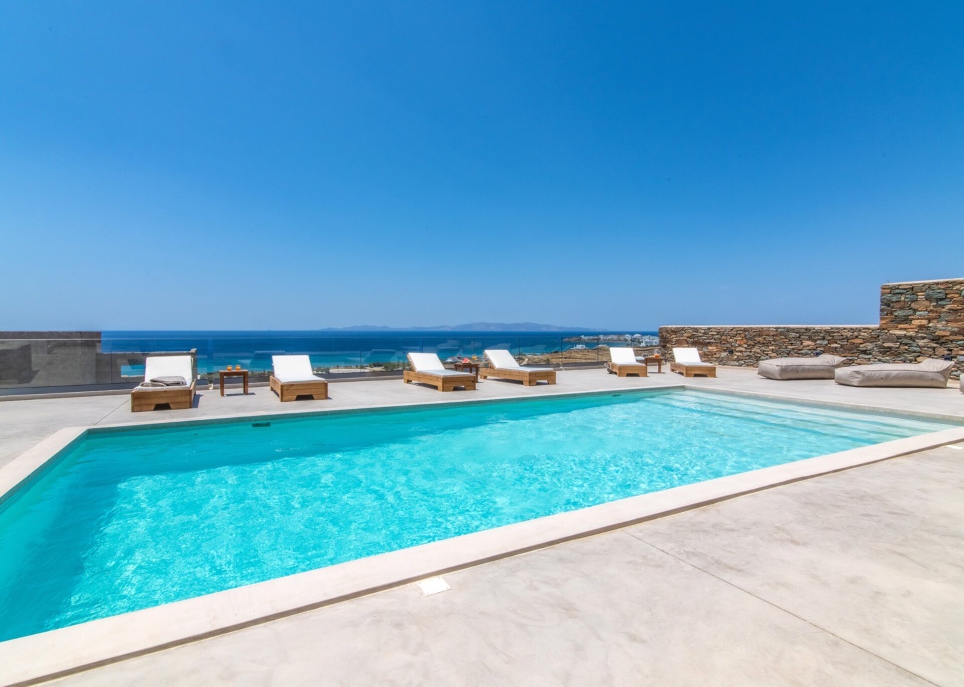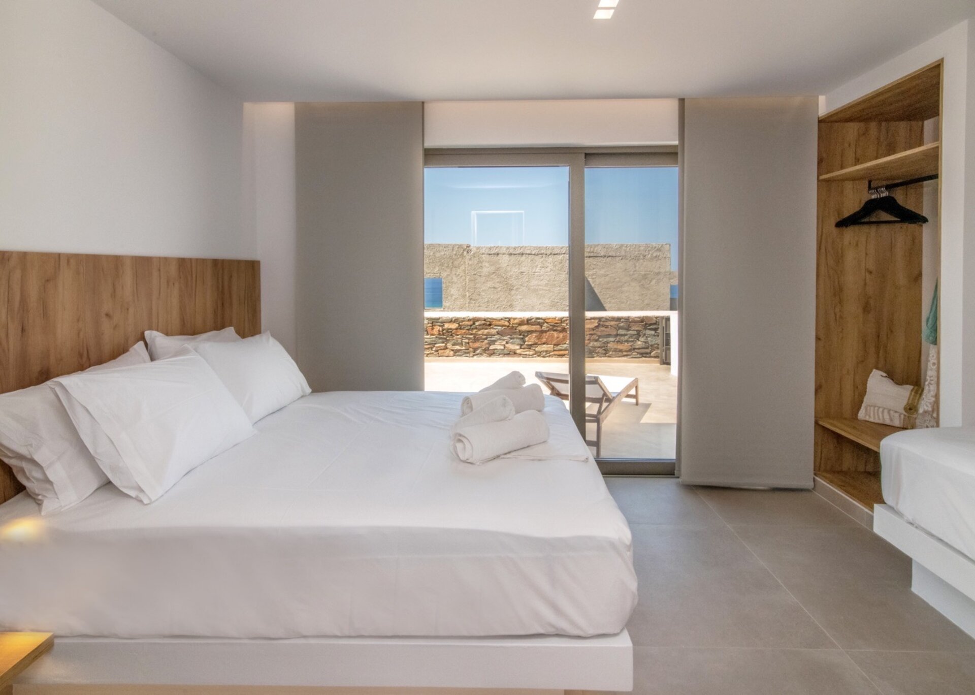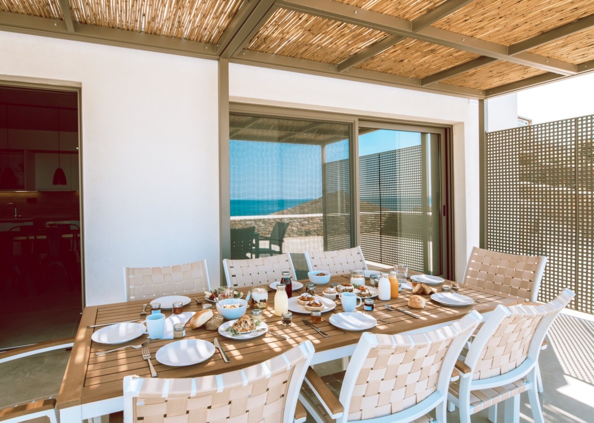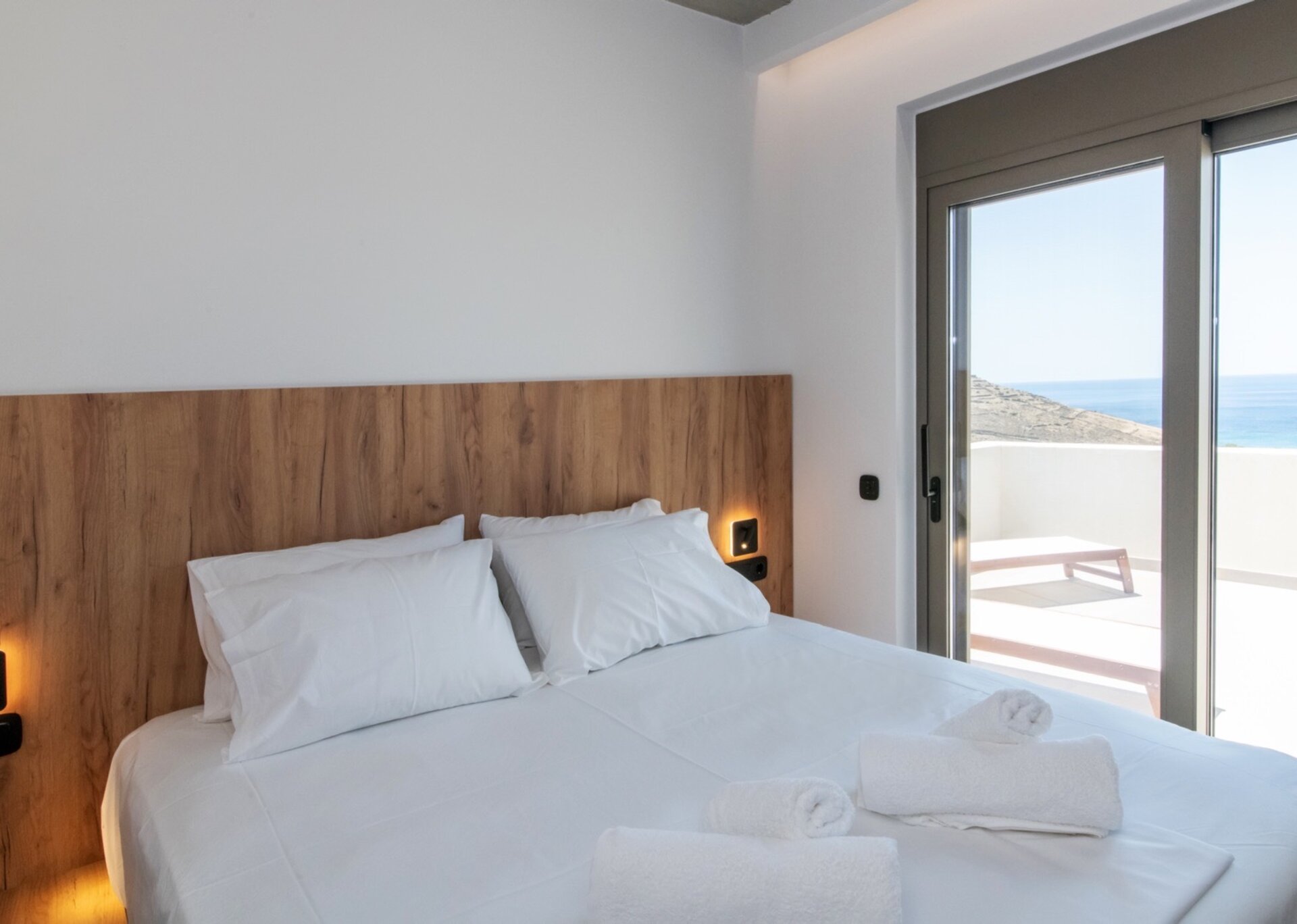 The outdoor spaces are equally captivating, offering panoramic views of the rugged coastline and the shimmering Aegean from every vantage point. Here, luxury meets nature, providing an unparalleled sense of freedom and tranquility.