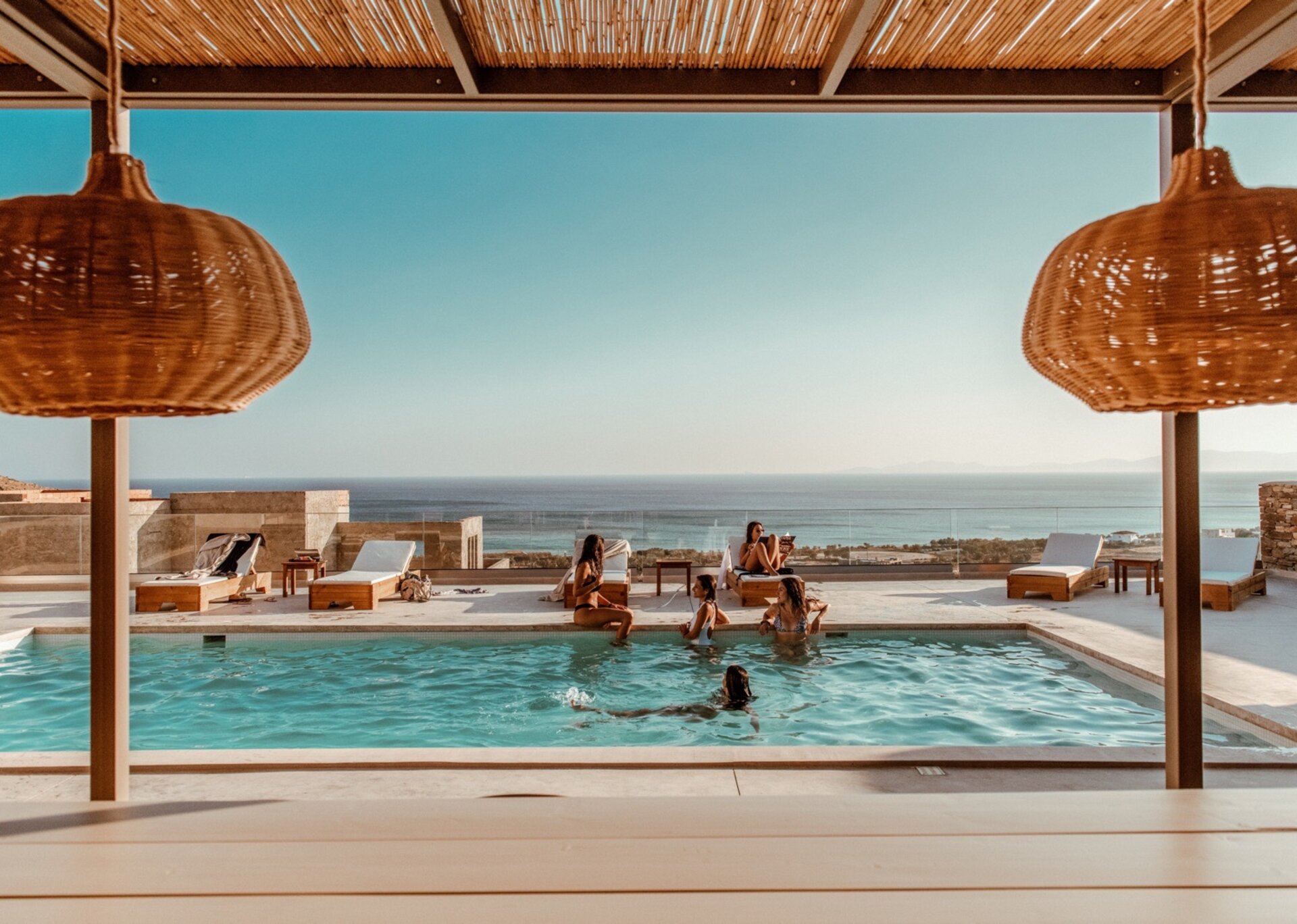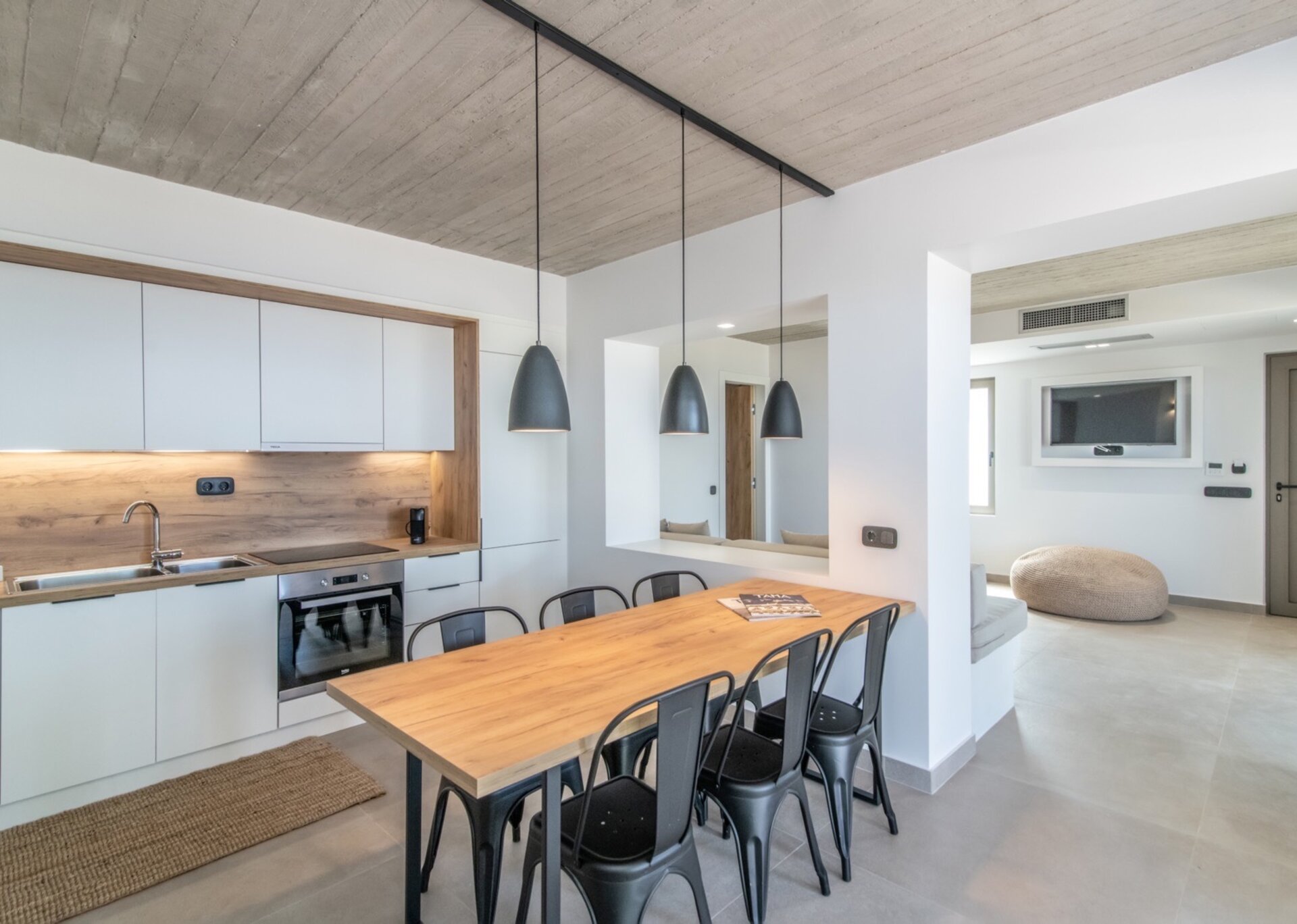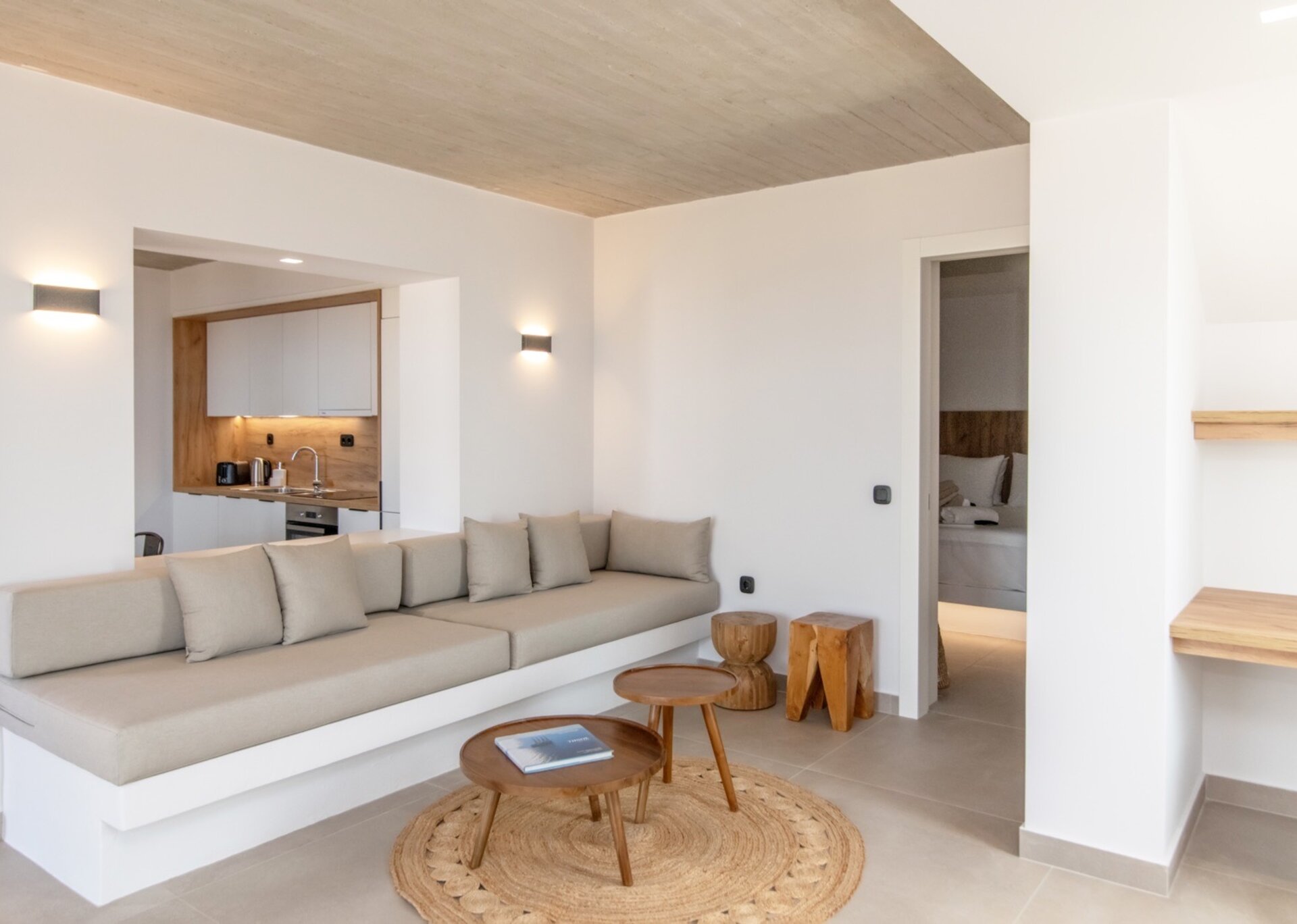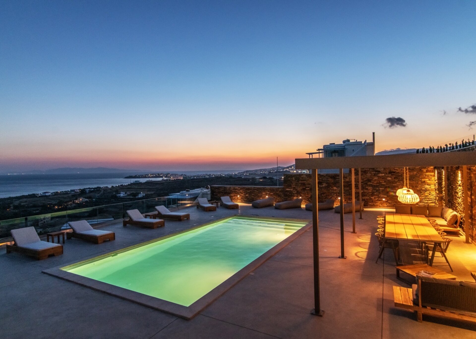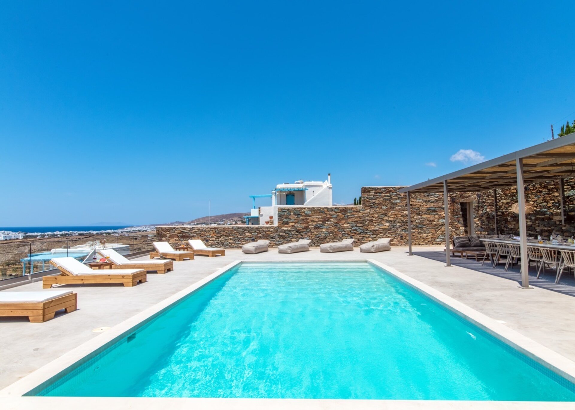 The outdoor spaces are equally captivating, offering panoramic views of the rugged coastline and the shimmering Aegean from every vantage point. Here, luxury meets nature, providing an unparalleled sense of freedom and tranquility.