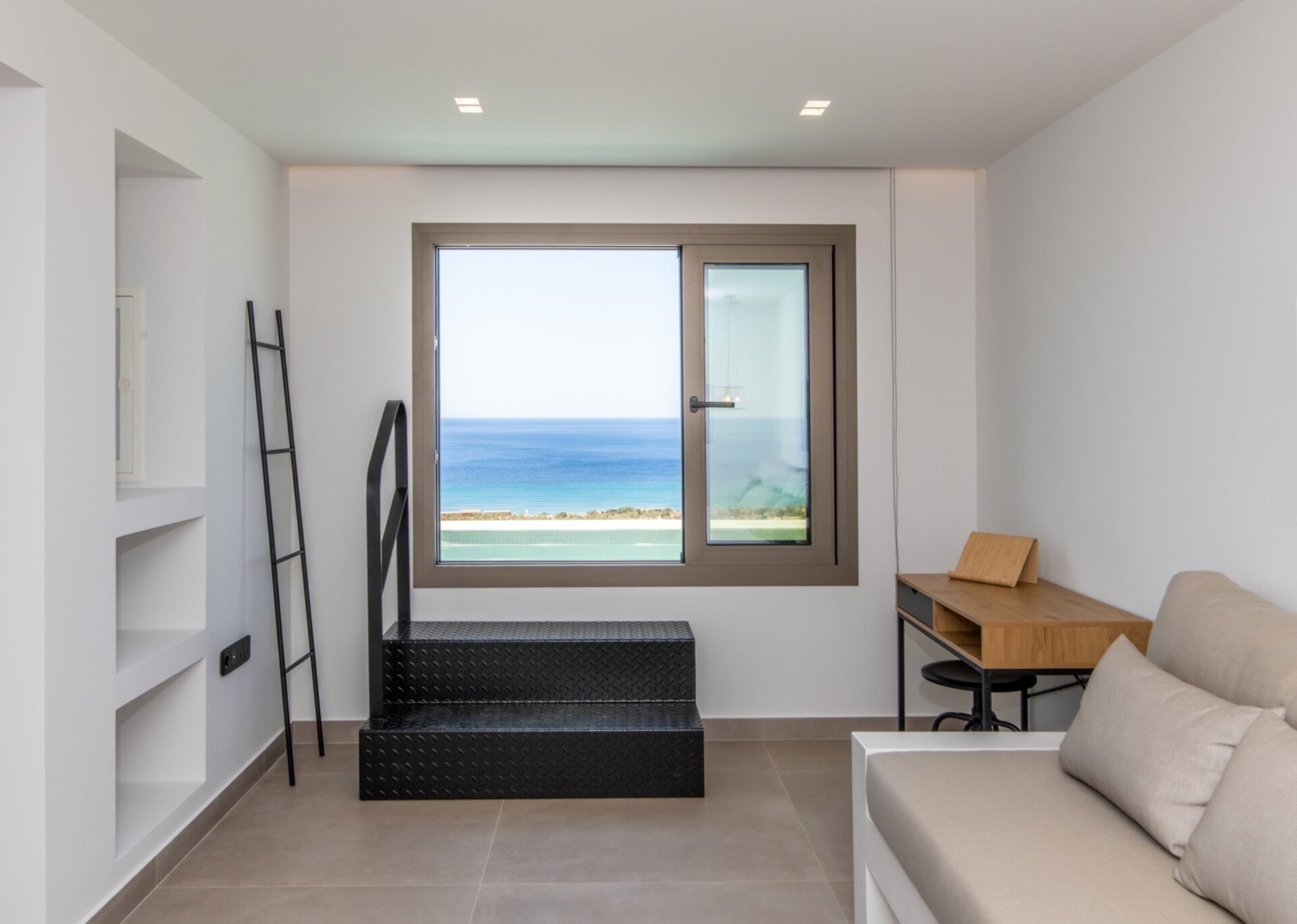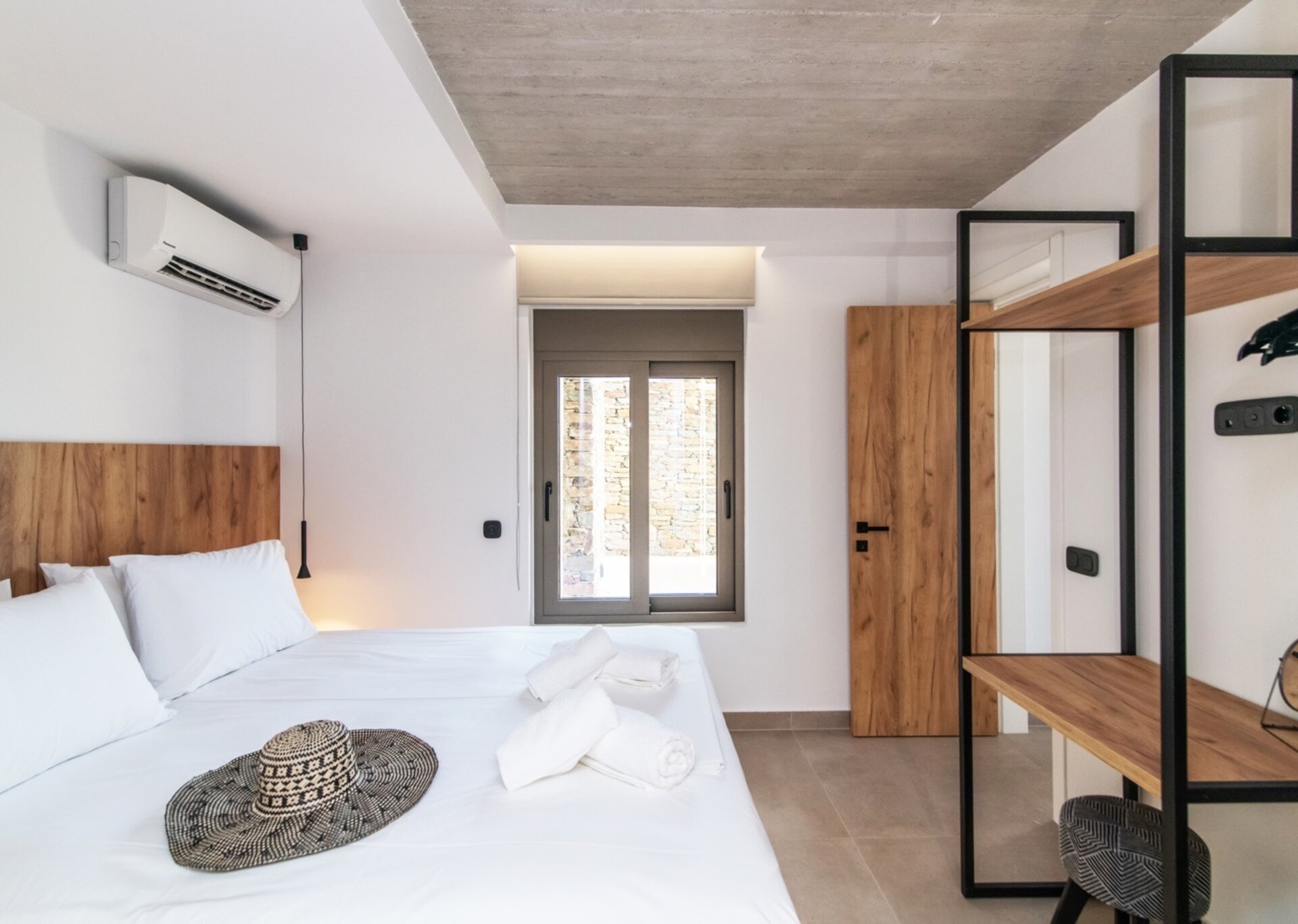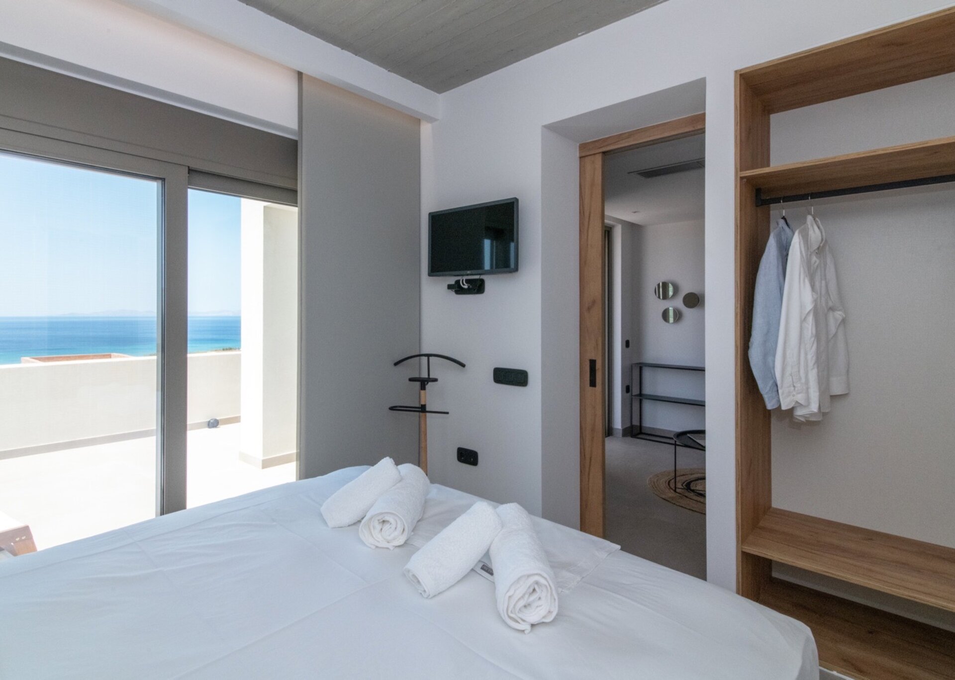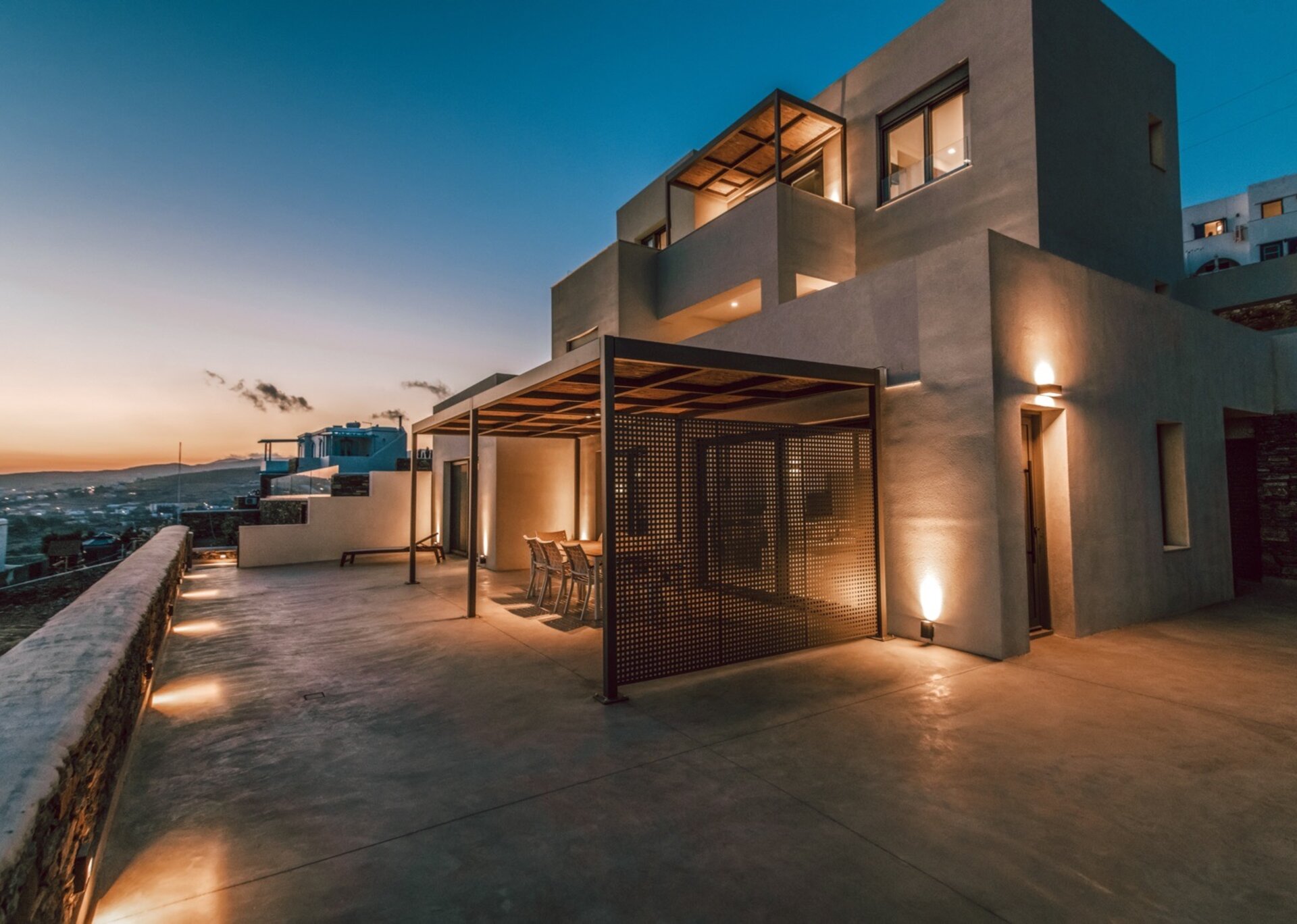 The outdoor spaces are equally captivating, offering panoramic views of the rugged coastline and the shimmering Aegean from every vantage point. Here, luxury meets nature, providing an unparalleled sense of freedom and tranquility.