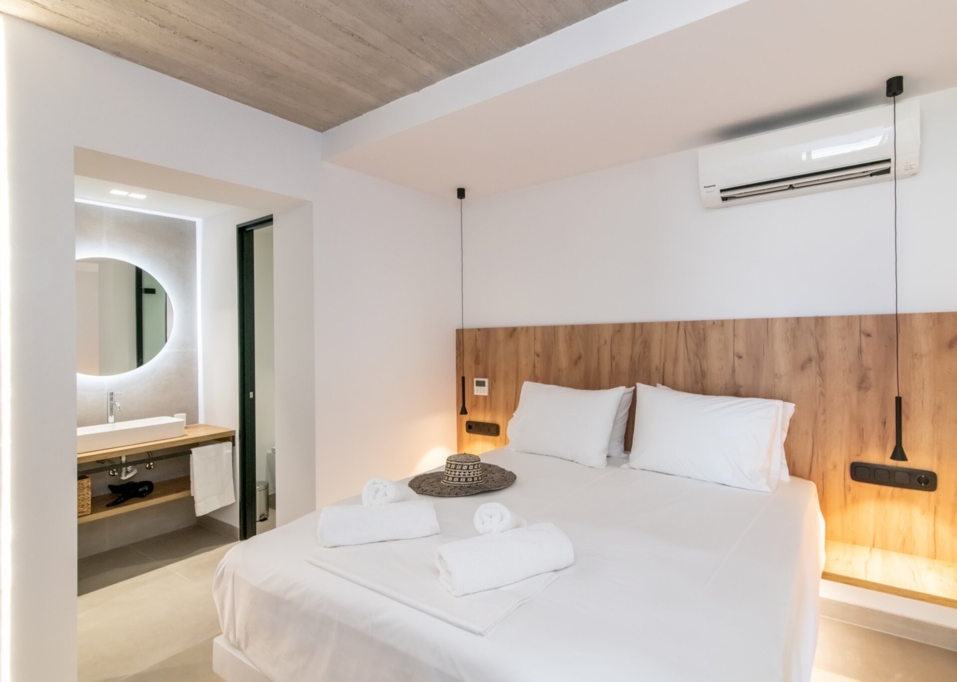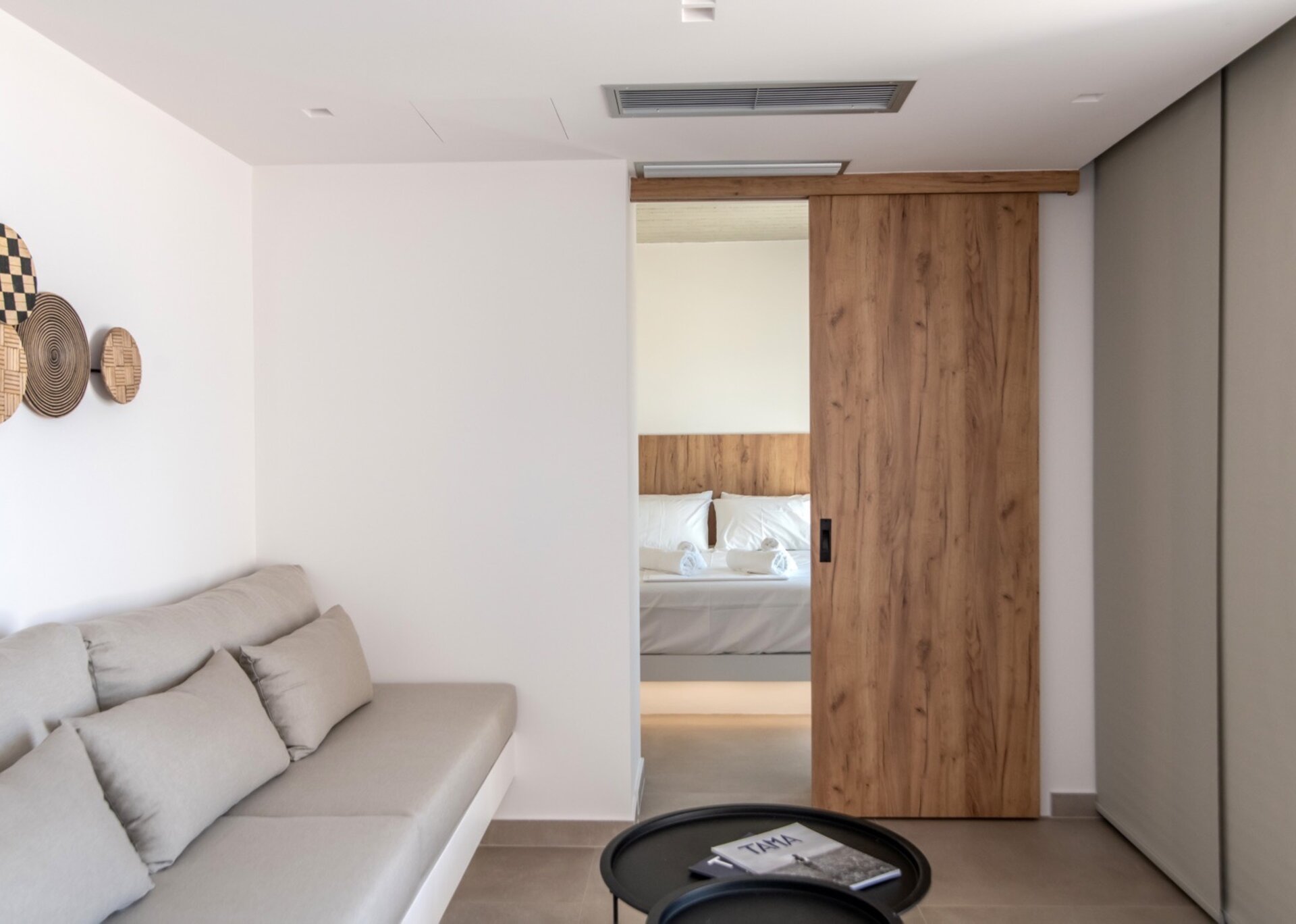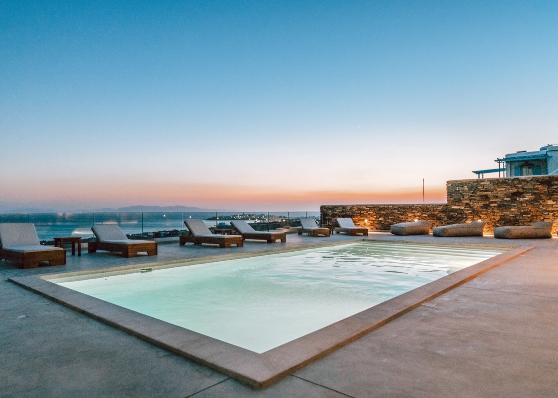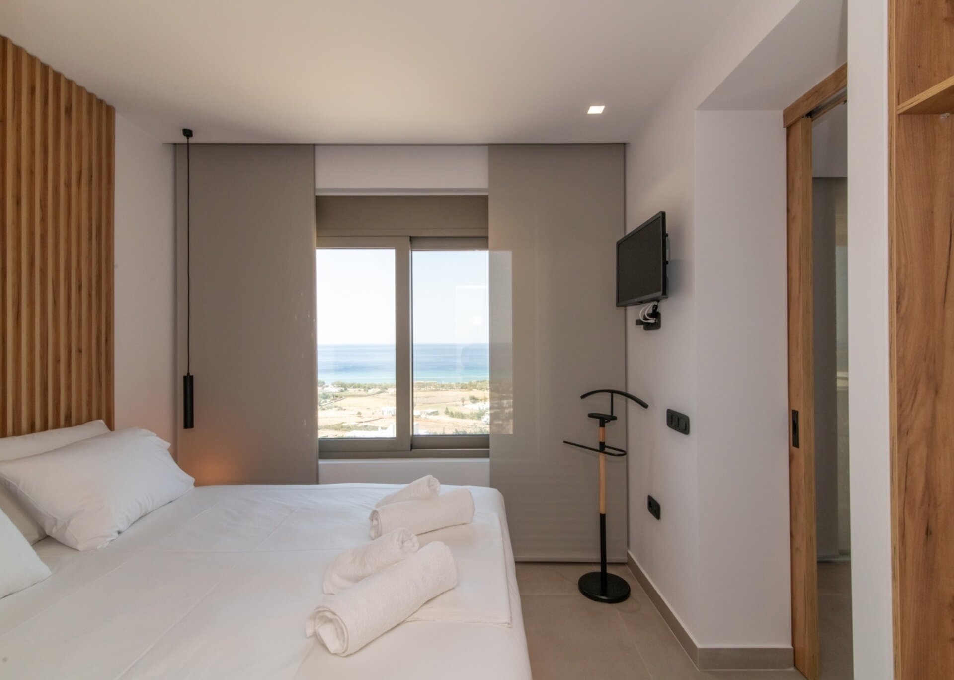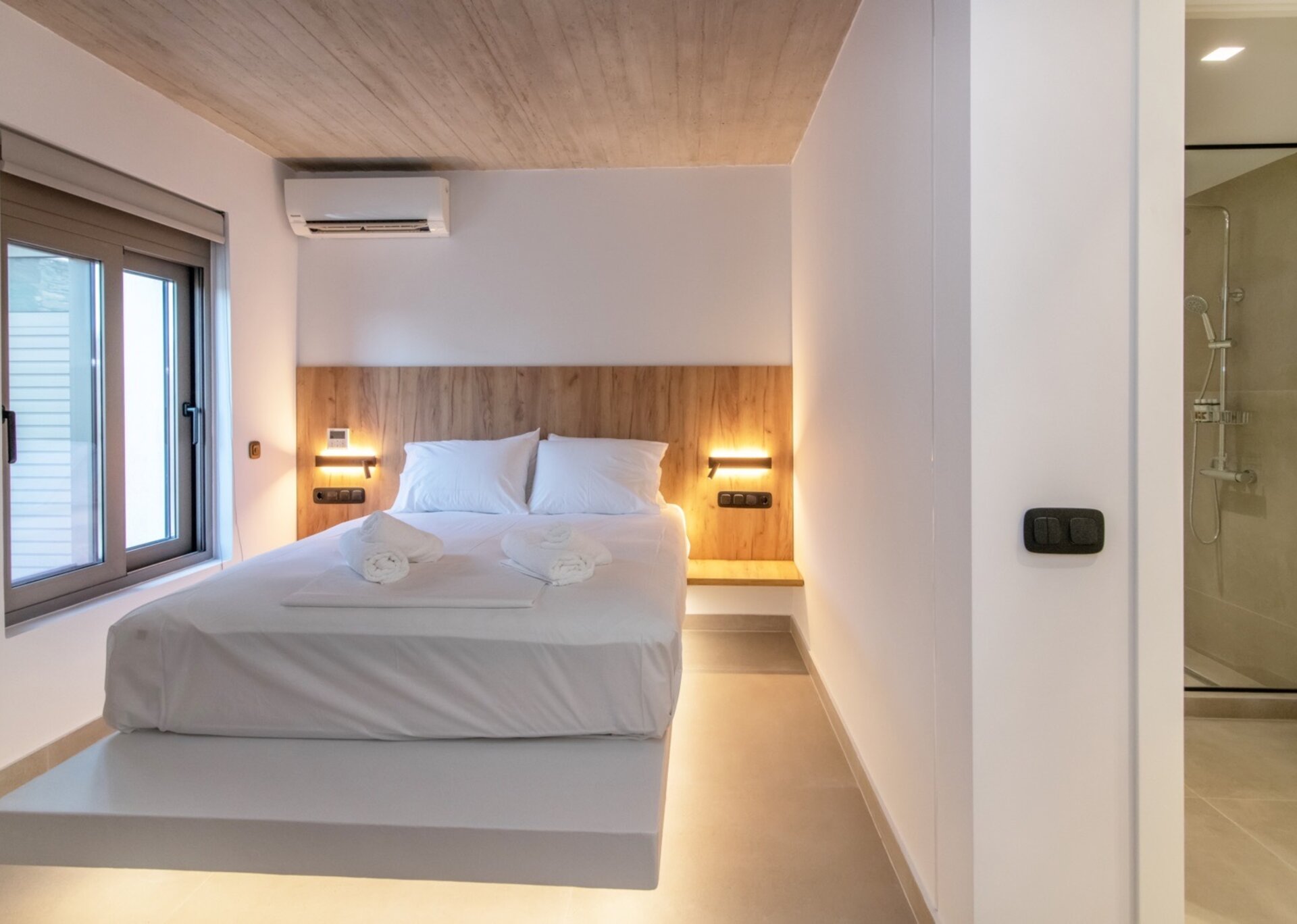 The outdoor spaces are equally captivating, offering panoramic views of the rugged coastline and the shimmering Aegean from every vantage point. Here, luxury meets nature, providing an unparalleled sense of freedom and tranquility.