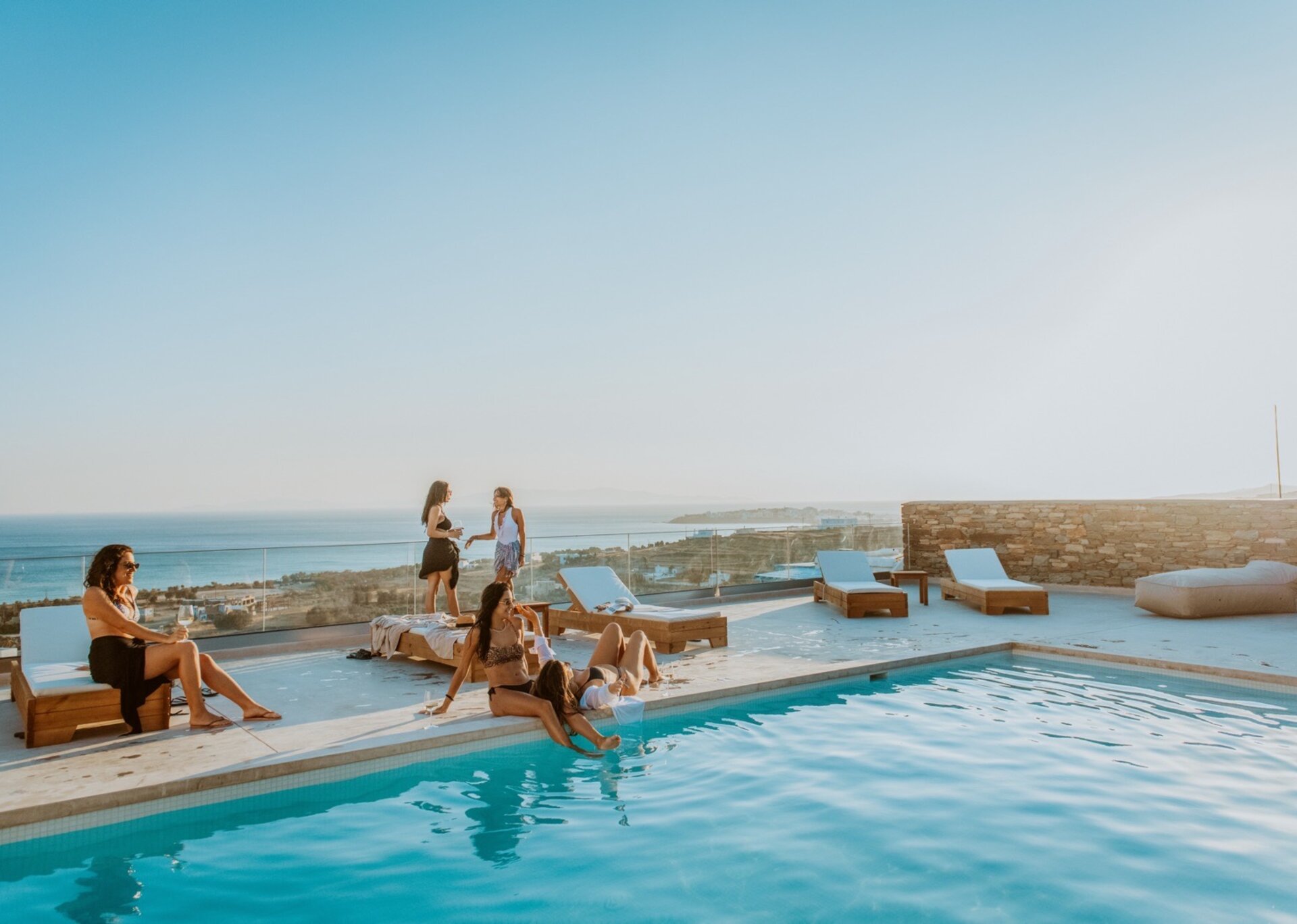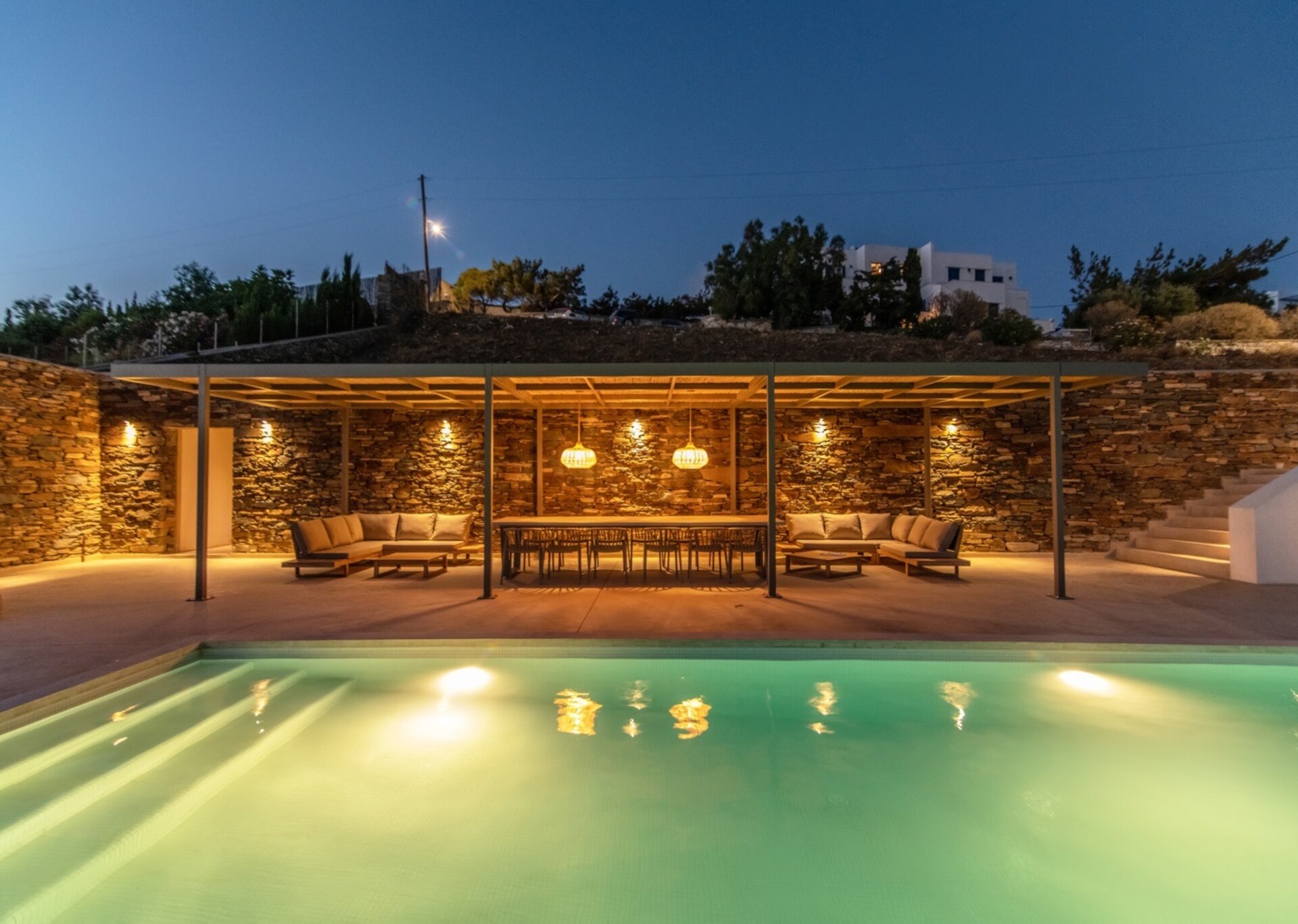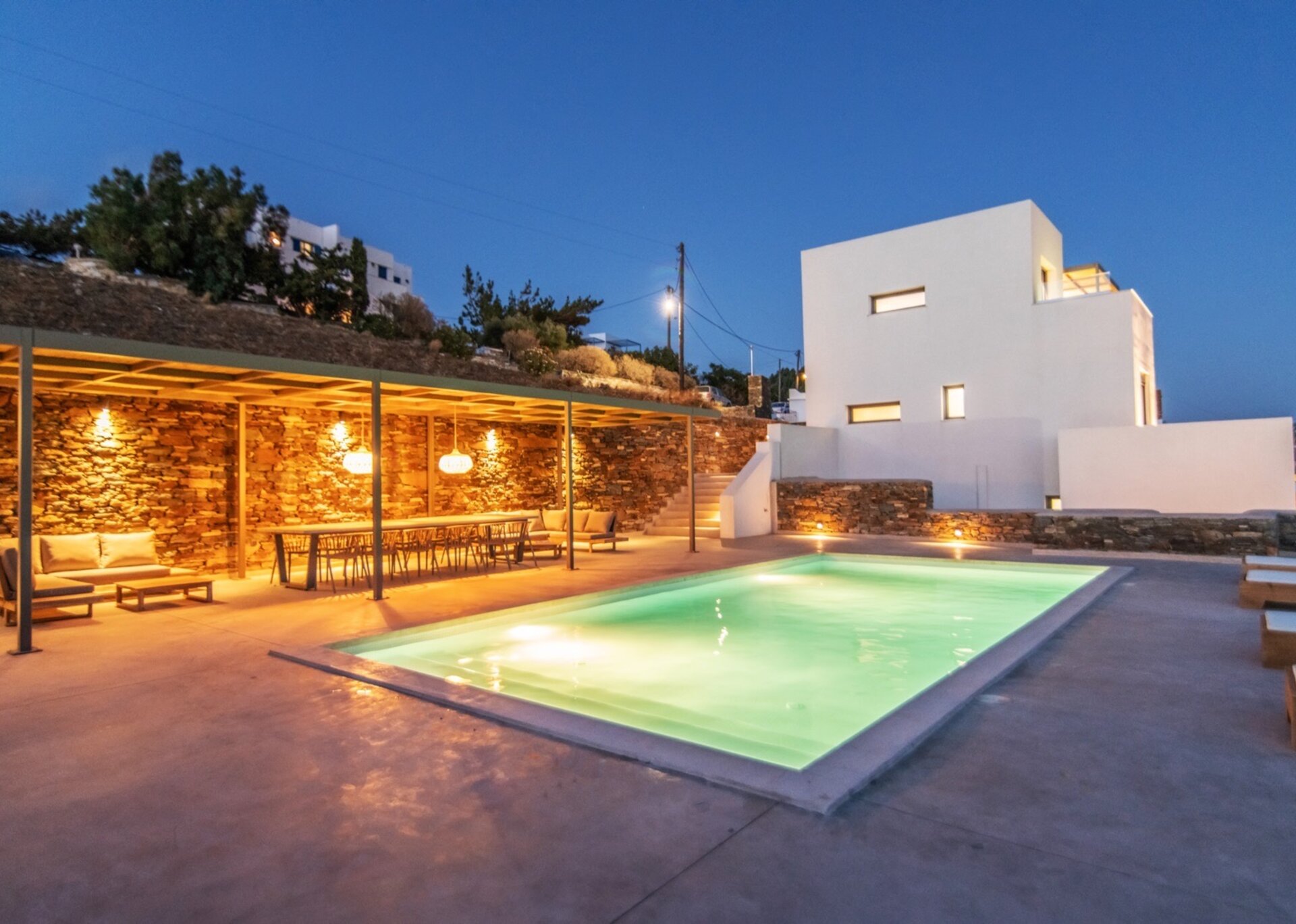 Perched in the tranquil coastal area of Agios Fokas, Villa Leonie is the ultimate summer retreat for large groups of friends or families. Overlooking the breathtaking Aegean Sea, this villa combines modern elegance with minimalist design, offering an unforgettable escape.