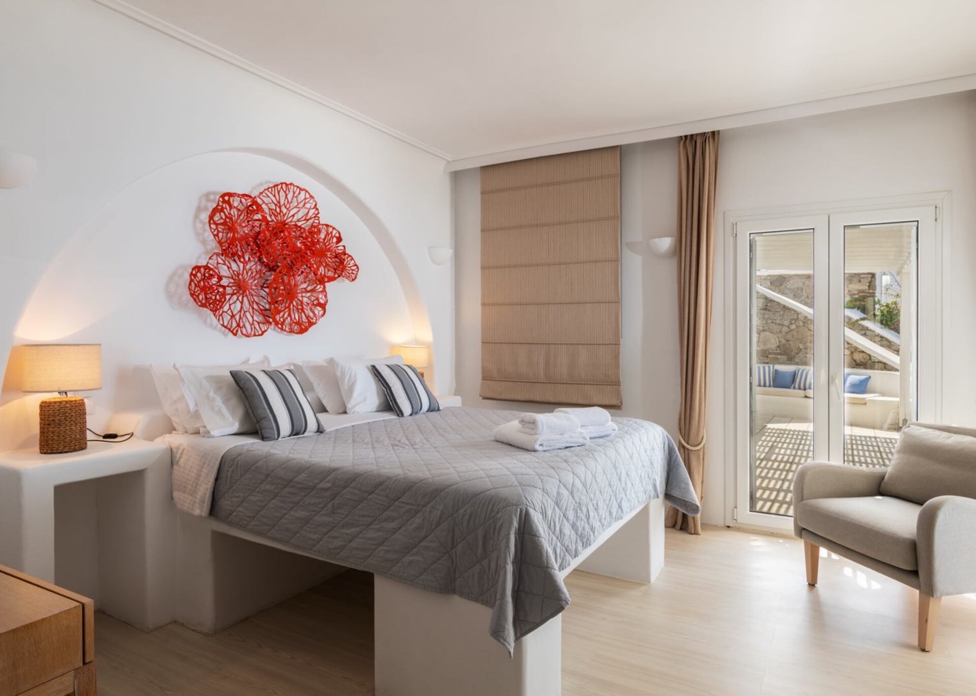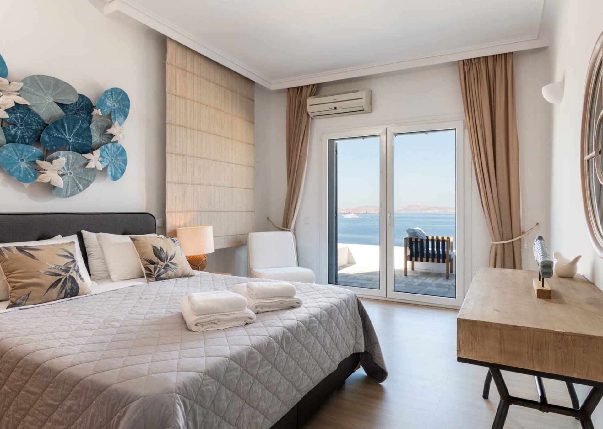 Villa Leticia is one of the top luxurious and comfortable villas in the island of Mykonos. The villa is located in Aleomandra facing the deep blue waters of the Aegean sea, the historical island of Delos and its colorful sunsets. The villa is impeccably designed to combine modern style with traditional Mykonian architecture.