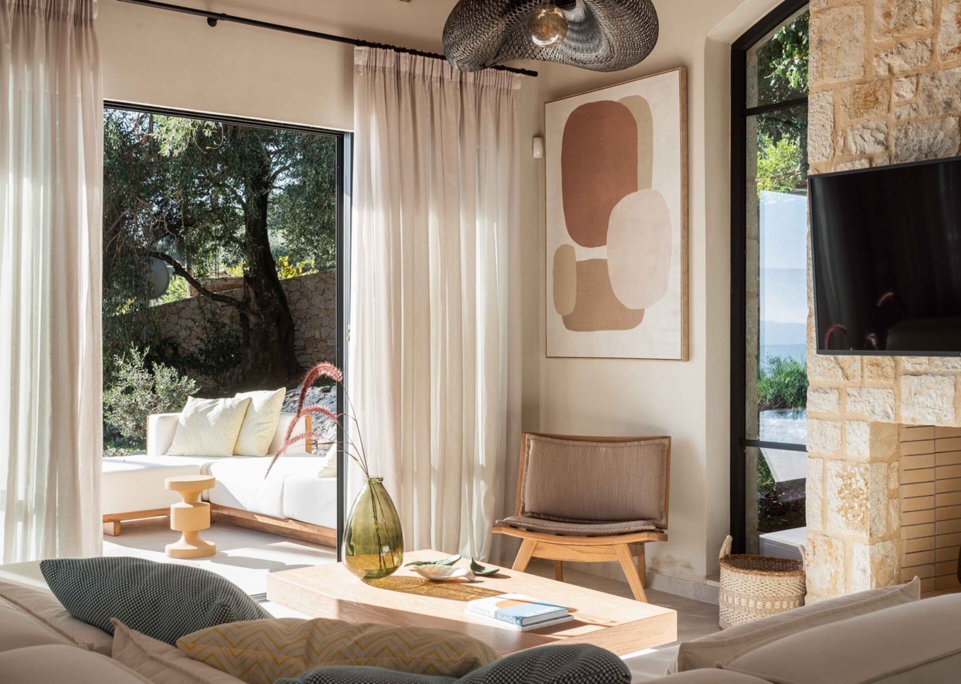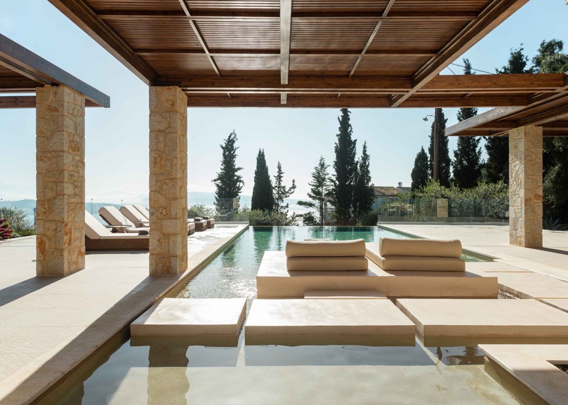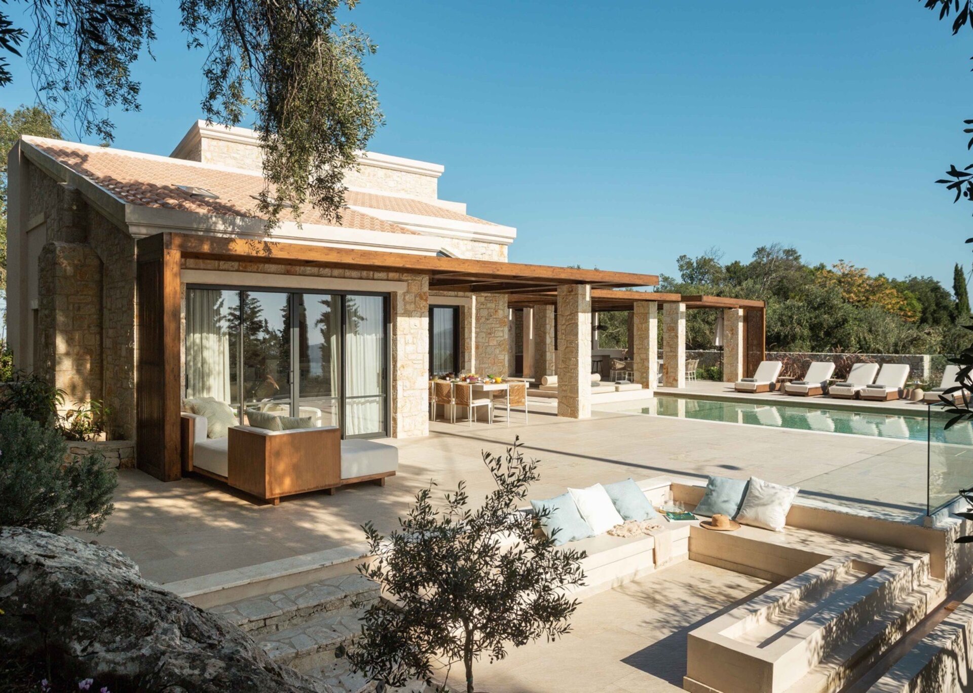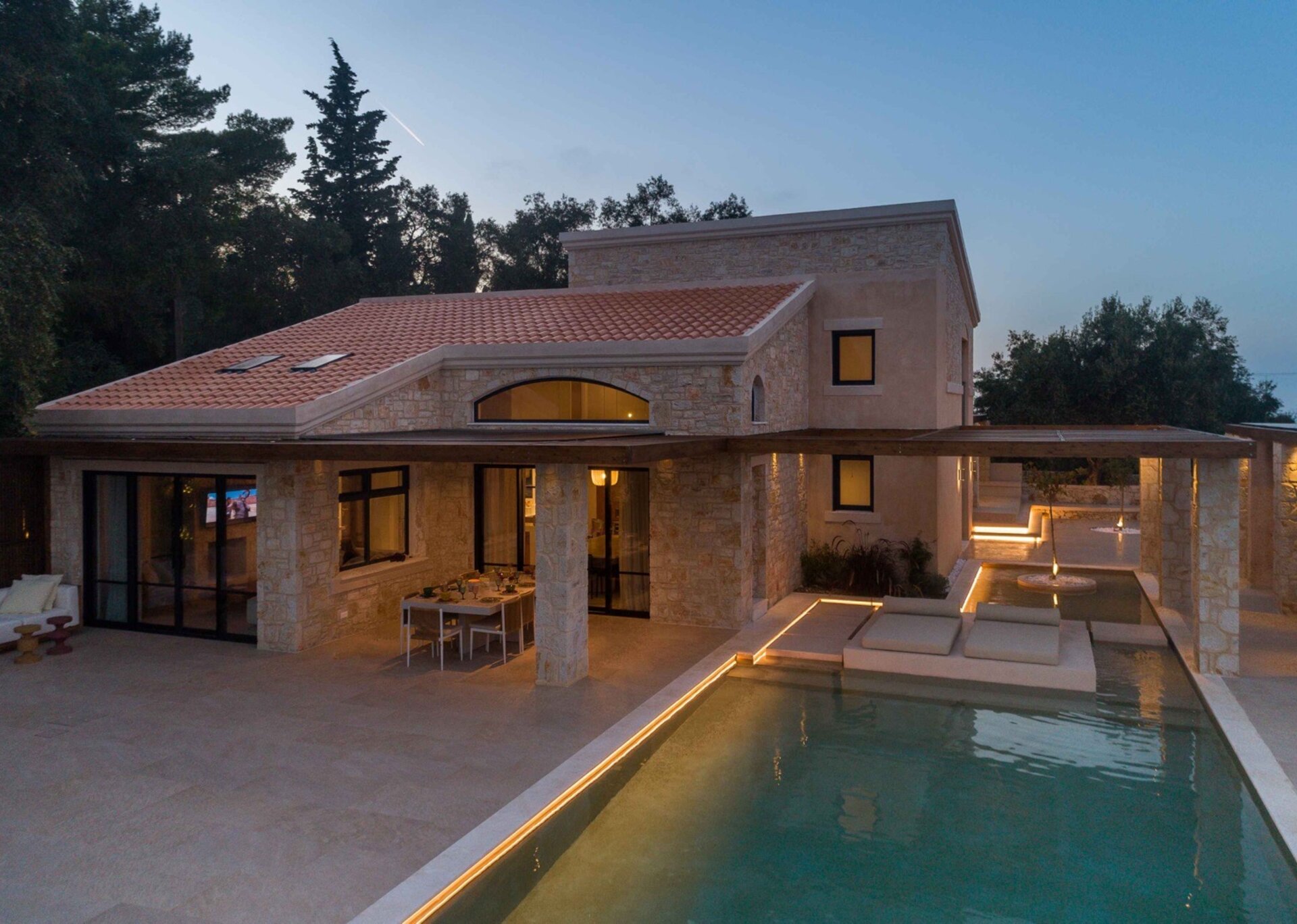Located in the enchanting San Stefano area in the north-eastern part of Corfu, Villa Levi is a top-tier holiday property that recently underwent refurbishment to offer every degree of modern comfort for a relaxing and carefree stay. With state-of-the-art architecture and interior design that boasts exquisite furnishings and materials, this villa is spacious enough to house up to 12 guests. It features a two-story main house and a separate guesthouse, both offering an elevated level of privacy.