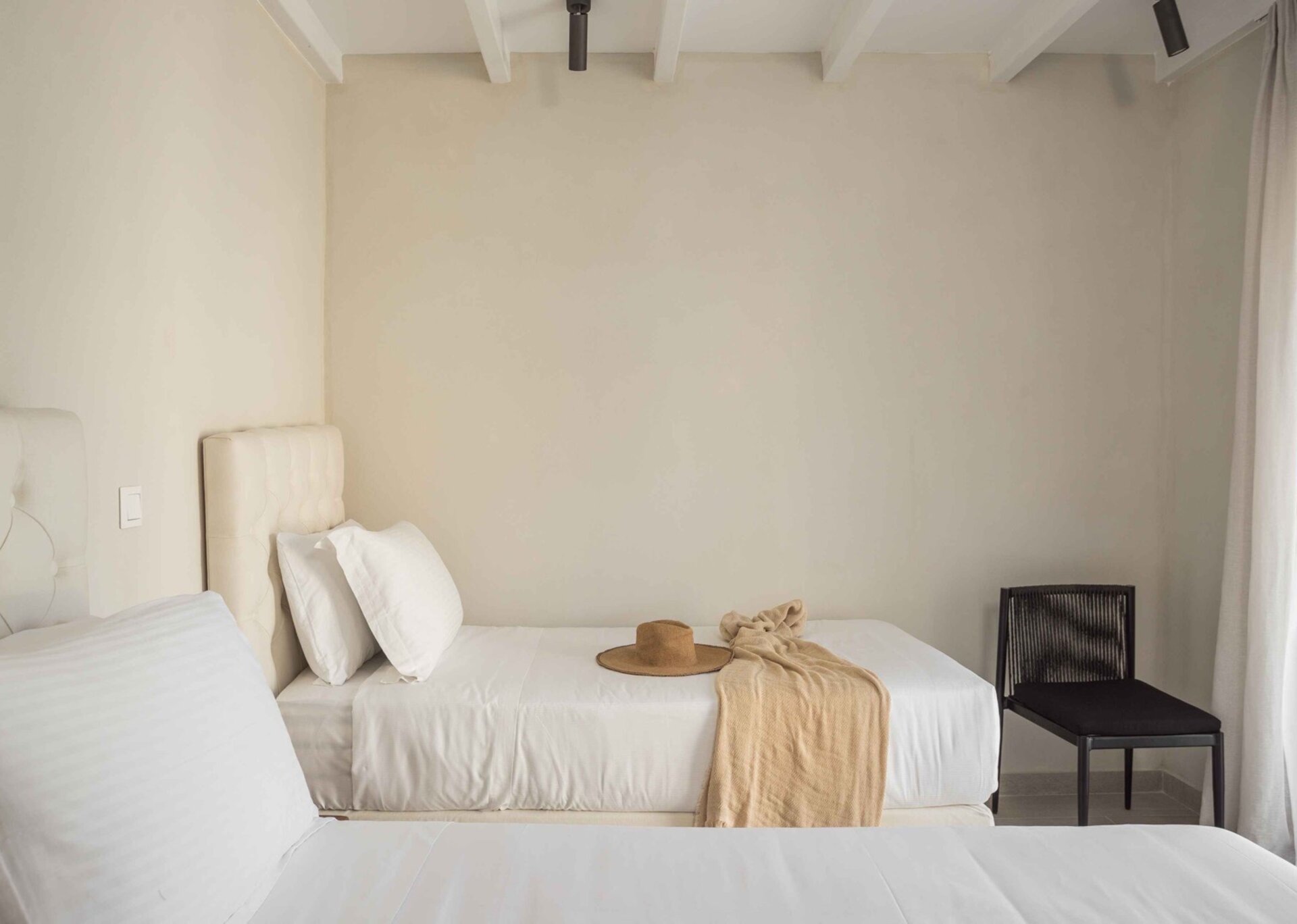 The separate guesthouse is like a mini version of the main house, adorned with the same luxurious style and comfort. It can accommodate two guests and has a double bedroom, shower bathroom, and kitchenette, providing an exclusive and independent lodging experience.