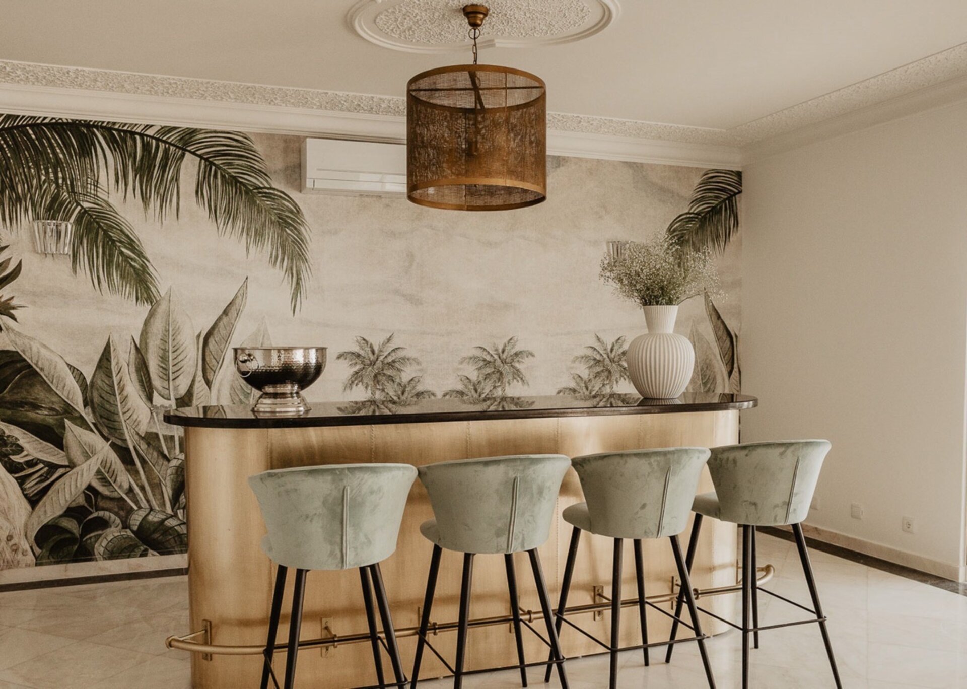 Black-and-white marble floors continue the allure throughout the home which cleverly separates living from sleeping areas where all bedrooms are en-suite.