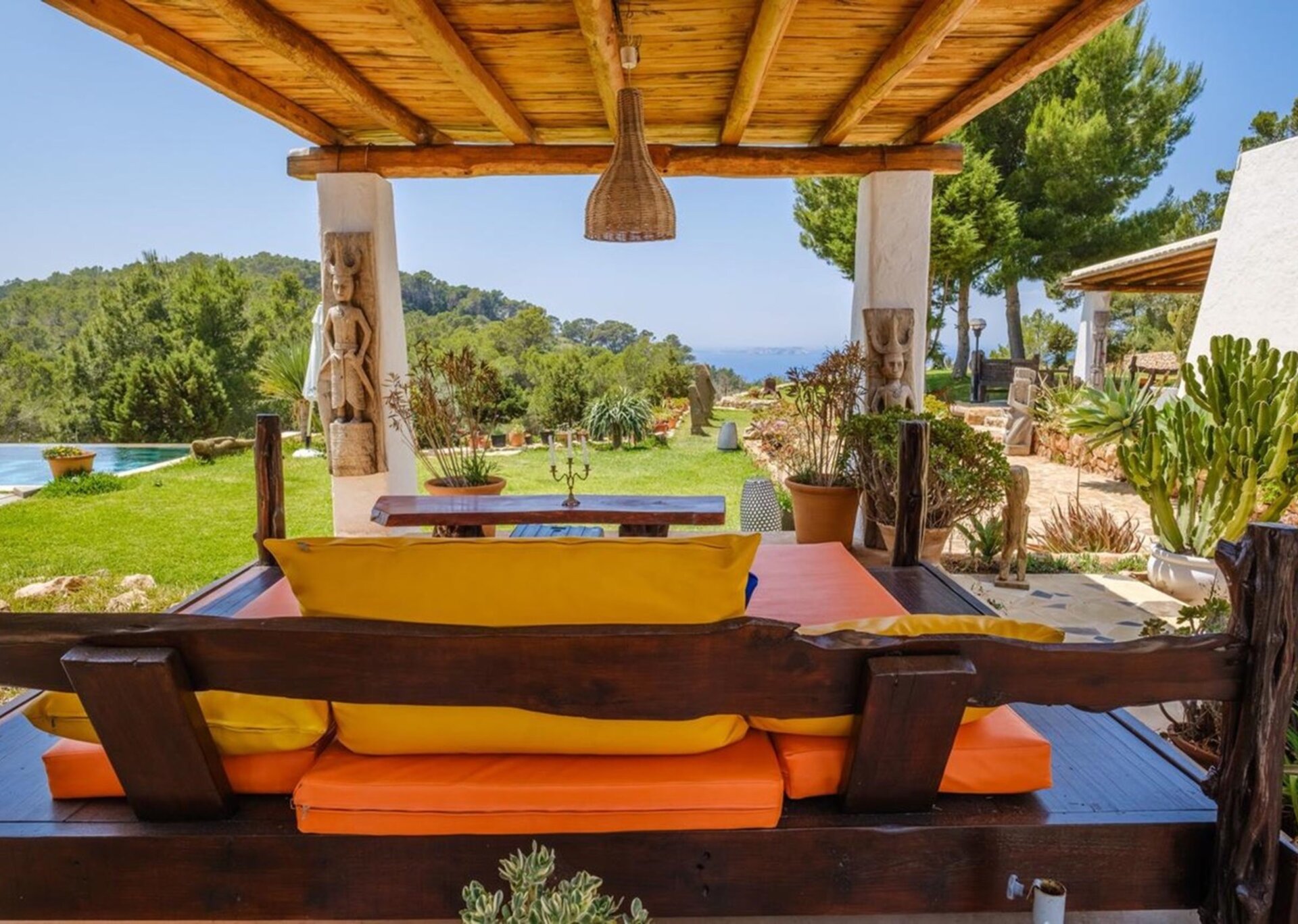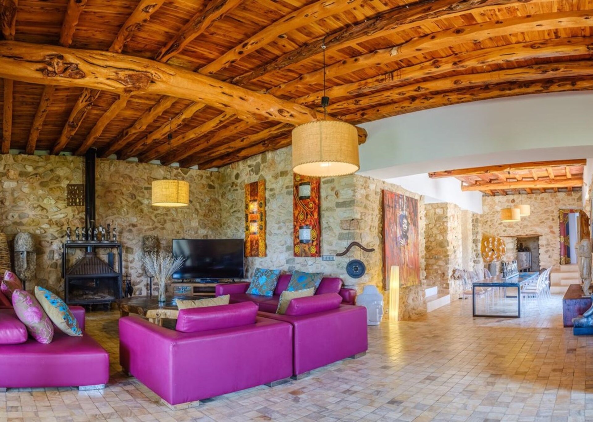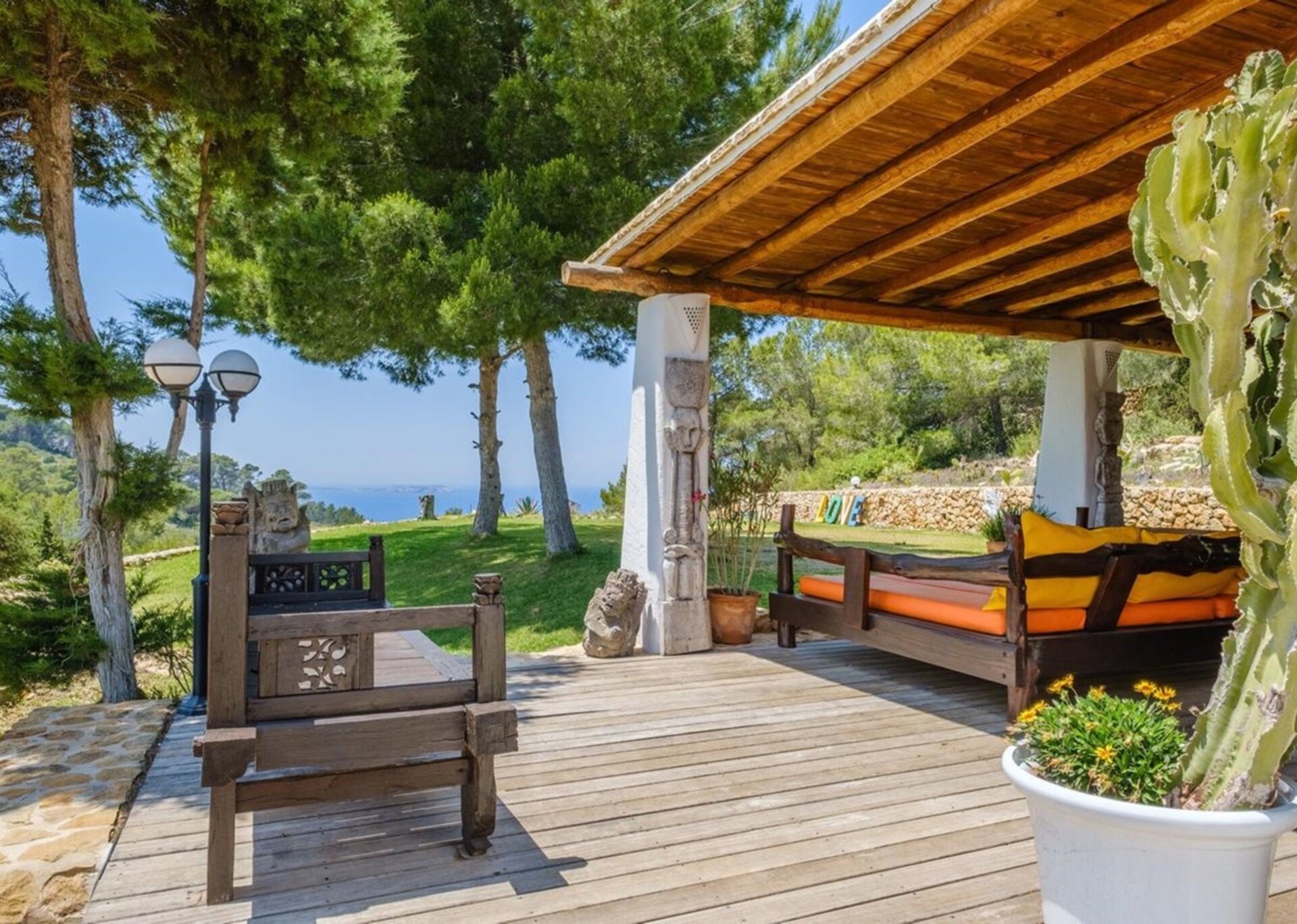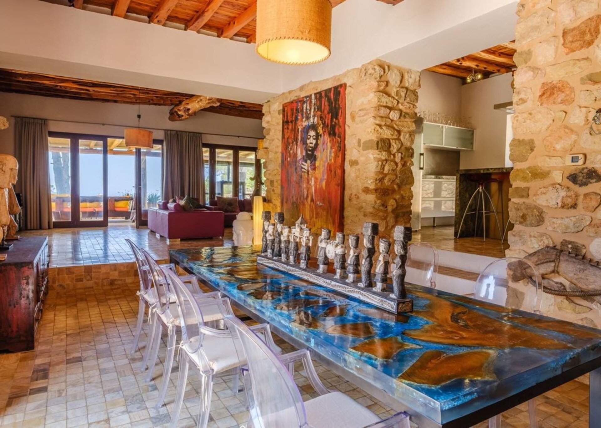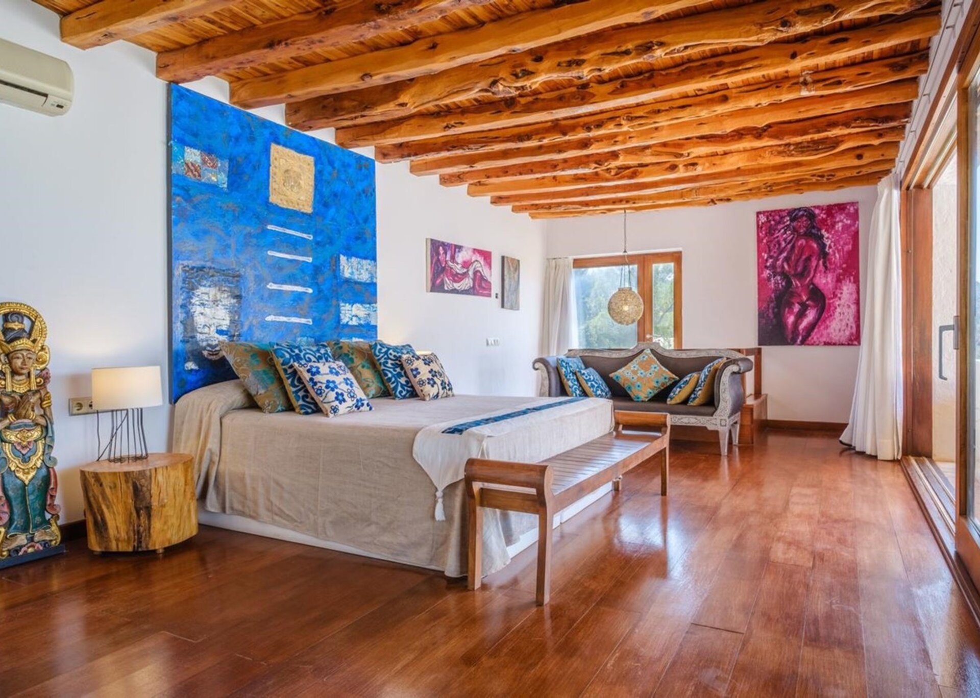 Lisa is an exceptional five-bedroom villa situated in a secluded part of the island, rarely explored by vacationers. Its prime location next to the picturesque Cala Salada beach sets it apart. This magnificent property seamlessly combines tasteful interiors that blend Asian and African influences with the traditional charm of a 500-year-old finca farmhouse. Meticulously restored, Lisa offers breathtaking sea views and unforgettable Ibiza sunsets. Nestled within 50,000 m2 of land, the villa boasts numerous enchanting spots that allow you to fully immerse yourself in the beauty of the natural surroundings. Wander along pathways that wind through the Mediterranean garden, filled with vibrant colors, aromatic scents, citrus orchards, and vegetable gardens.