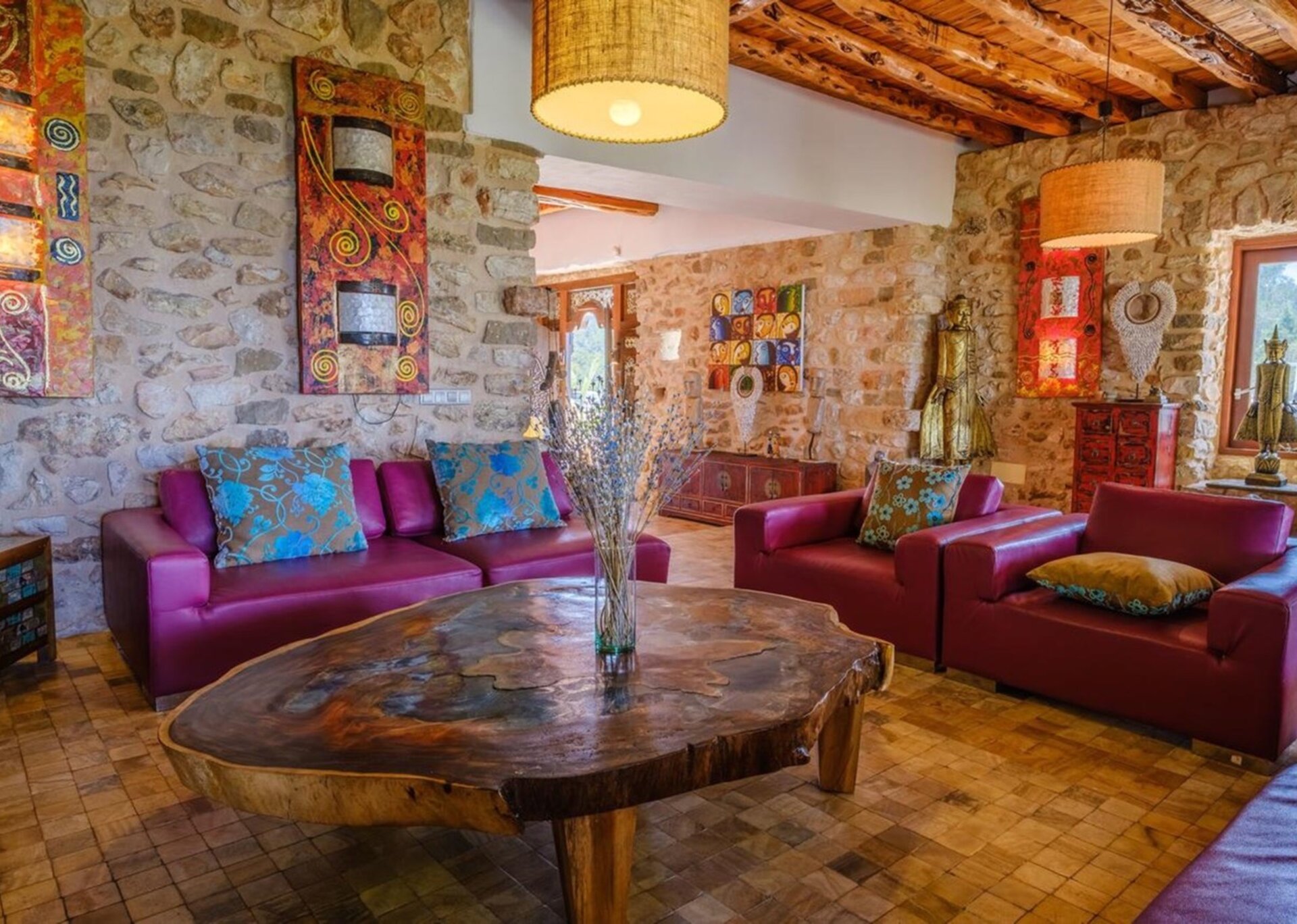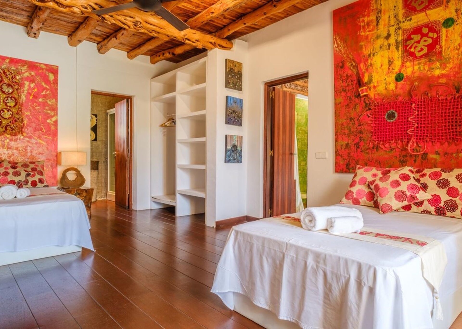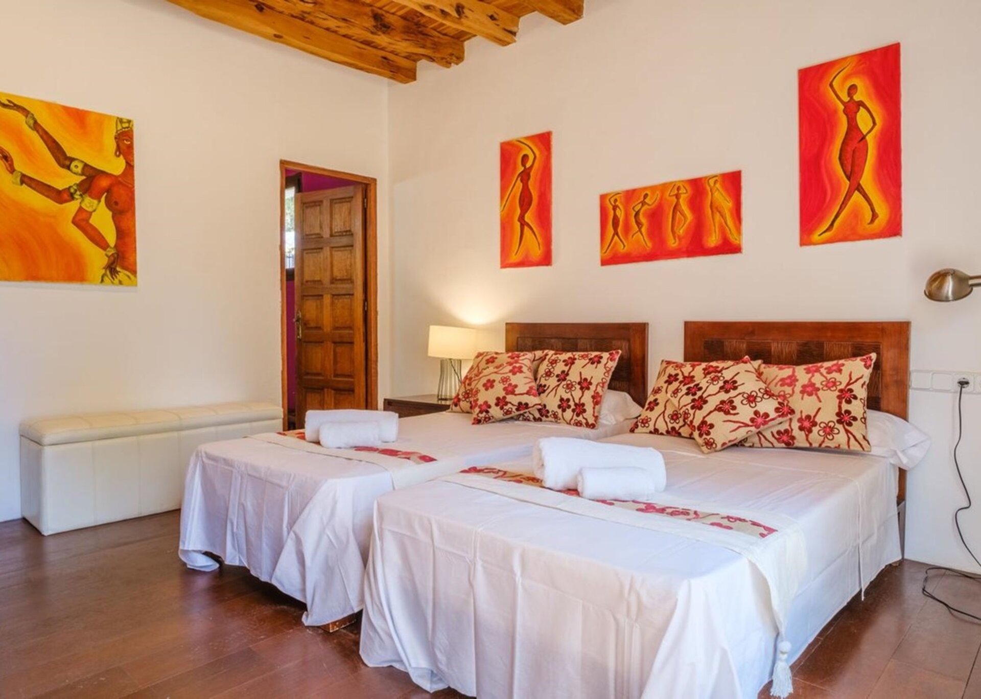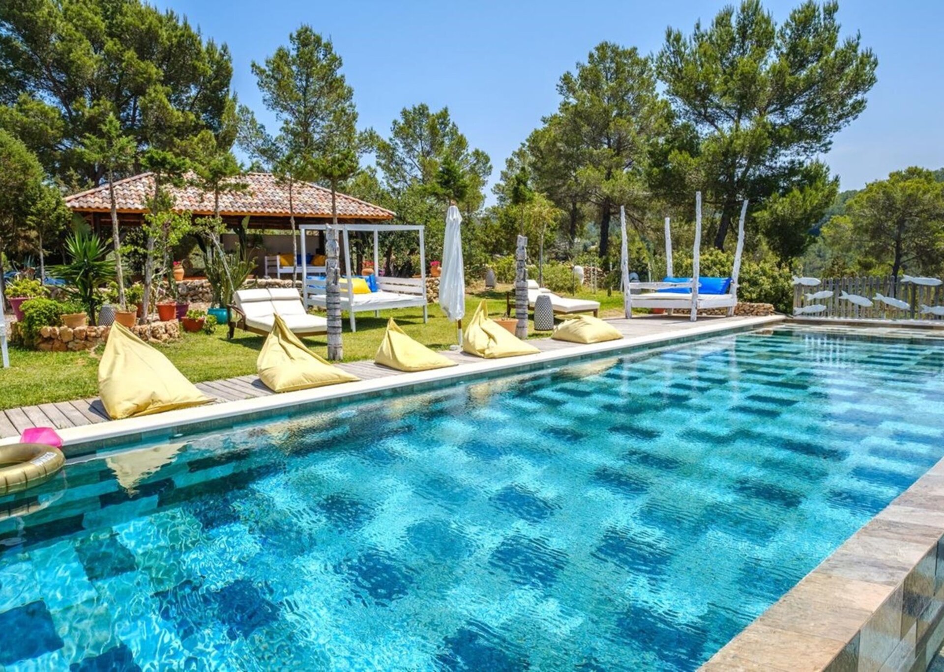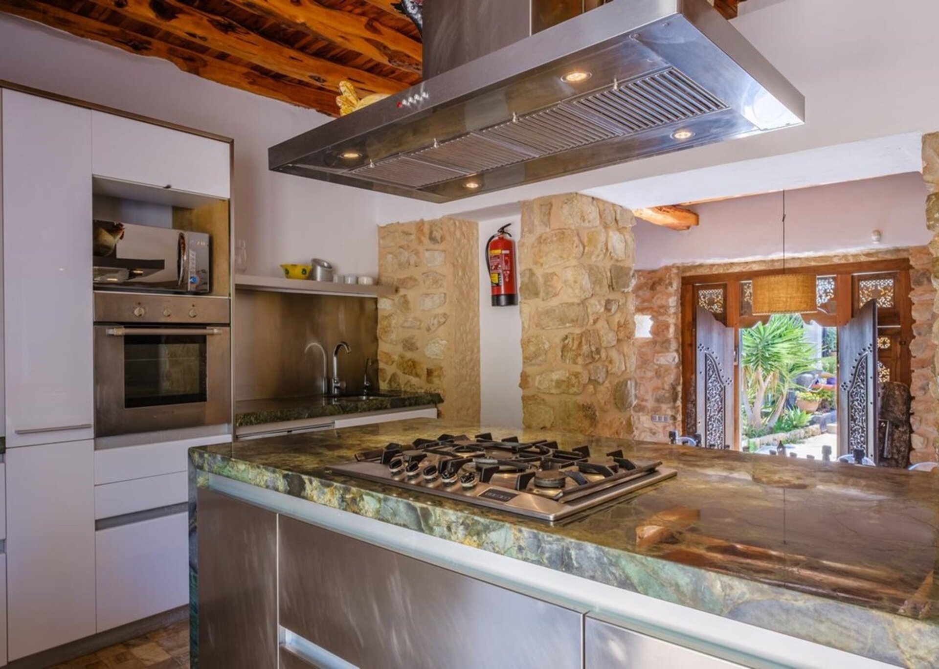 Lisa is an exceptional five-bedroom villa situated in a secluded part of the island, rarely explored by vacationers. Its prime location next to the picturesque Cala Salada beach sets it apart. This magnificent property seamlessly combines tasteful interiors that blend Asian and African influences with the traditional charm of a 500-year-old finca farmhouse. Meticulously restored, Lisa offers breathtaking sea views and unforgettable Ibiza sunsets. Nestled within 50,000 m2 of land, the villa boasts numerous enchanting spots that allow you to fully immerse yourself in the beauty of the natural surroundings. Wander along pathways that wind through the Mediterranean garden, filled with vibrant colors, aromatic scents, citrus orchards, and vegetable gardens.