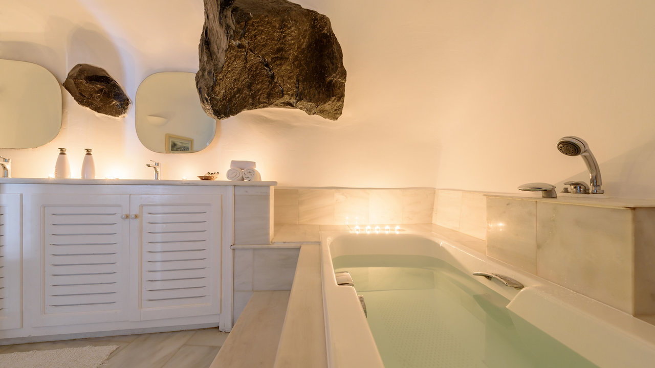 There is an infinity outdoors Jacuzzi plunge pool for 6 persons available on the courtyard of the villa with fabulous views to the sea, the caldera and the village of Oia.