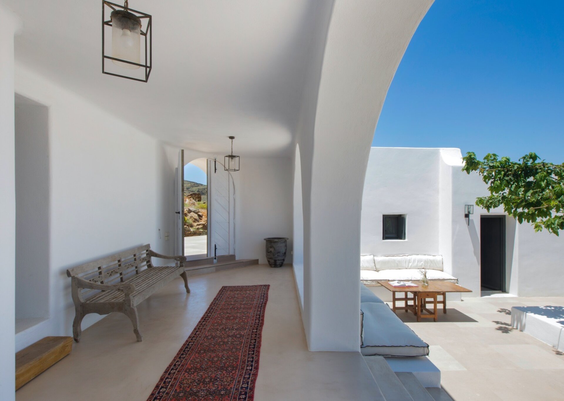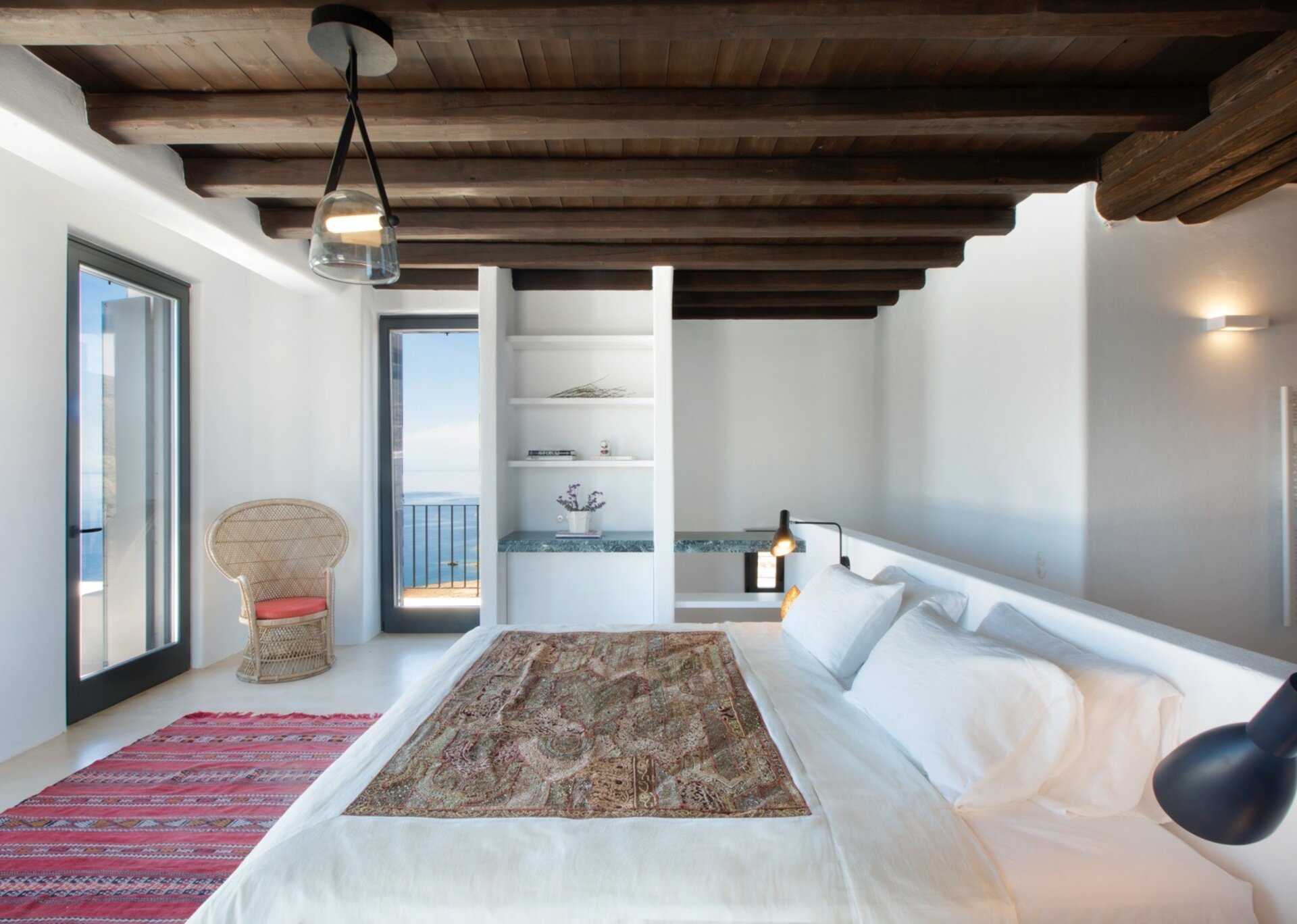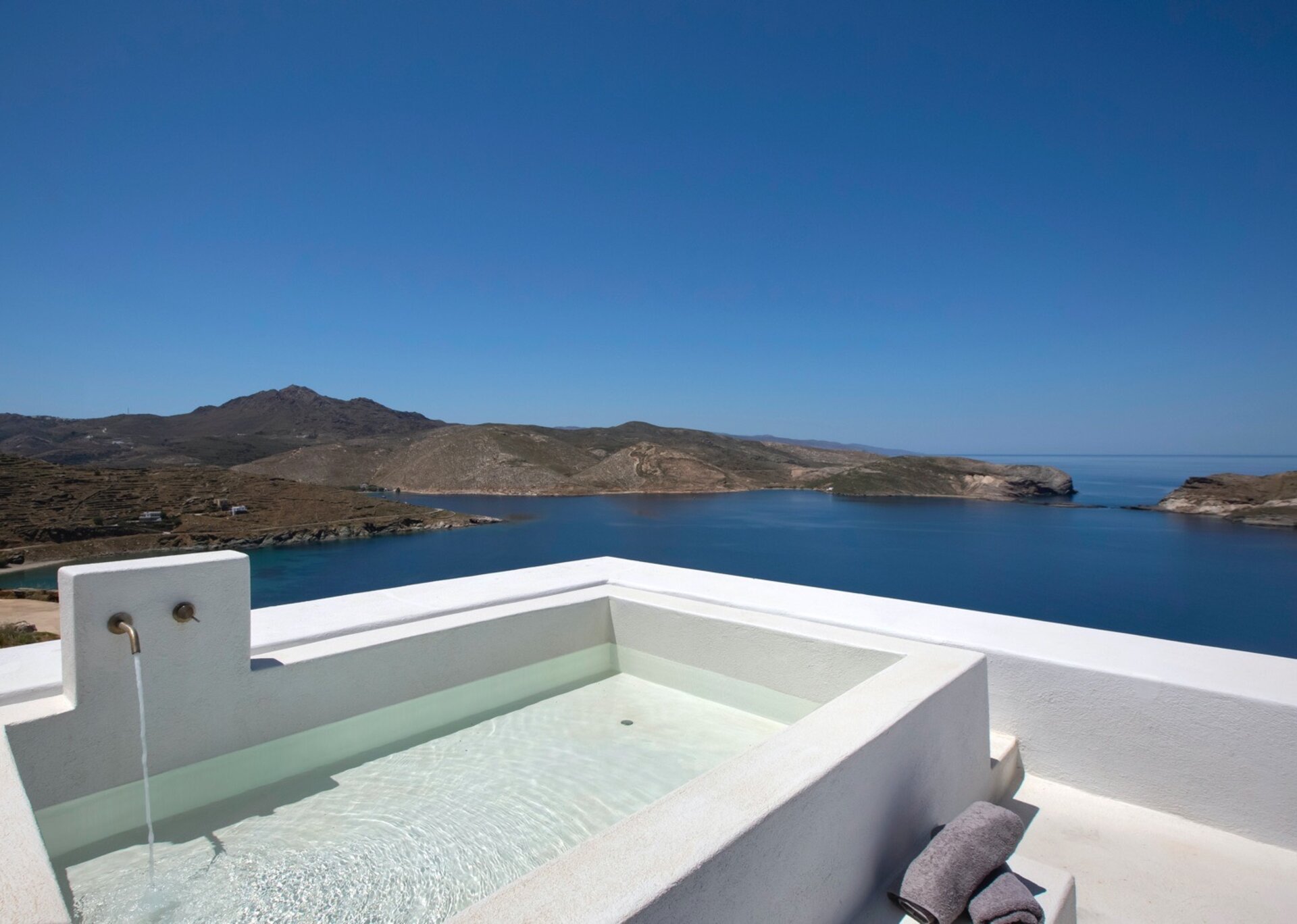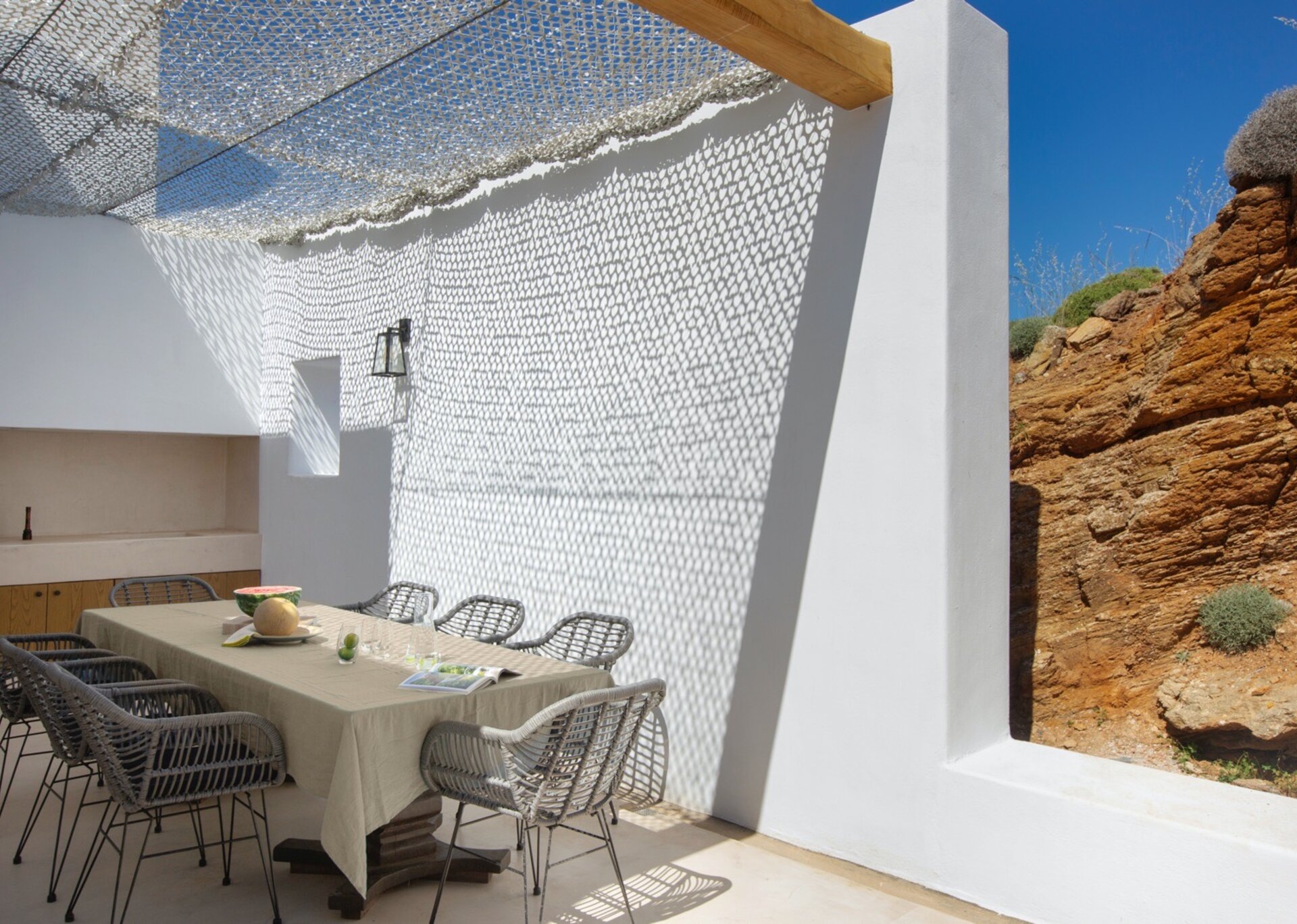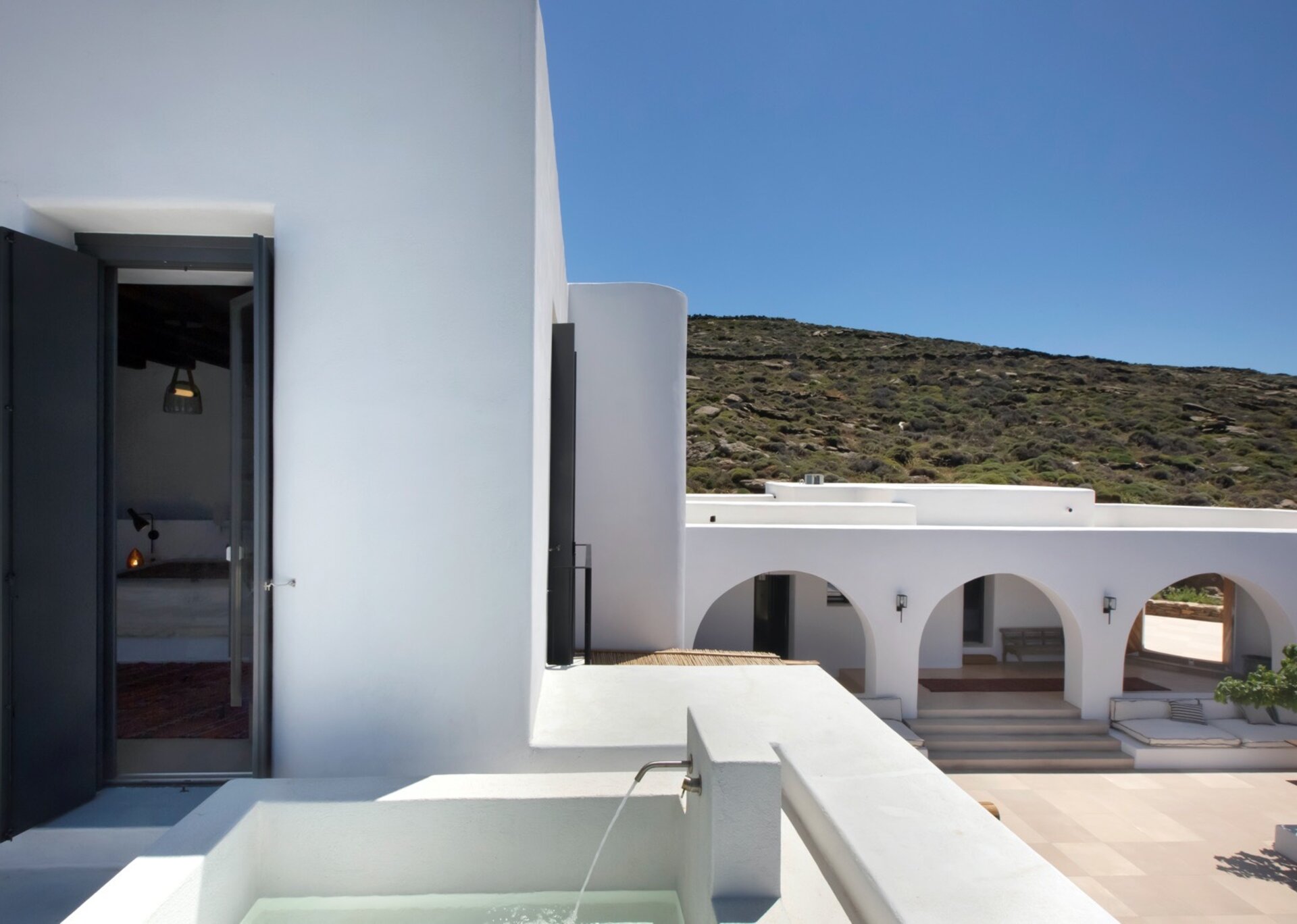 Nestled on a secluded slope at the northern coast, the residence takes full advantage of the unique natural features of the protected landscape. Privacy and breathtaking vistas are guaranteed for the guests. As you enter the villa, the white washed facades harmonize with the surrounding trees and the stunning sea view, creating an idyllic setting for a serene and memorable vacation.