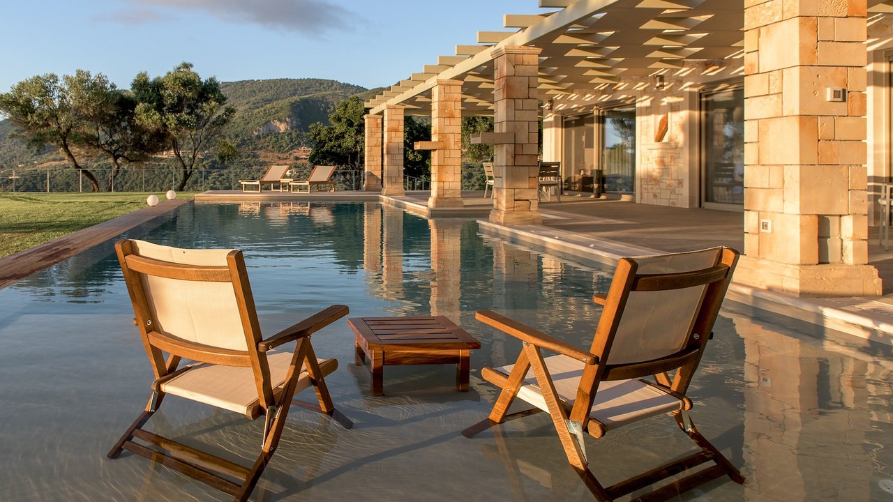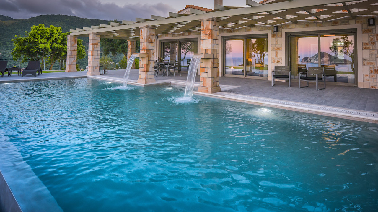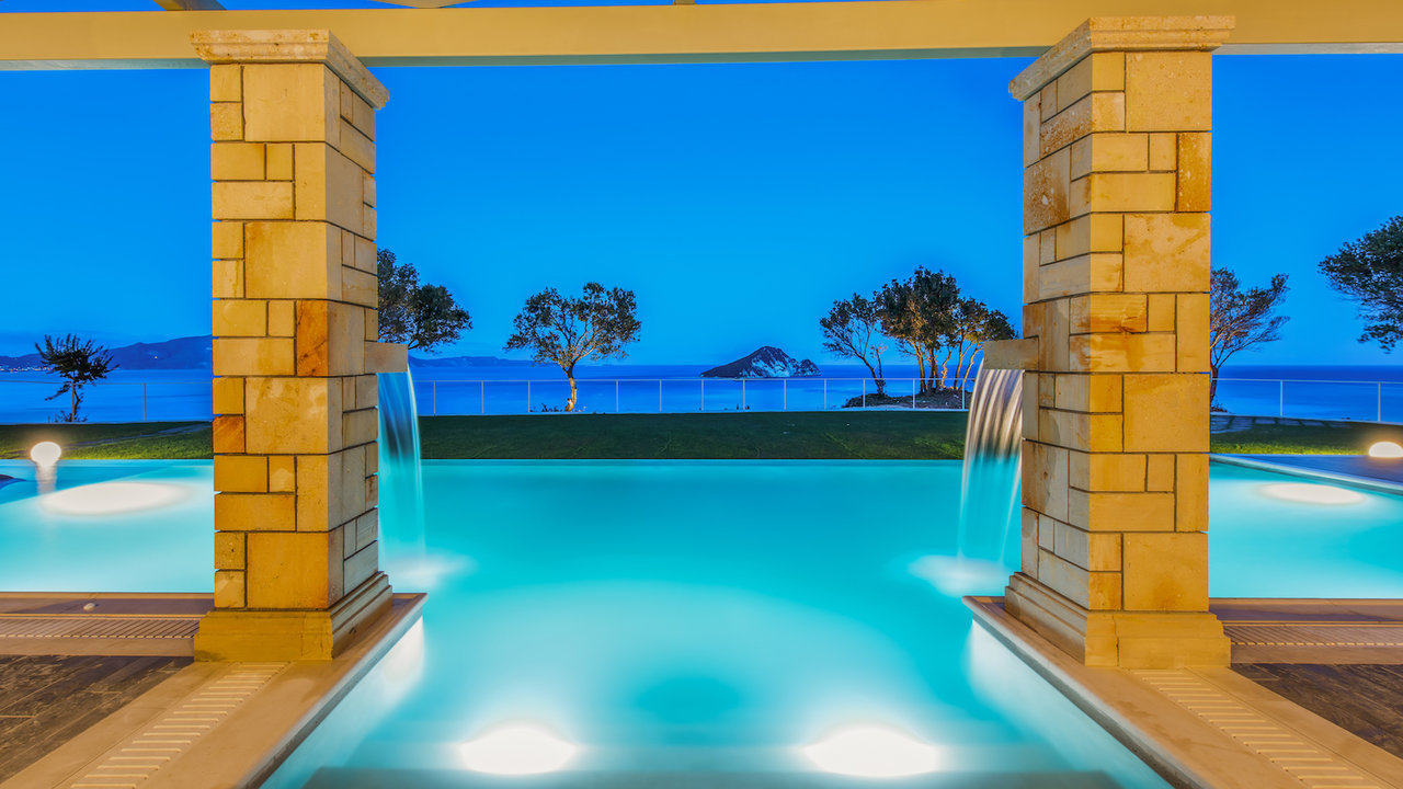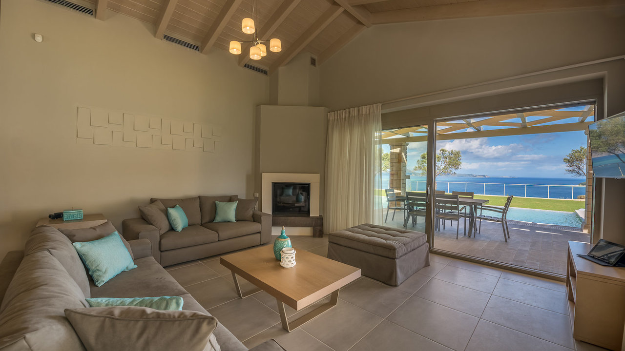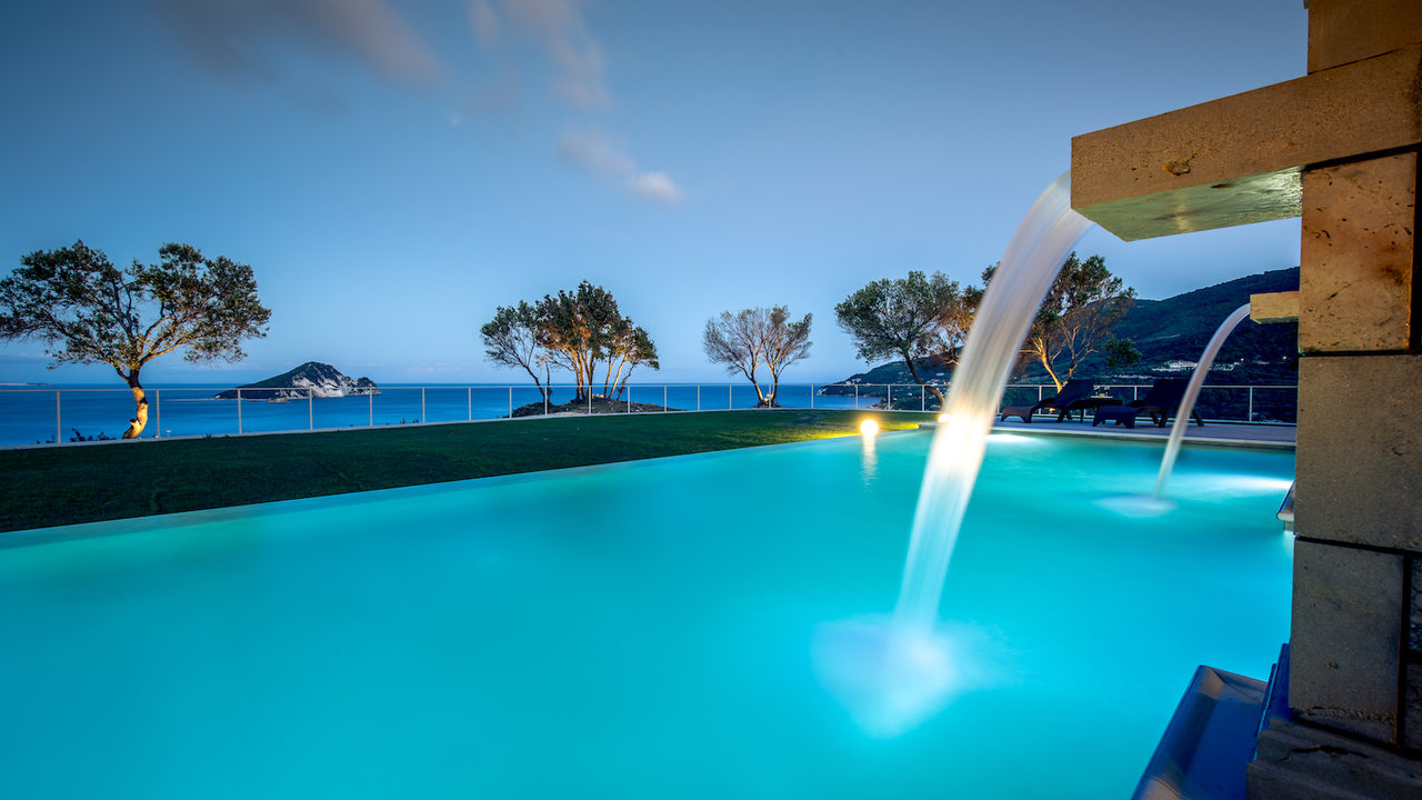 Loyce is a luxurious villa poised on an elevated plateau that meets with limestone cliffs sweeping down to the Ionian Sea, the view from Loyce is nothing less than breath-taking. Loyce can accommodate up to 8 persons, in 3 bedrooms and 2 sofa-beds. Re-discover the joy of pure relaxation in unparallel comfort. Surrender yourself to the enchantment of Zakynthos’ beauty and serenity in the luxury of flawless perfection.
