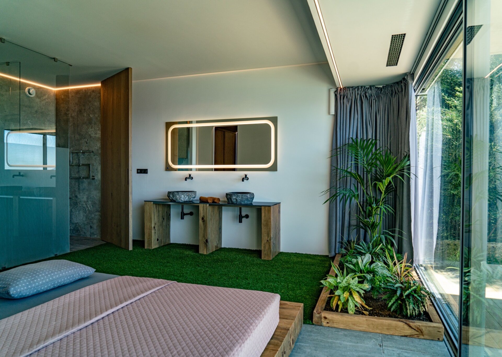 Designed with a contemporary aesthetic and crafted with the highest quality materials, Villa Lumiere captures the essence of sophisticated wilderness living. Its sleek architectural lines, featuring a fusion of concrete and glass, create a seamless blend between the modern interior and the natural beauty that surrounds it. Every detail has been meticulously curated to evoke a sense of tranquility and harmony, inviting residents to embrace the serenity of their surroundings.