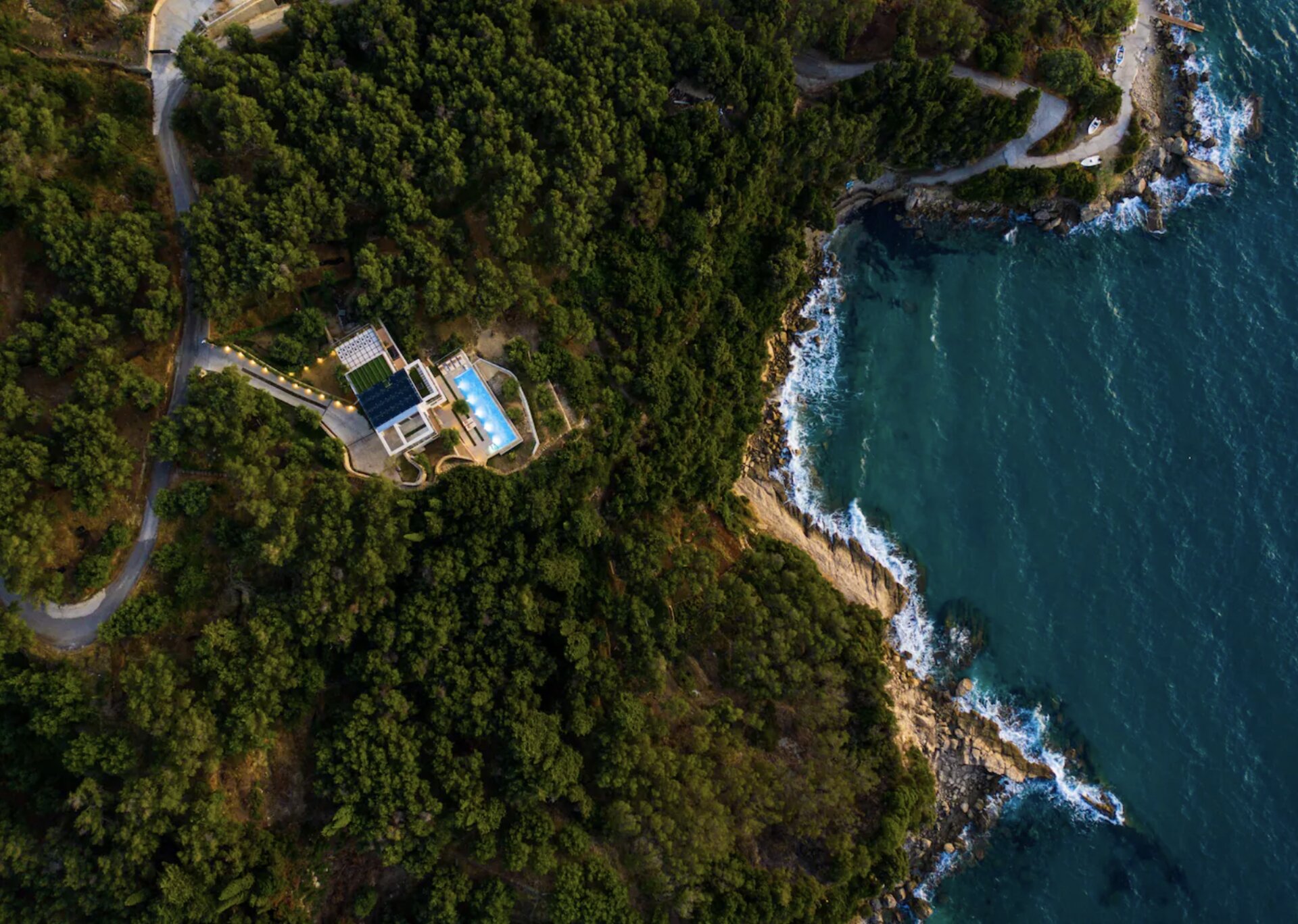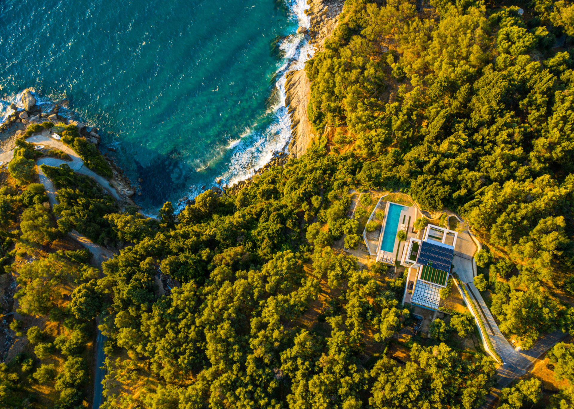 Nestled harmoniously among the fragrant pine-covered hills, this exquisite villa offers a truly enchanting experience. From its elevated position, it commands mesmerizing panoramic views of the sparkling turquoise waters, while being blessed with breathtaking sunsets that paint the sky in a symphony of colors. Access to the sea is conveniently just a short 300-meter stroll away, allowing residents to indulge in the tranquil embrace of the gentle waves.