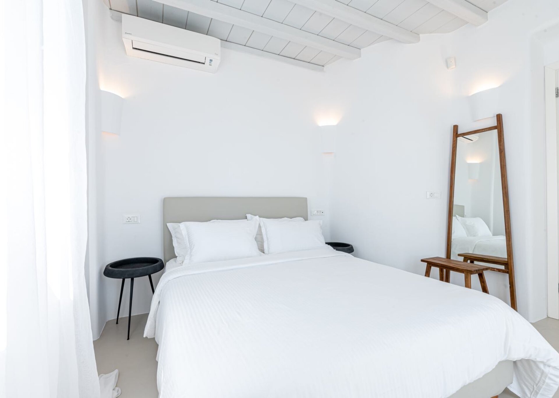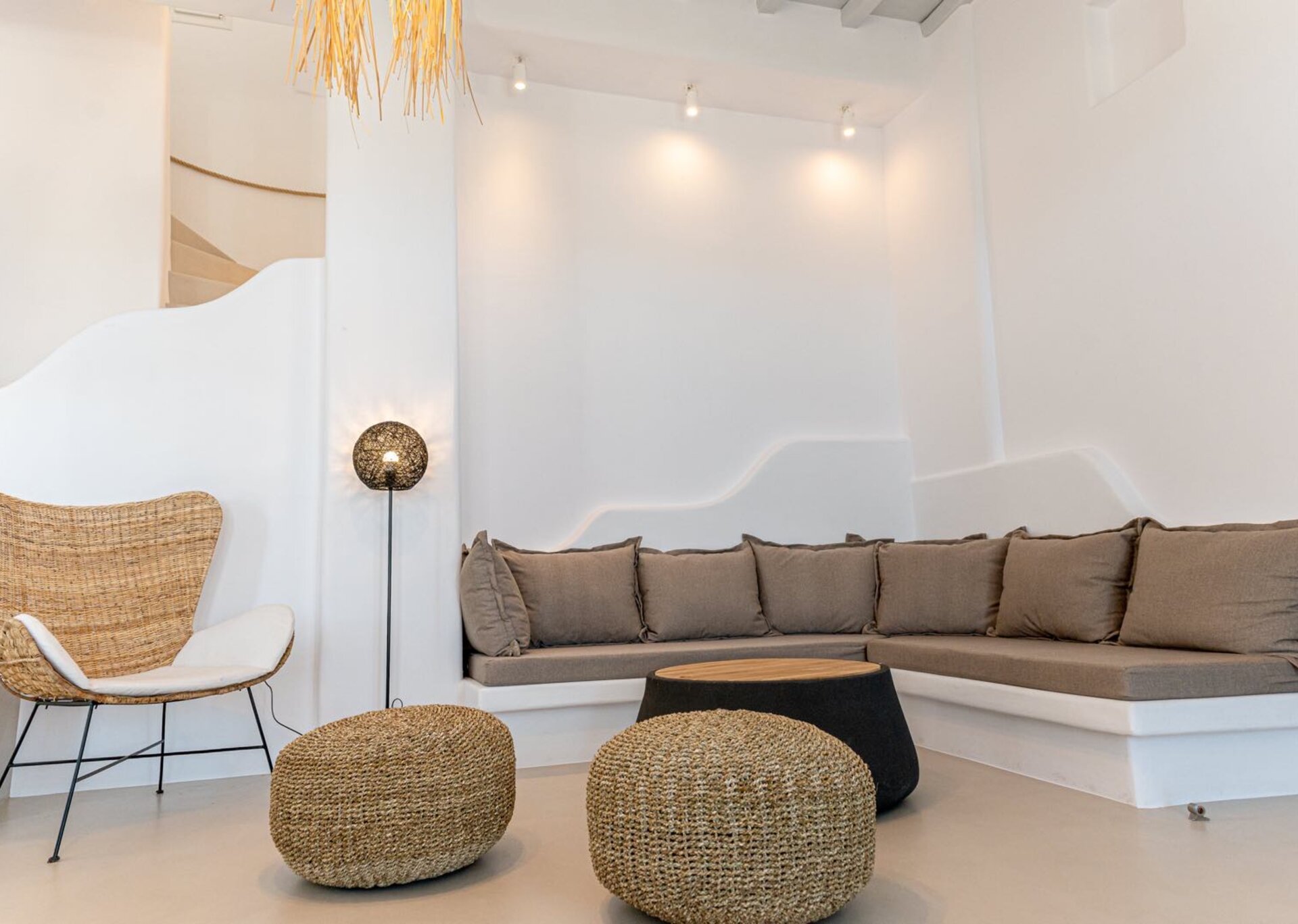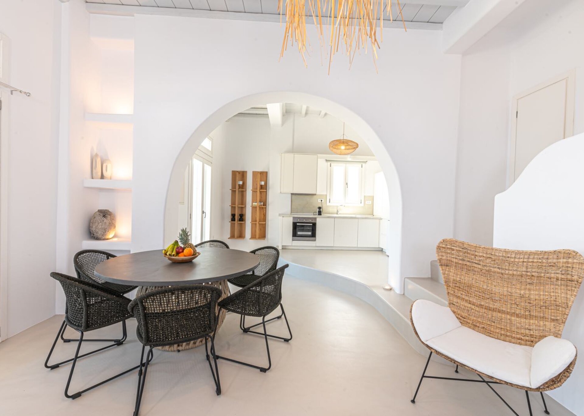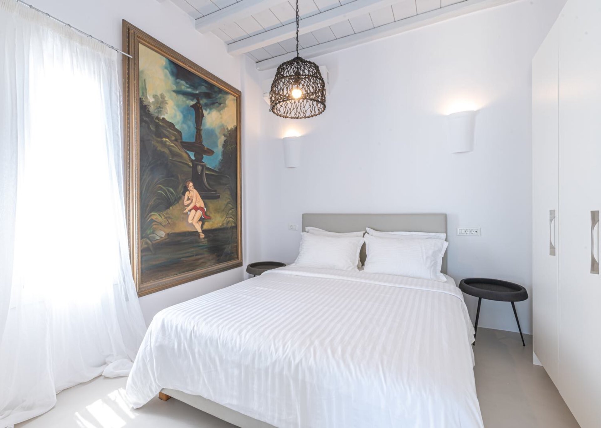 Majesty is an experience in aesthetics:The impressive, newly built villa is situated on a privileged hillside overlooking the sea and picturesque “Little Venice” part of the Town of Mykonos.