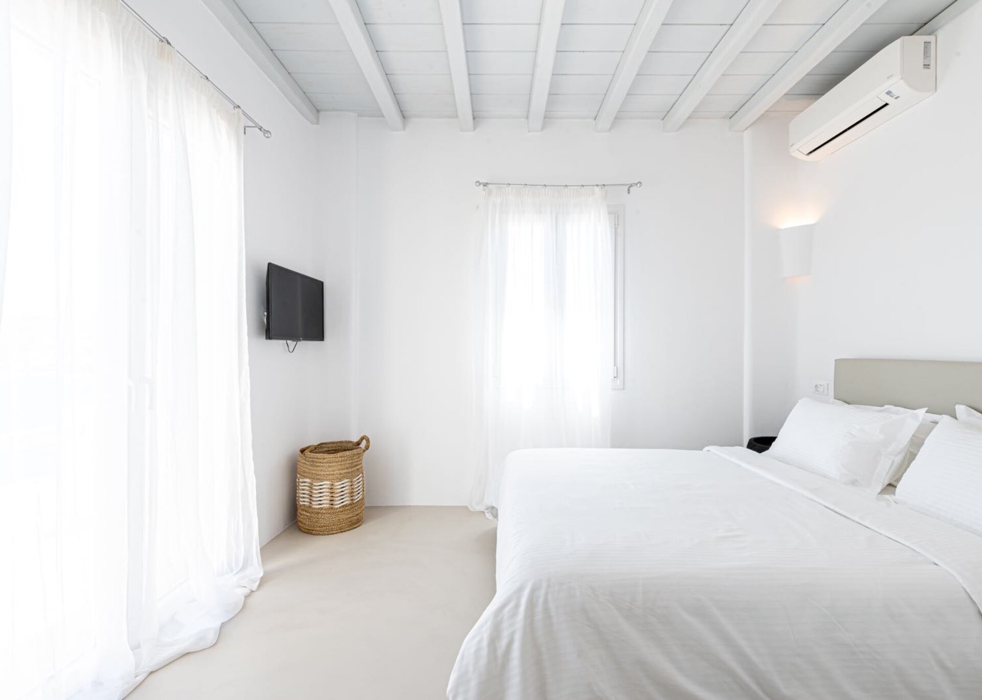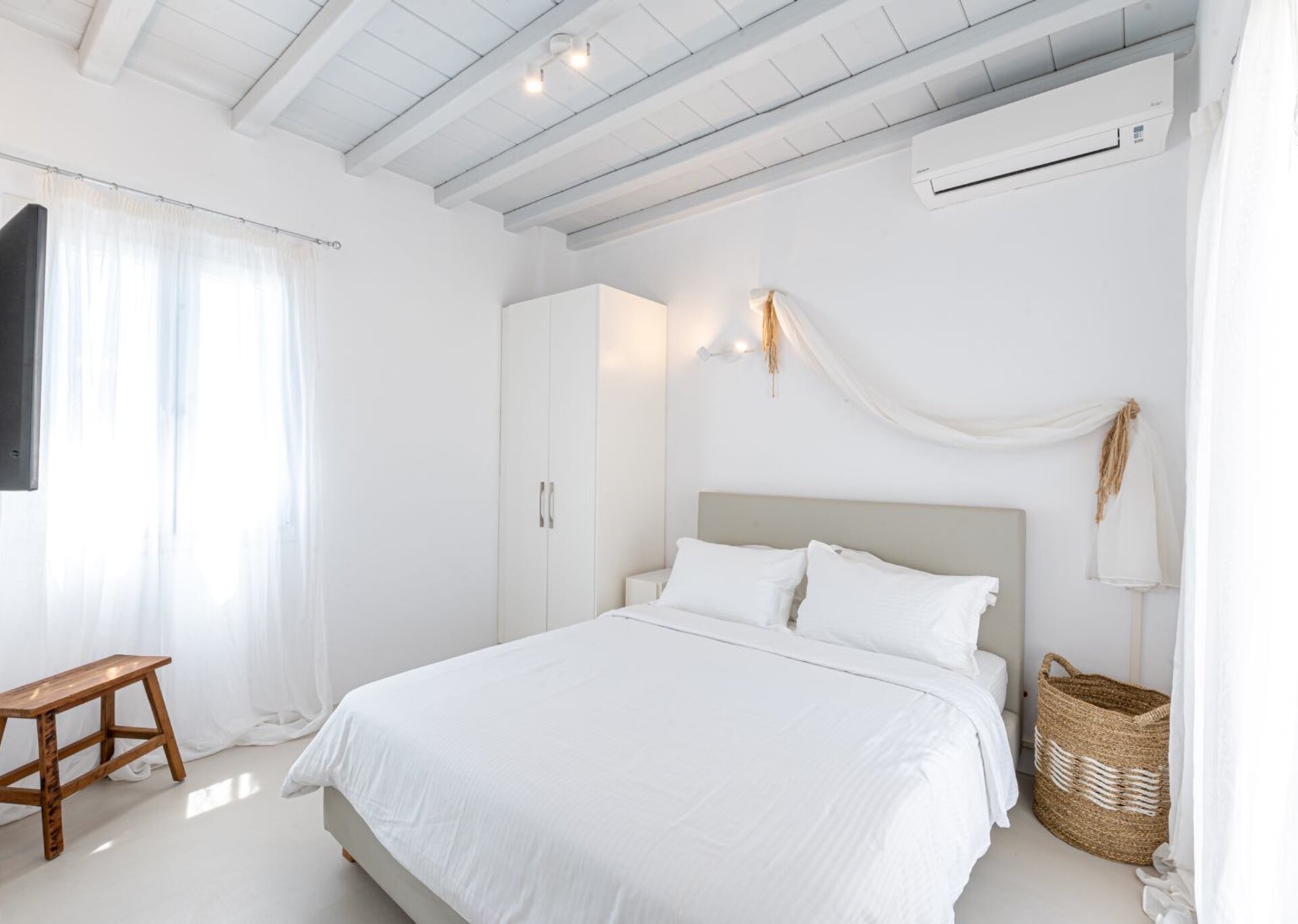 Built In 2017,the 170 square meters, two-level property, all in white, is perched on a hillside with breath-taking, panoramic views over the Aegean Sea boasting a large open plan living area indoors and outdoors and offering privacy and seclusion in a very idyllic spot. In combination with the 5* Hotel Standards Amenities promises incomparable hospitality.