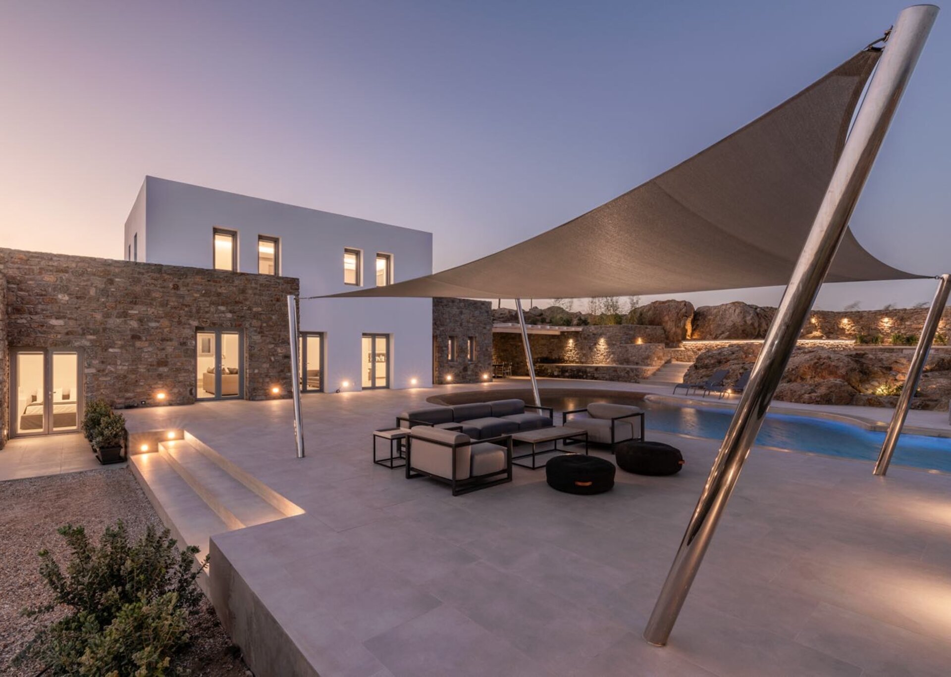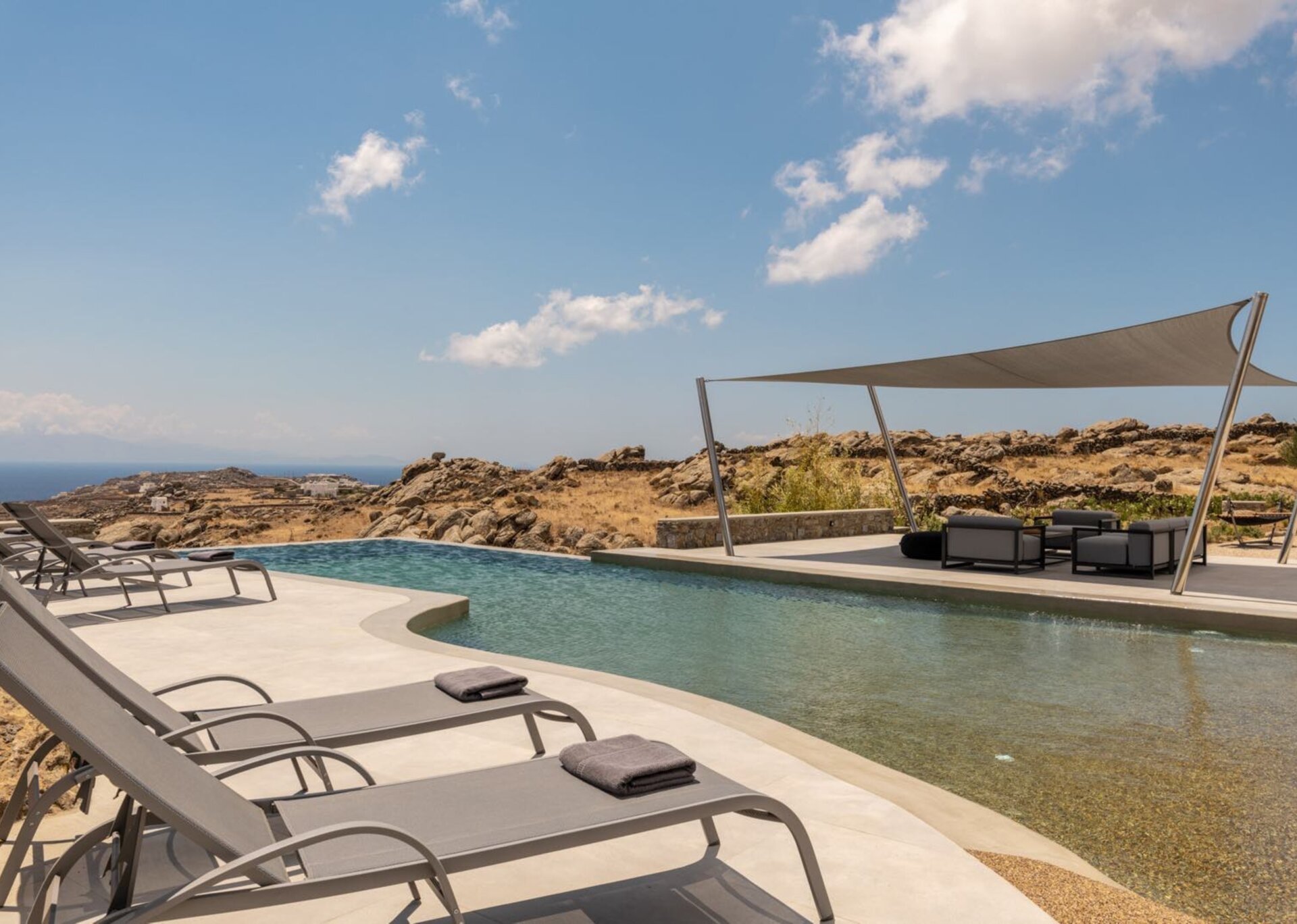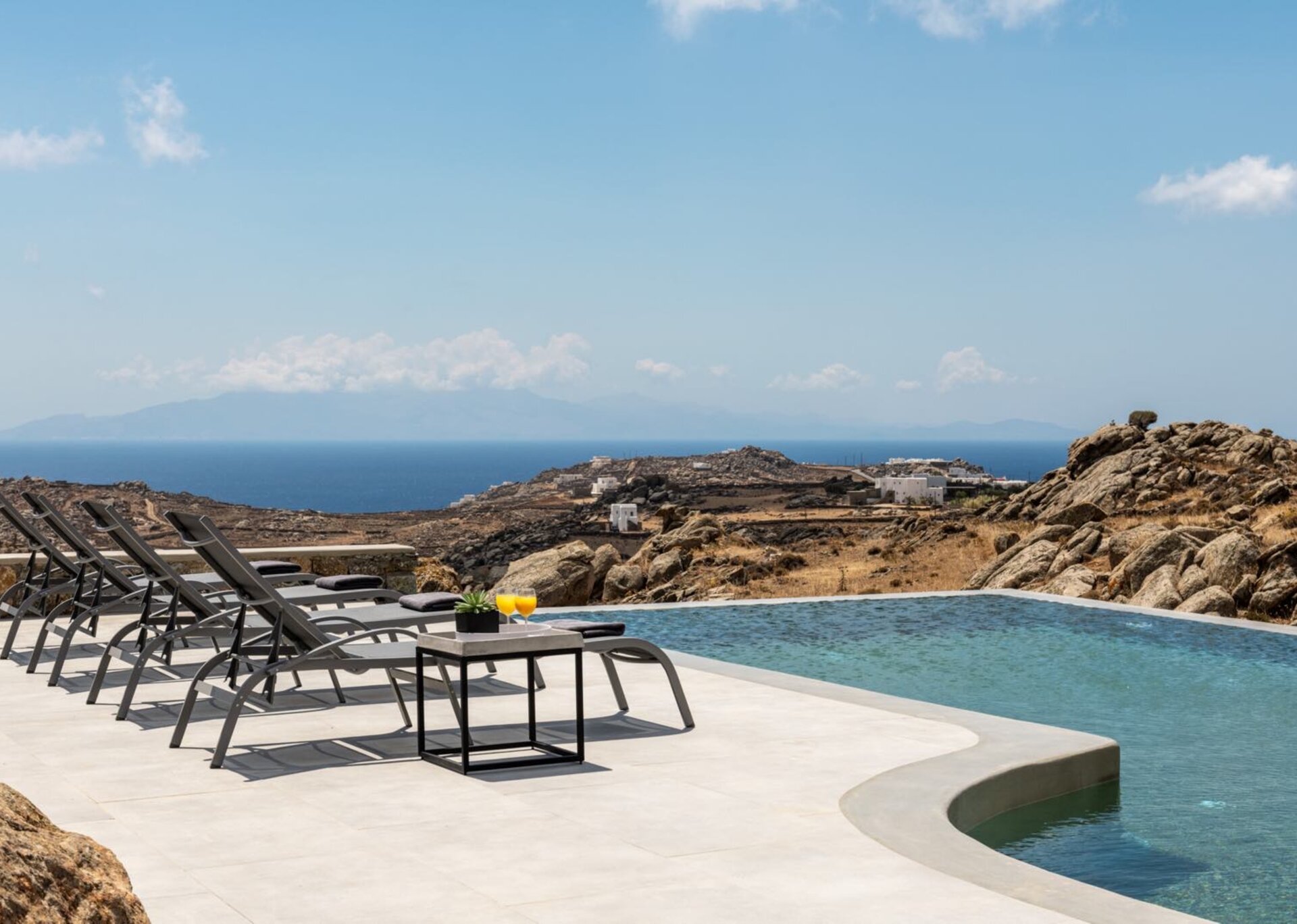 Welcome to Villa Marceline, where luxury and privacy converge! Nestled in a tranquil setting on a private 5,400 sqm land atop a mountain hill, this villa offers you the ultimate vacation experience. Enjoy 180-degree panoramic views of the southern beaches of Elia, Agrari and Super Paradise from your own private paradise. Whether it's soaking up some sun by the pool or enjoying an al fresco dinner with breathtaking views, Villa Marceline will provide everything you could desire for an unforgettable stay.