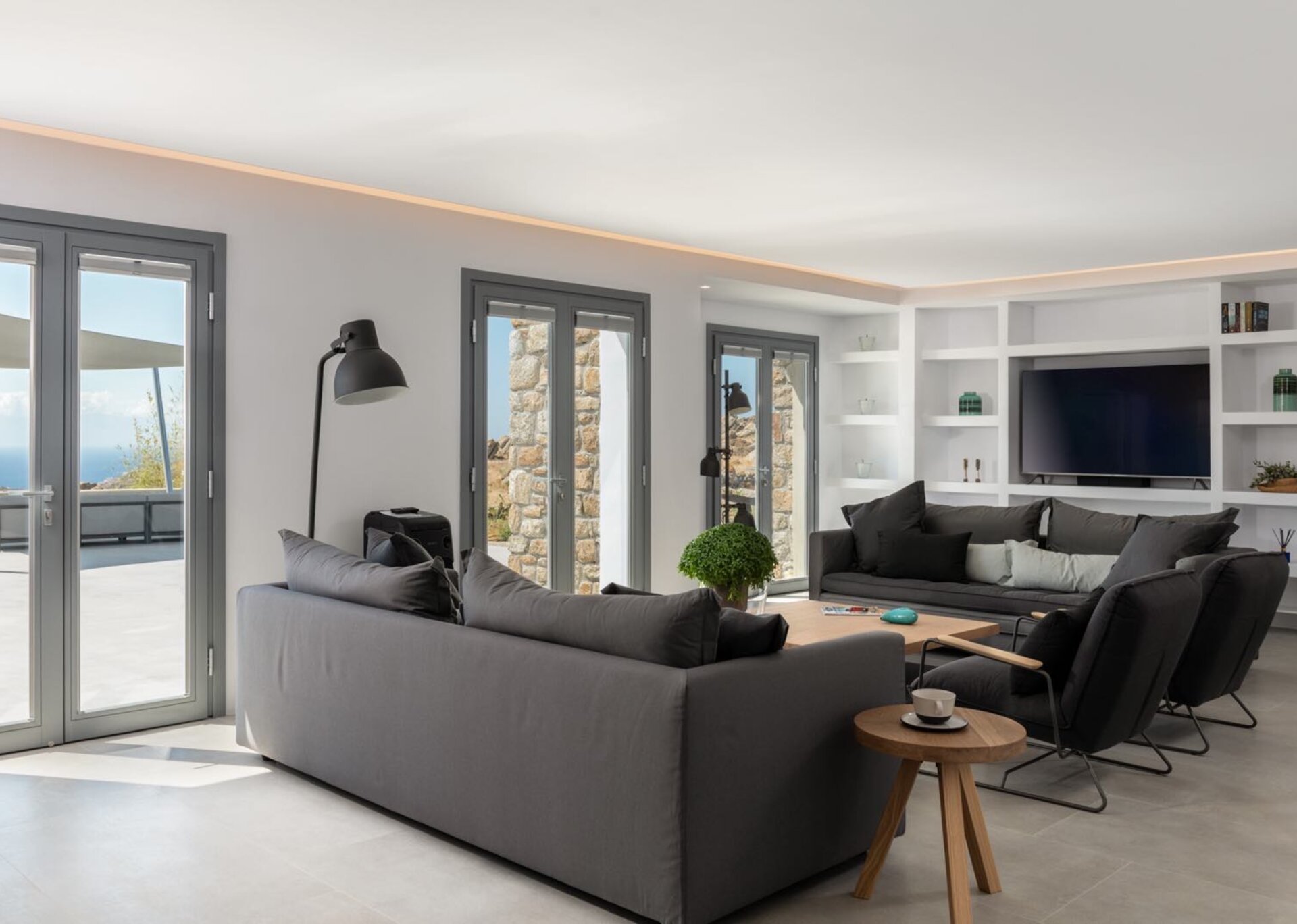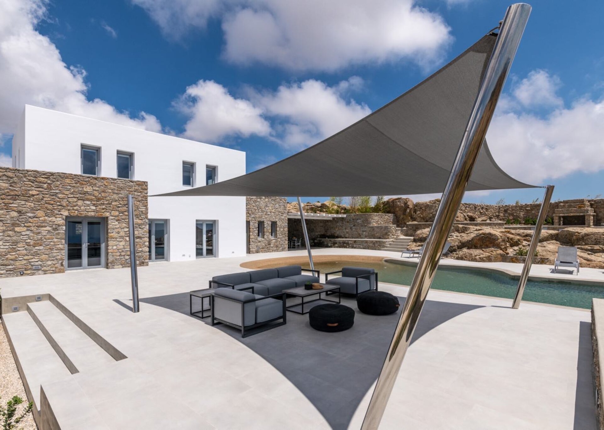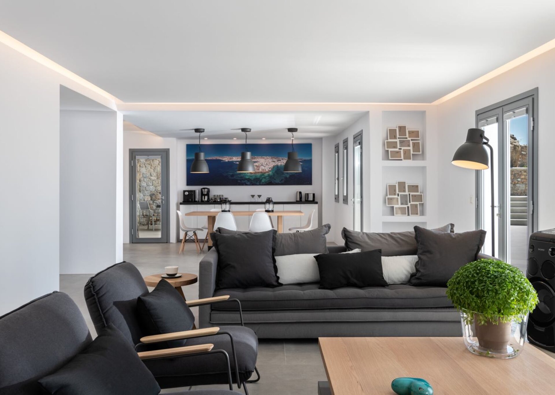 Welcome to Villa Marceline, where luxury and privacy converge! Nestled in a tranquil setting on a private 5,400 sqm land atop a mountain hill, this villa offers you the ultimate vacation experience. Enjoy 180-degree panoramic views of the southern beaches of Elia, Agrari and Super Paradise from your own private paradise. Whether it's soaking up some sun by the pool or enjoying an al fresco dinner with breathtaking views, Villa Marceline will provide everything you could desire for an unforgettable stay.