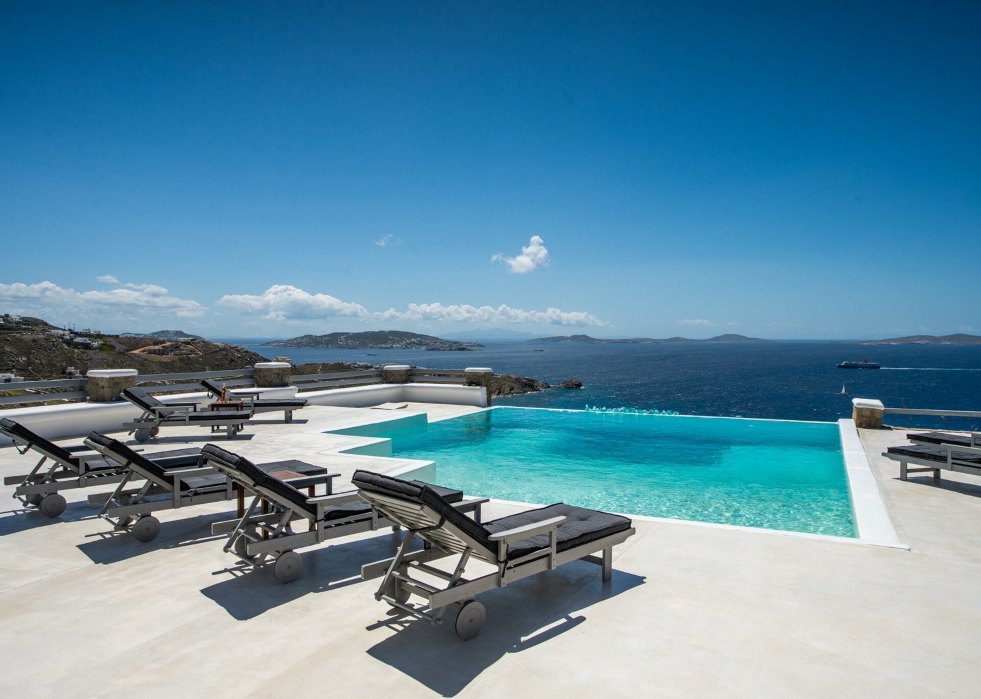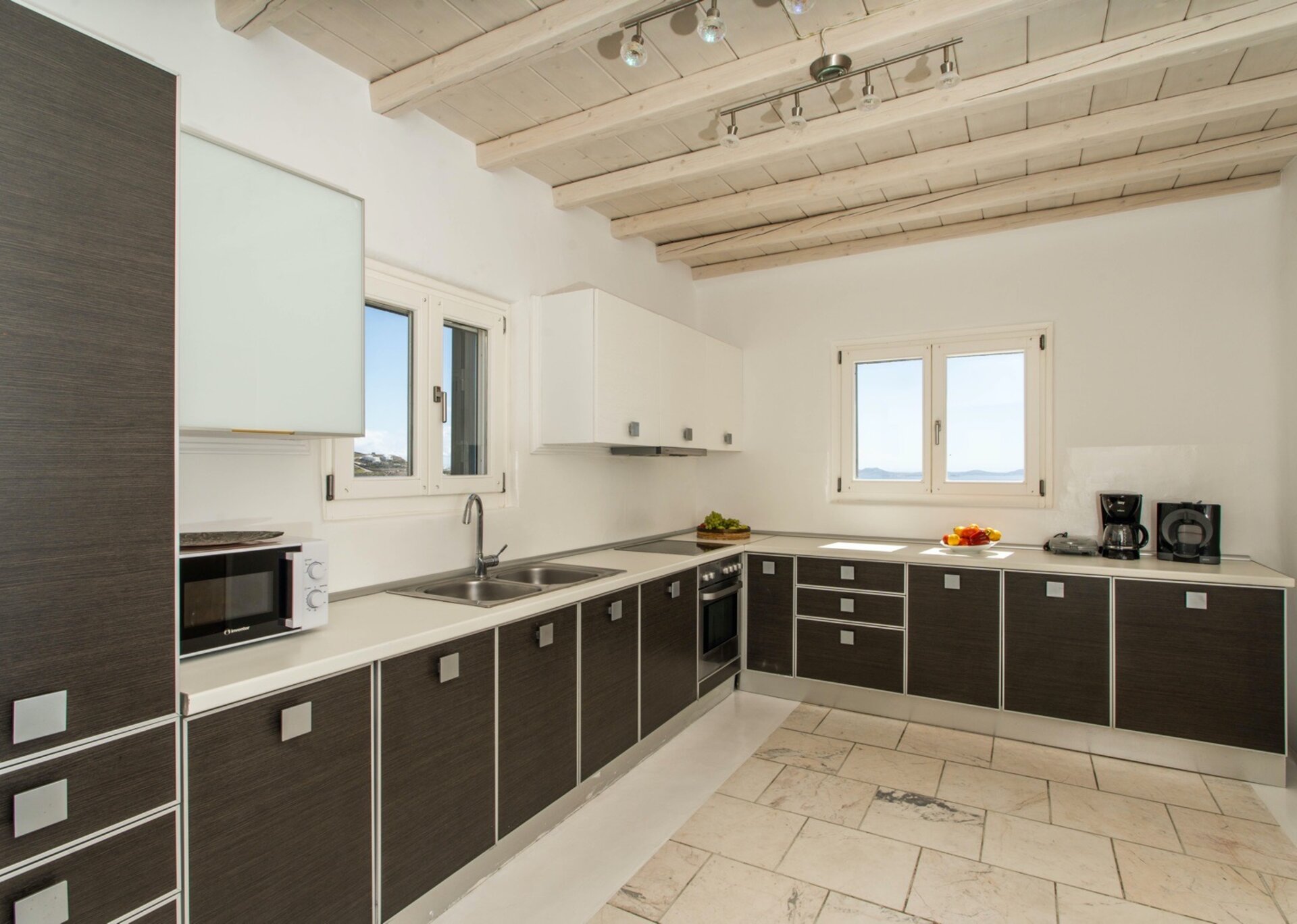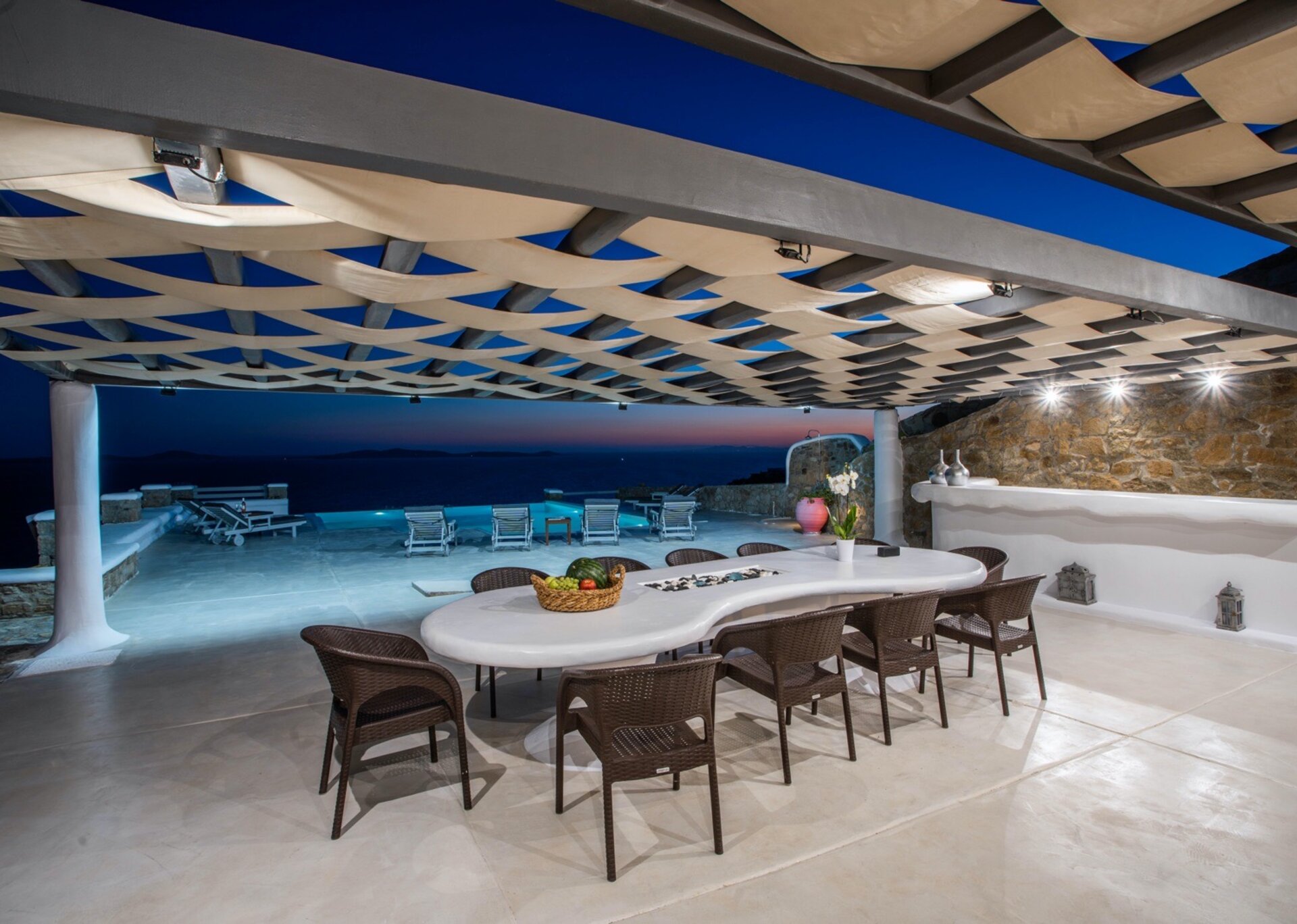 This beautiful villa, located in the privileged location of Houlakia can host up to 9 persons. This spacious villa offers combines privacy and tranquillity with beautiful landscapes and spectacular views of the Aegean sea and only a few minutes away from the nightlife and the famous restaurants of the island.
