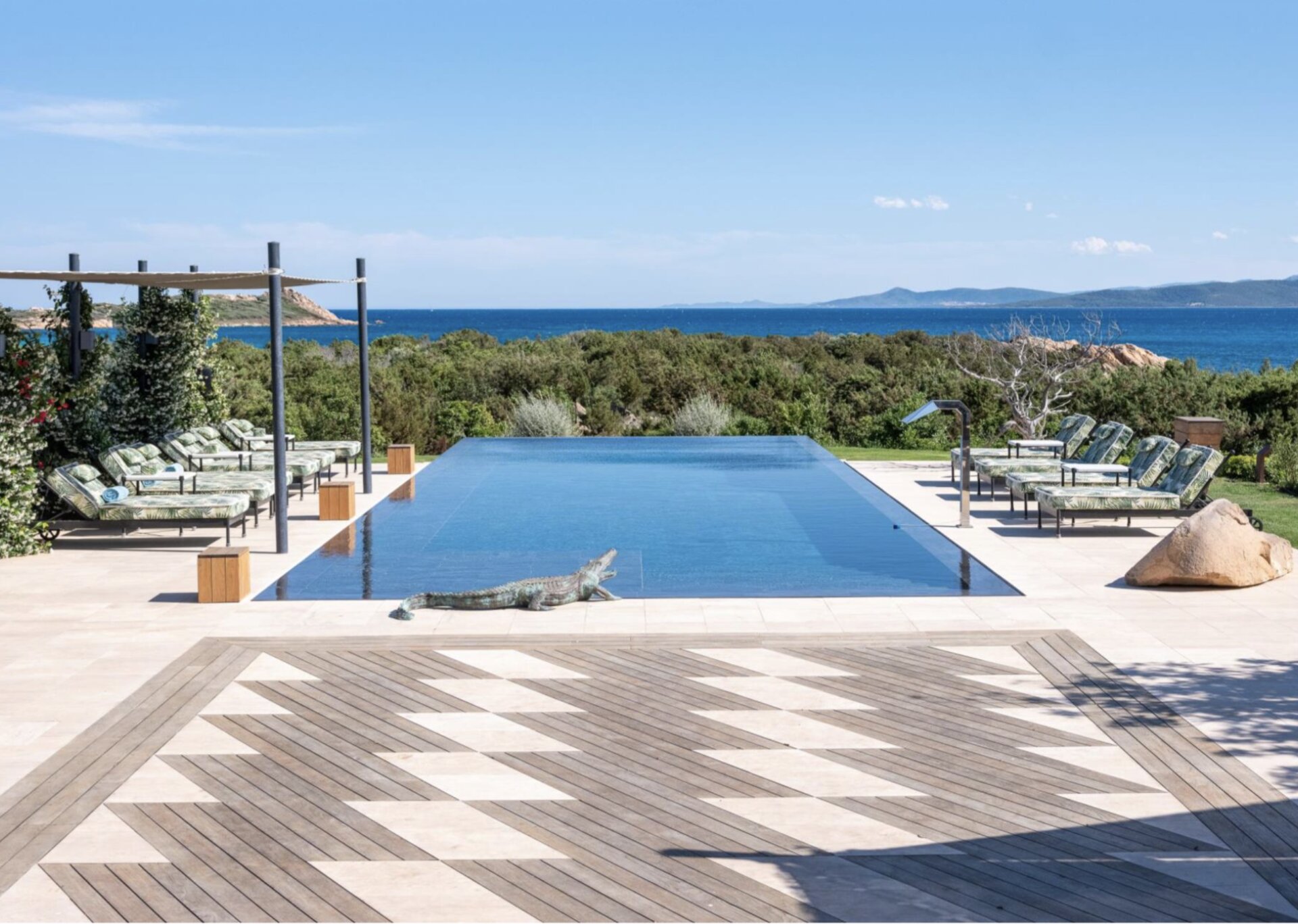 Nestled in the picturesque Capo Coda Cavallo region of Sardinia, Villa Margie stands as a coastal gem, mere steps away from a secluded natural harbor. This serene oasis beckons guests with private yachts or a passion for exhilarating diving escapades.