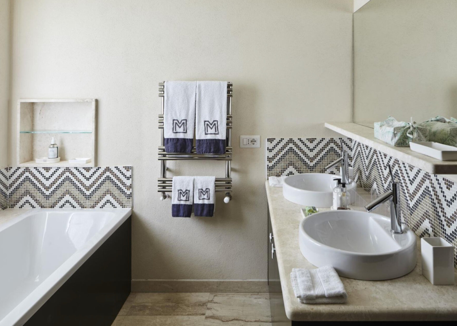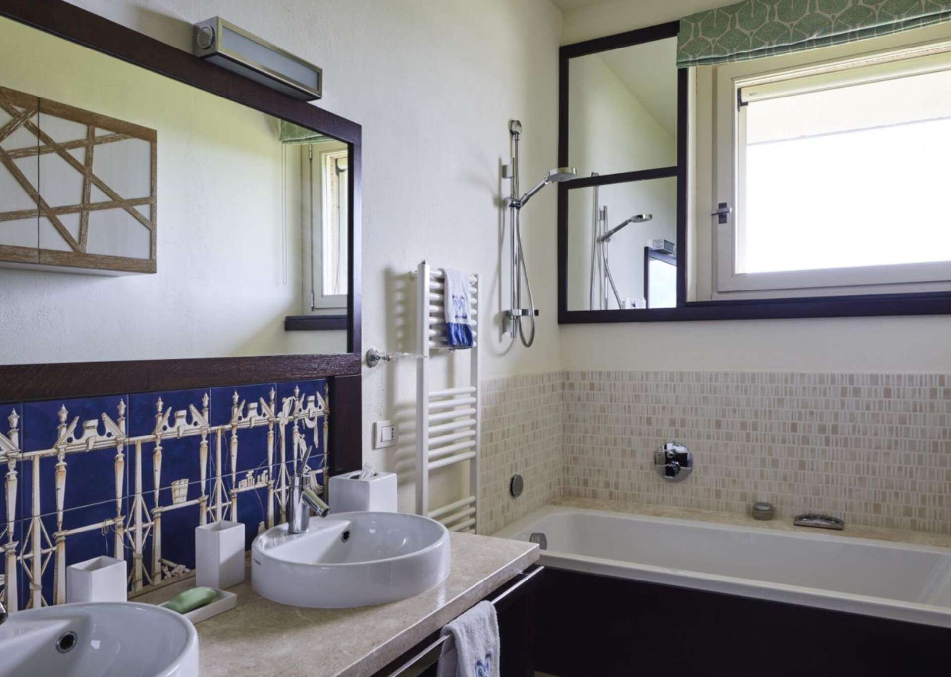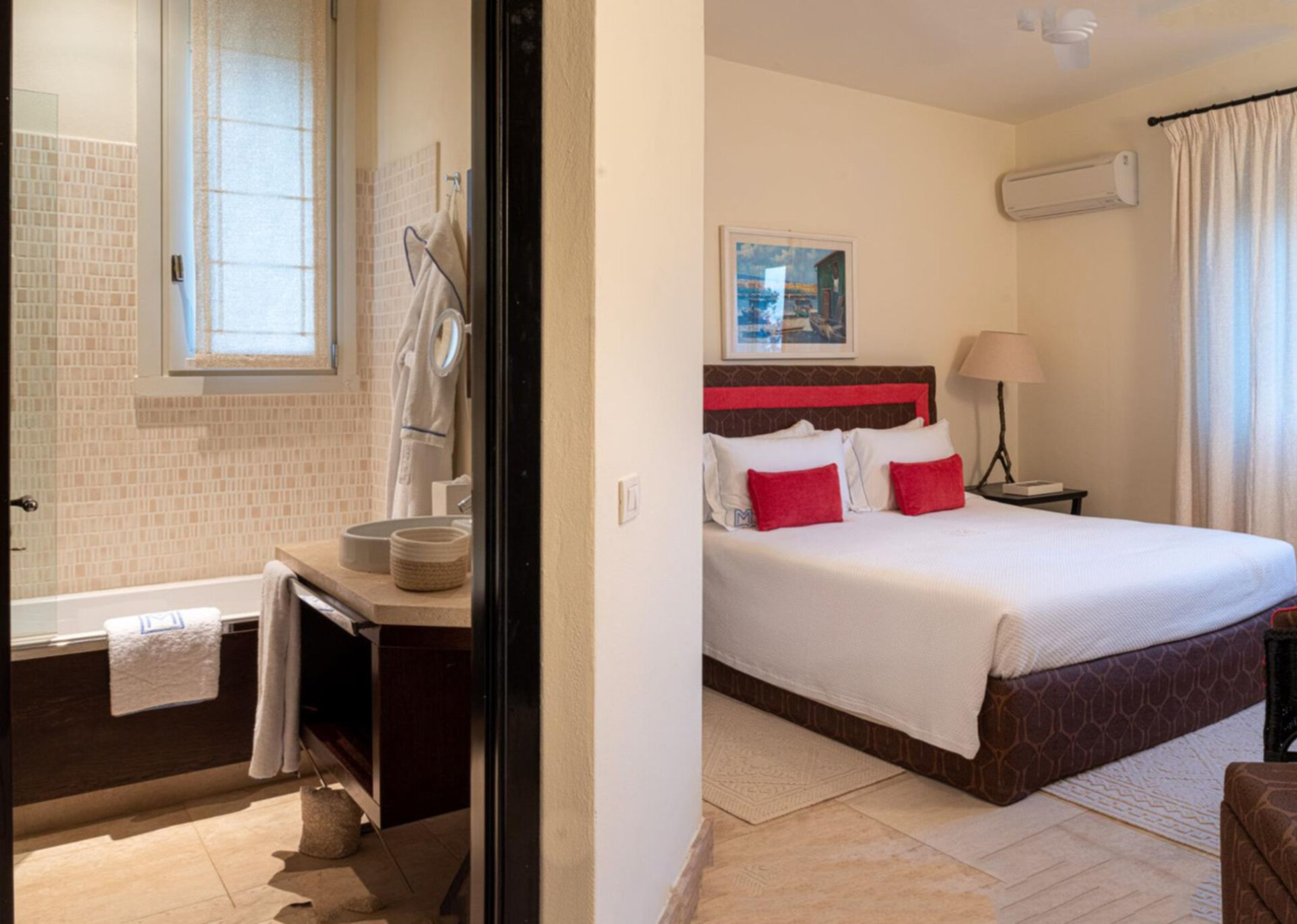Bedroom 9 – double bed and en-suite bathroom with double vanity, bathtub & separate shower